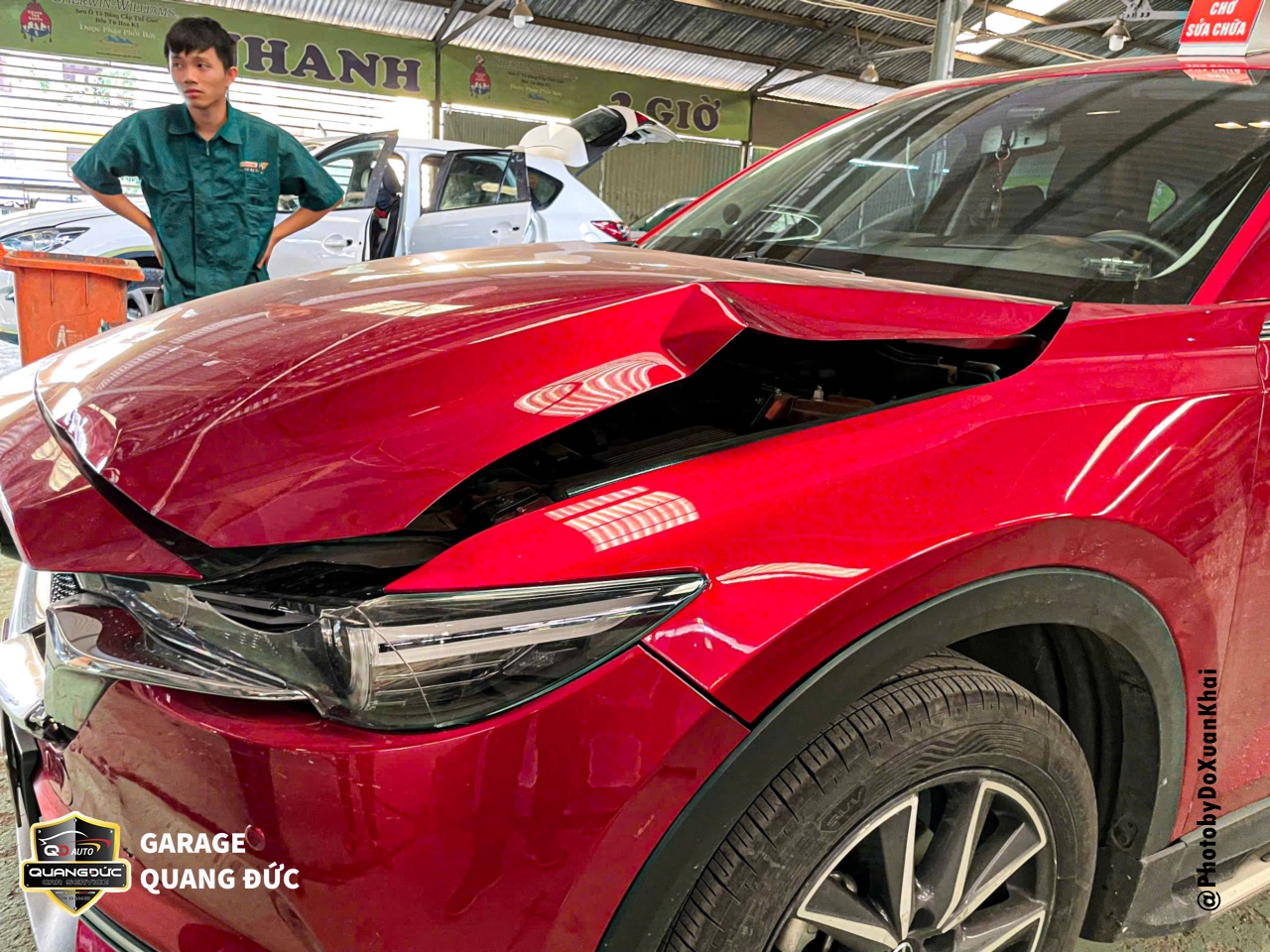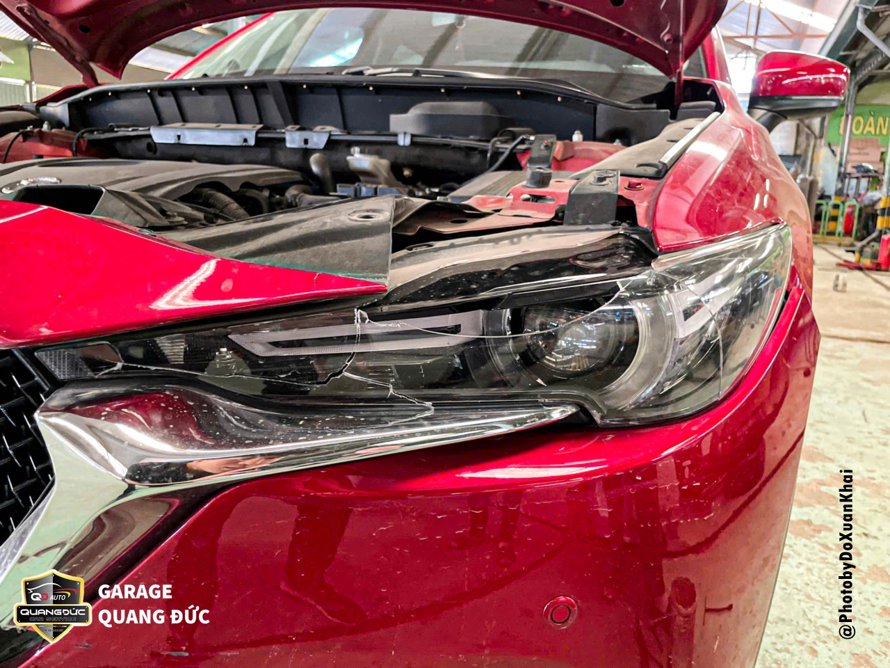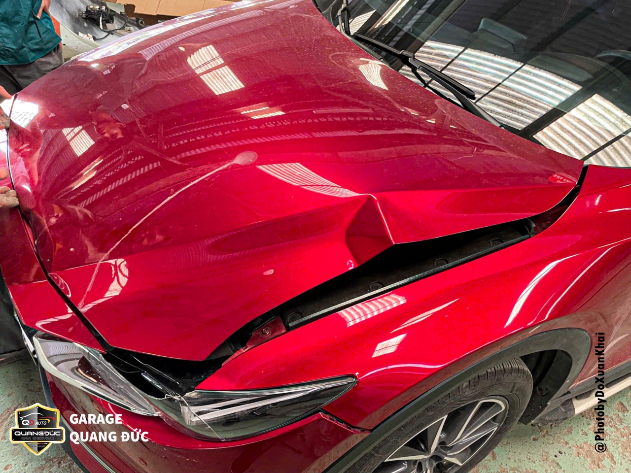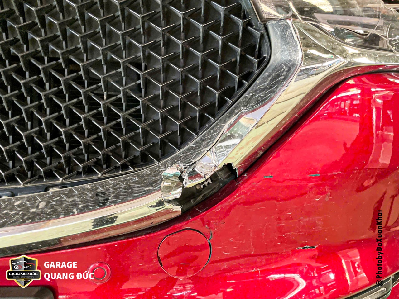 Việc phục hồi xe sau tai nạn là một quá trình quan trọng để đảm bảo an toàn và hiệu suất của phương tiện. Trong trường hợp của chiếc xe MAZDA CX5 màu đỏ 46V, sau khi gặp tai nạn và phần đầu bị vỡ đèn, rách Badershock (BDS), biến dạng nắp capo, xô lệch tai xe. Vì vậy, để tân trang lại diện mạo sang trọng vốn có, chủ xe đã lựa chọn Garage Quang Đức Auto để tiến hành phục hồi, sửa chữa.
