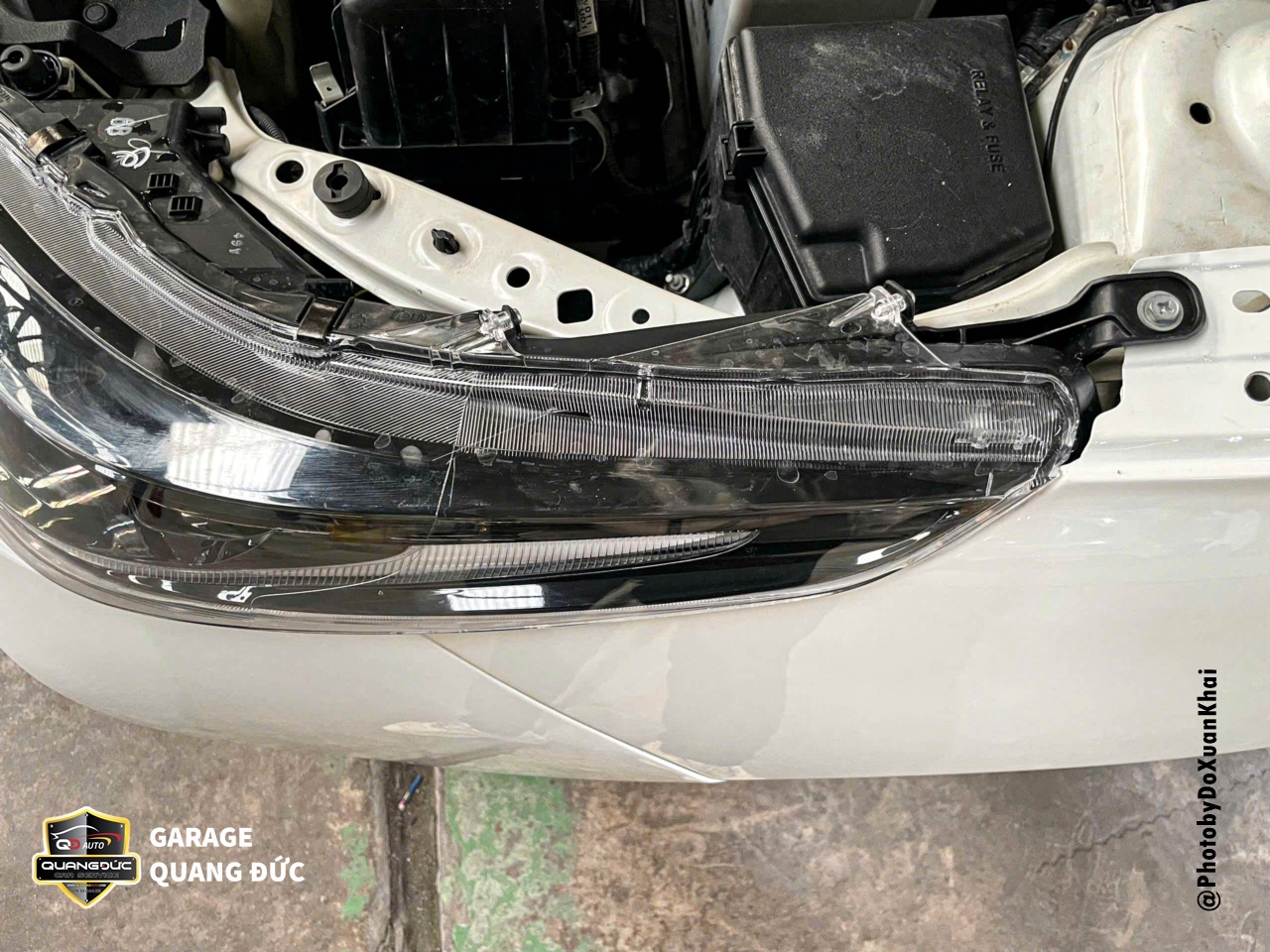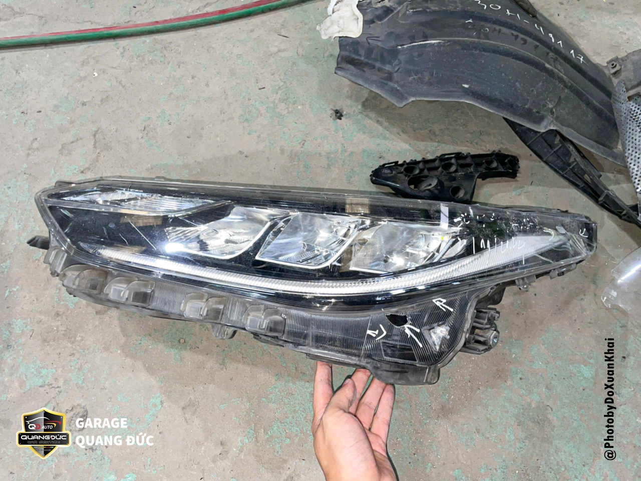 Phần đầu bị vỡ đèn chiếu sáng bên phụ được thay thế bằng một cụm đèn mới là hàng chuẩn mã theo xe loại xịn.
