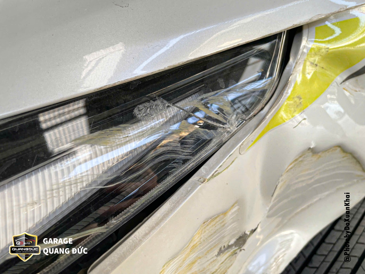- Đèn pha bên lái vỡ cả mặt trước sau