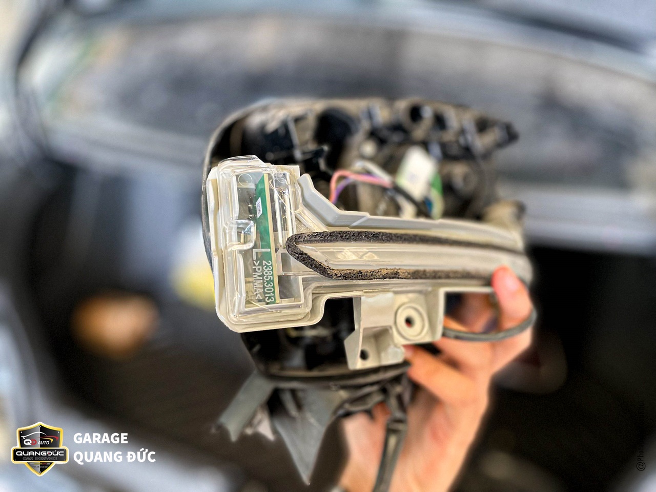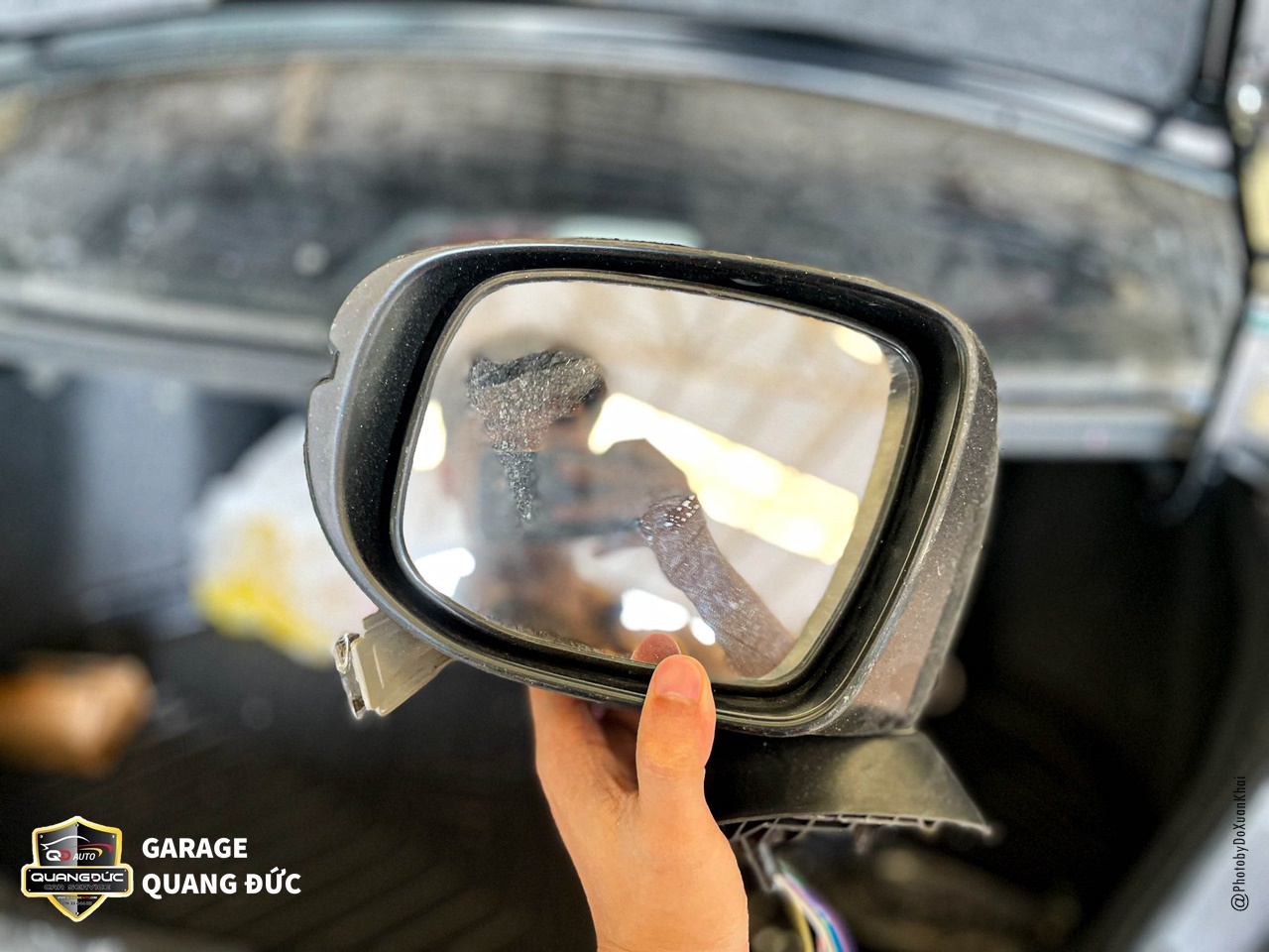 Cụm gương chiếu hậu bên lái được thay thế motor mới và sơn lại phần ốp gương.