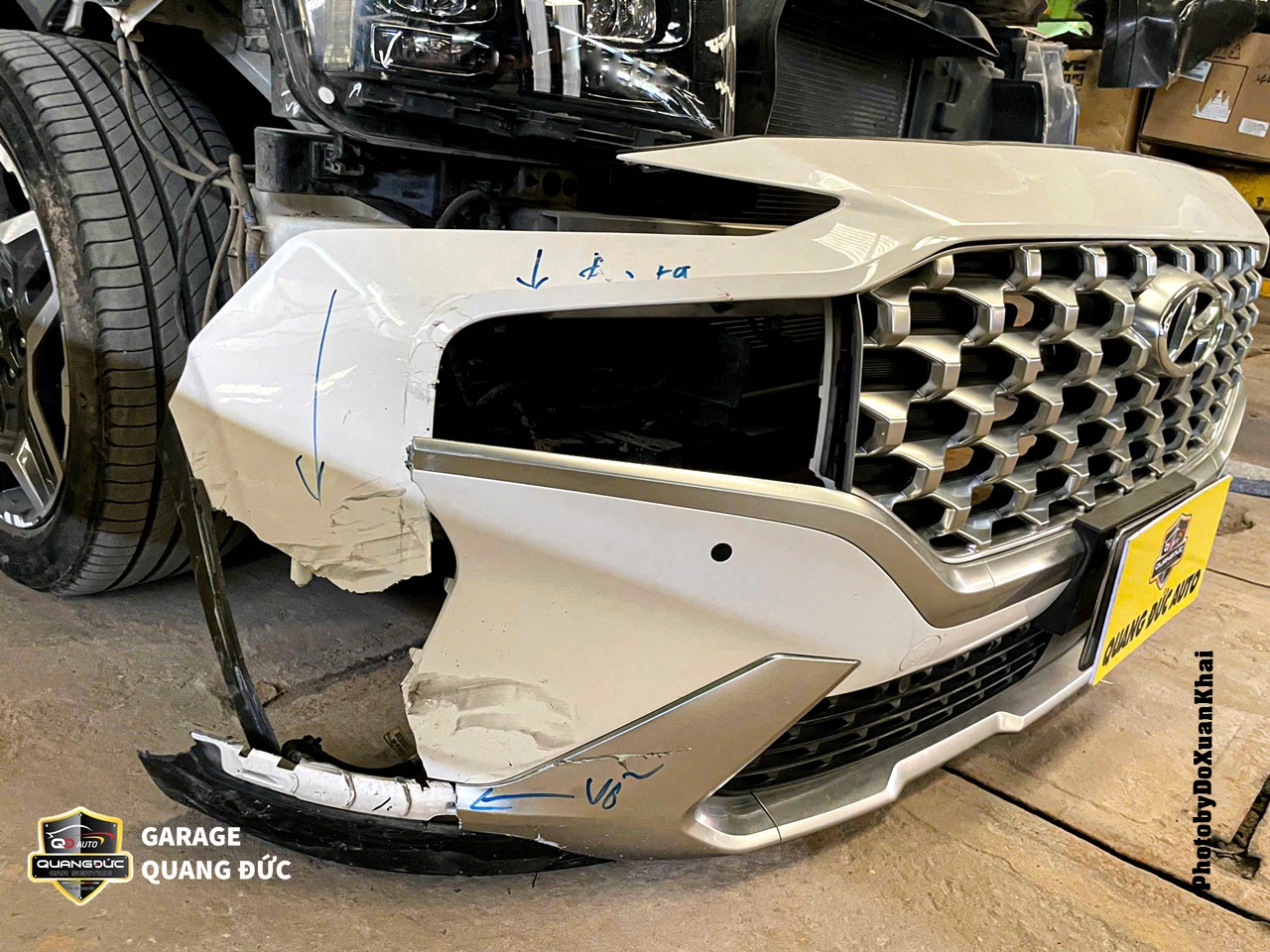 Việc phục hồi xe sau tai nạn là một quá trình quan trọng để đảm bảo an toàn và hiệu suất của phương tiện. Trong trường hợp của chiếc xe HYUNDAI SANTAFE thuộc đời 2021, sau khi gặp tai nạn và phần đầu bị vỡ đèn, rách Badersoc (BDS), gãy gương chiếu hậu. Vì vậy, để tân trang lại diện mạo sang trọng vốn có, chủ xe đã lựa chọn Garage Quang Đức Auto để tiến hành phục hồi, sửa chữa.