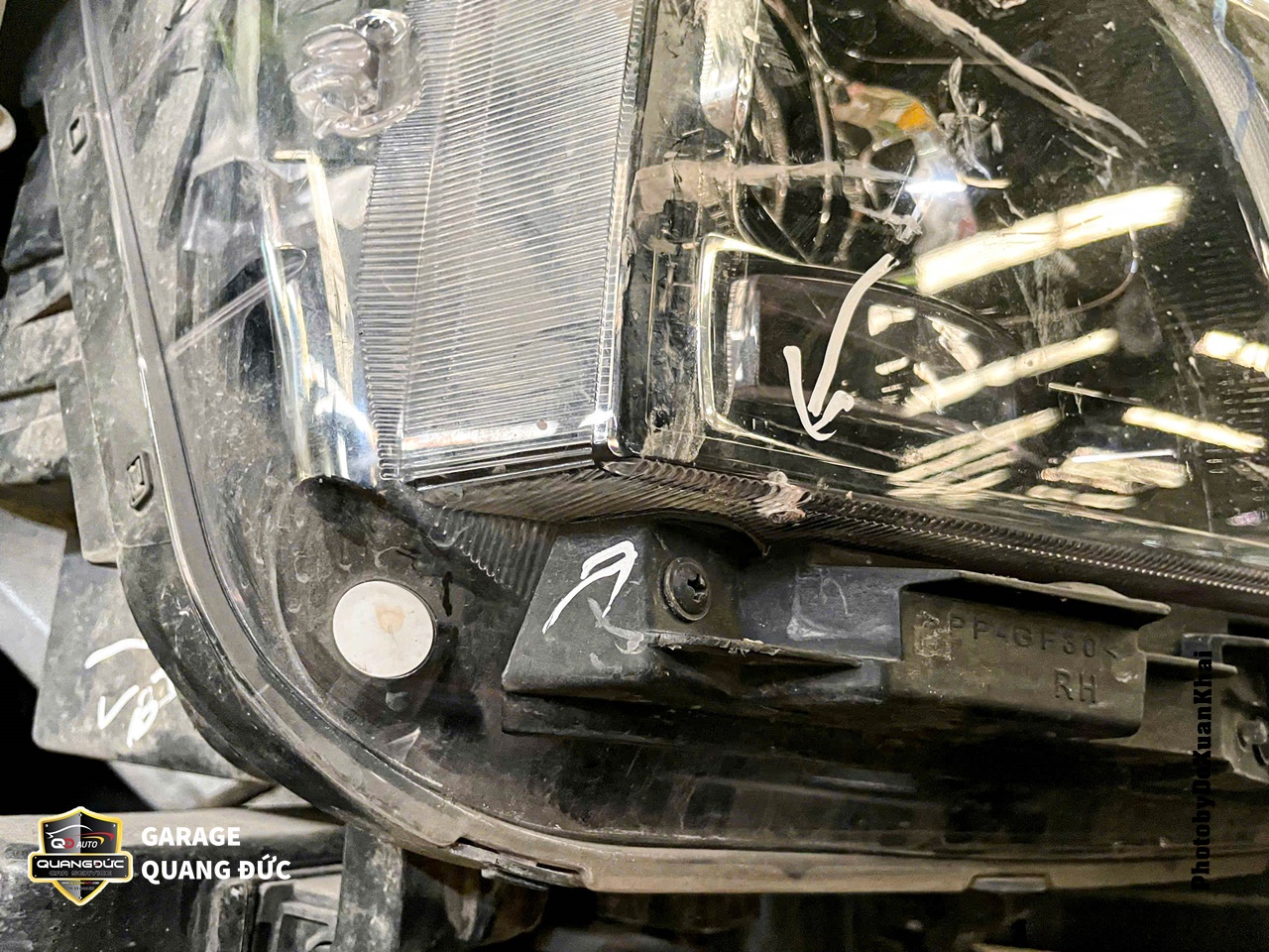 Phần đầu bị vỡ đèn chiếu sáng bên phụ được thay thế bằng một cụm đèn mới là hàng tháo xe loại đẹp để tiết kiệm chi phí. Tương tự, phần cụm gương chiếu hậu cũng được thay thế mới.