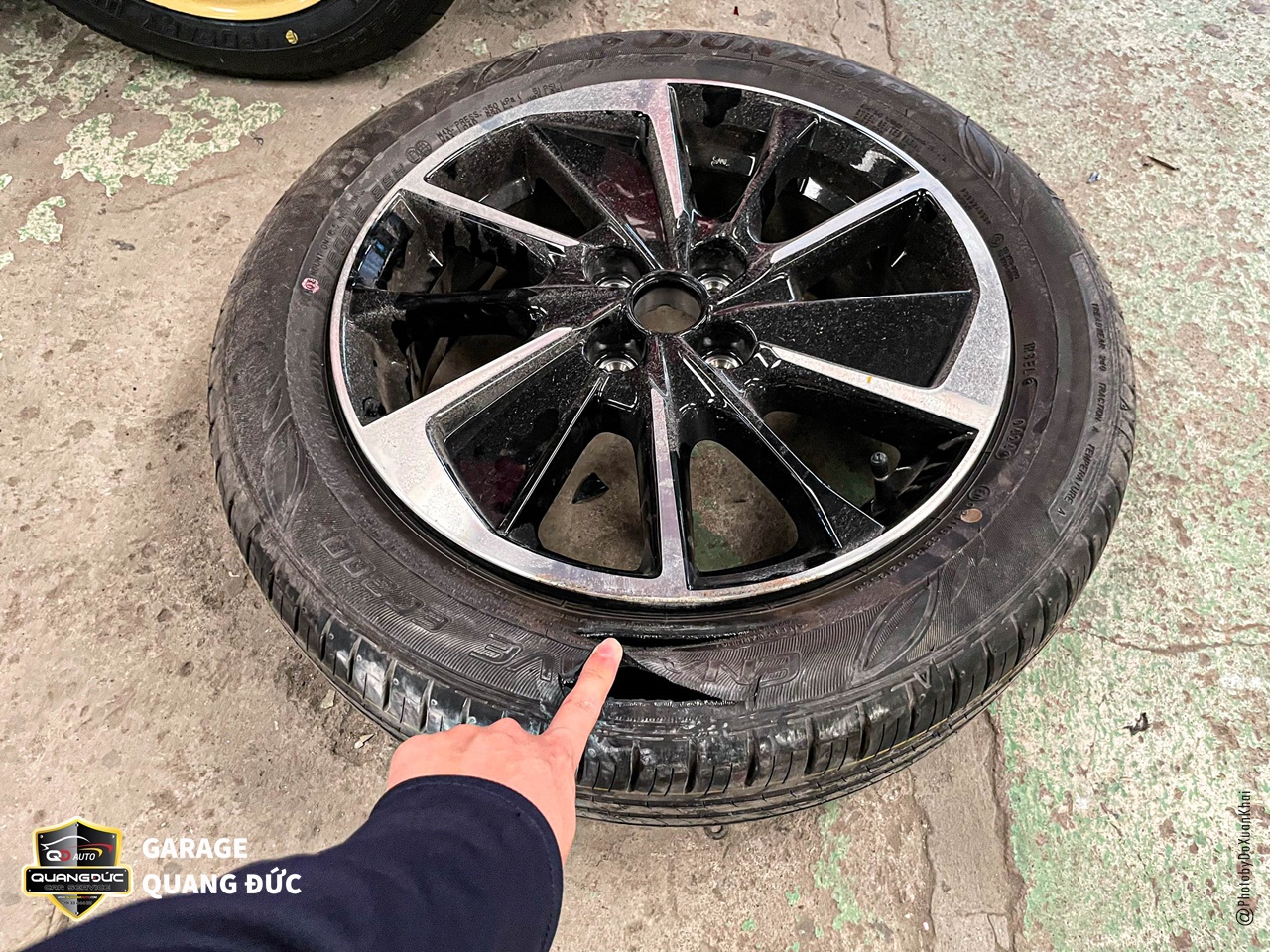 Chiếc xe được xác định hư hỏng phần đèn hậu bên lái ( cả miếng trong + ngoài), móp , trầy xước phần BDS sau, cong vênh biến dạng cửa sau lái, móp hông lái bao gồm cả nắp bình xăng. Ngoài ra lốp xe cũng bị thành vỉa hè cứa vào gây rách không thể phục hồi.