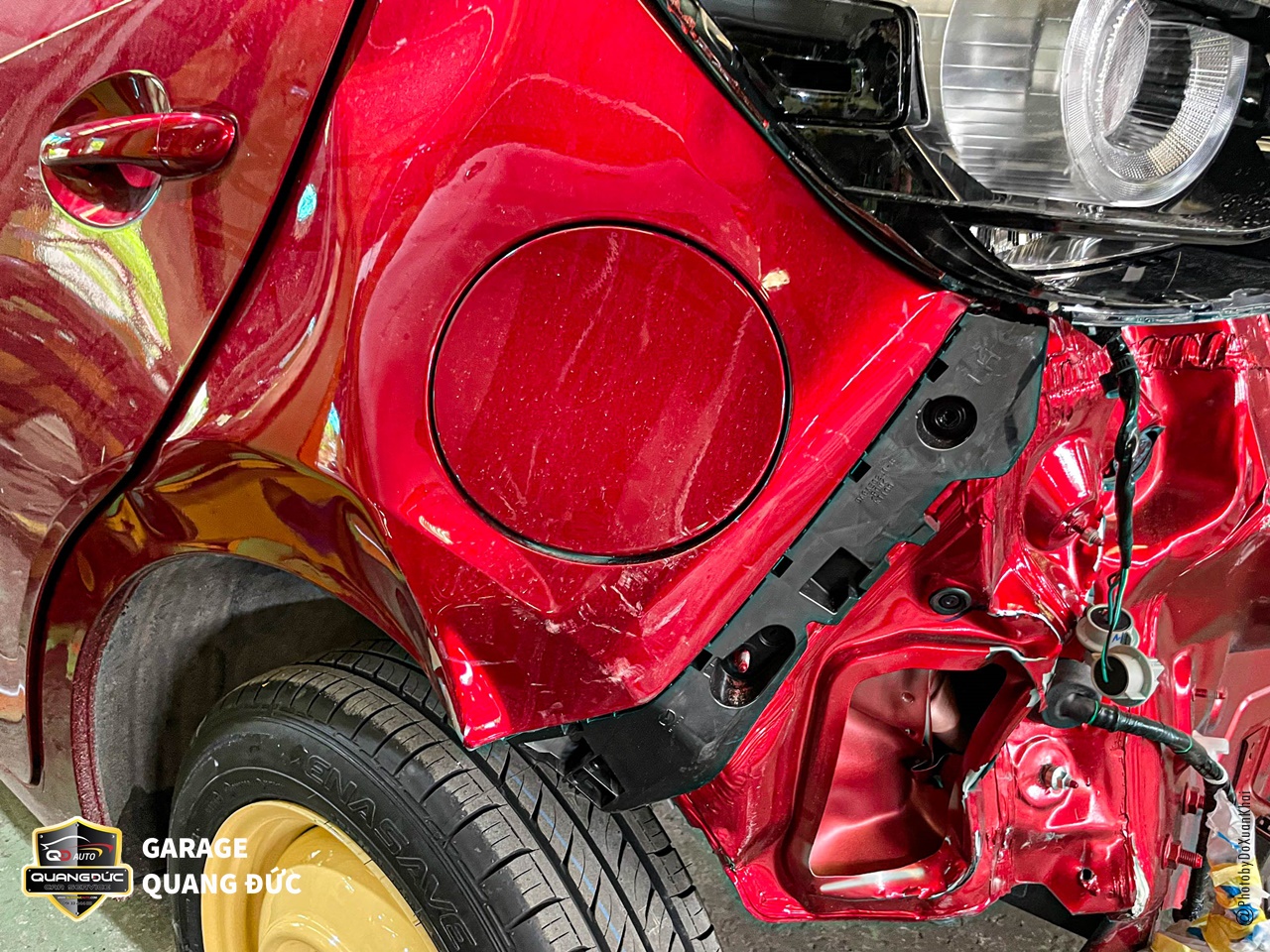 Việc phục hồi xe sau tai nạn là một quá trình quan trọng để đảm bảo an toàn và hiệu suất của phương tiện. Trong trường hợp của chiếc xe MAZDA 2, sau khi gặp tai nạn phần đuôi xe bị biến dạng, vỡ đèn, móp xước Badershock (BDS), móp cửa. Vì vậy, để tân trang lại diện mạo sang trọng vốn có, chủ xe đã lựa chọn Garage Quang Đức Auto để tiến hành phục hồi, sửa chữa.