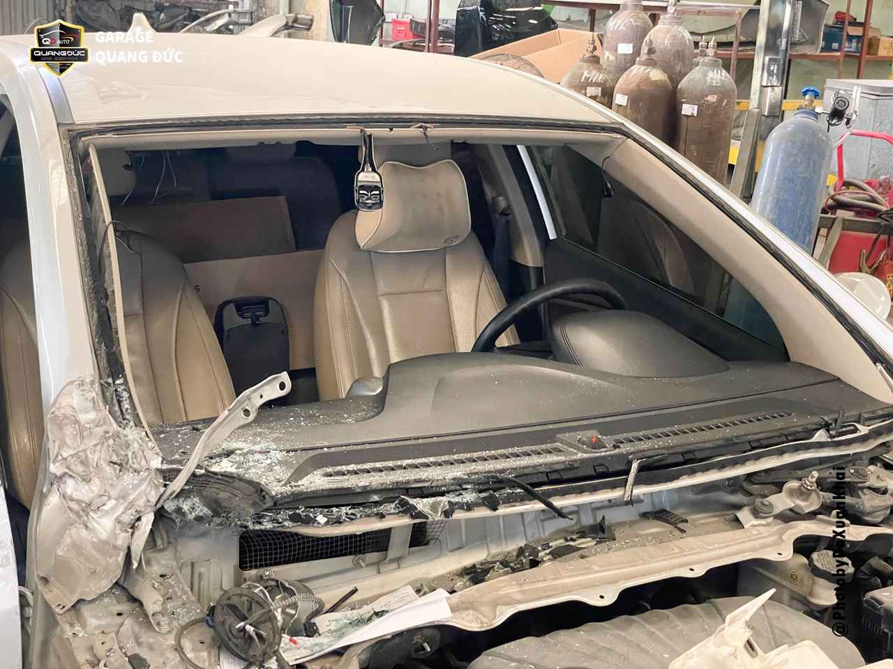 - Tháo phần kính chắn gió phía trước, vệ sinh sạch mảnh kính vỡ: