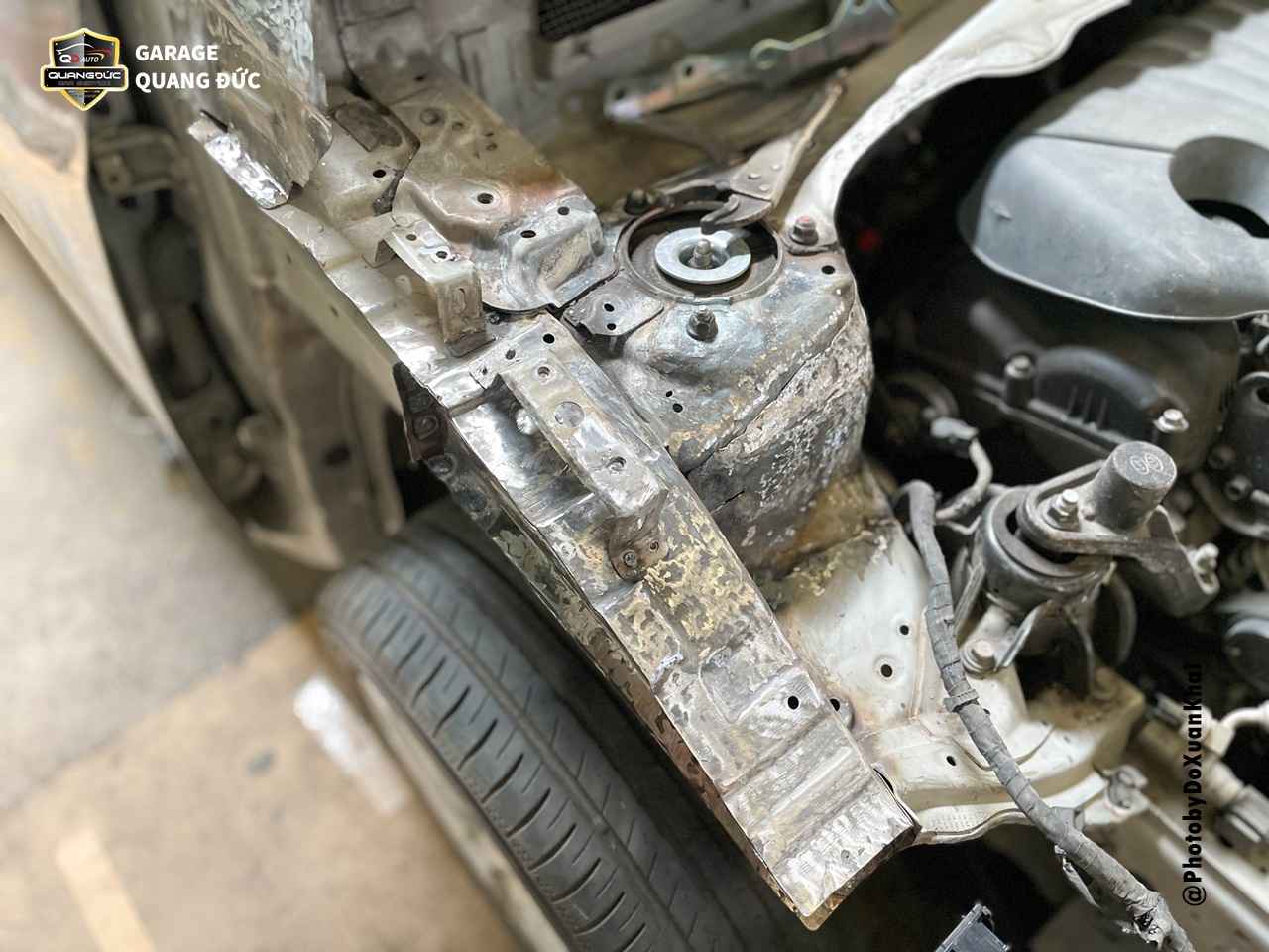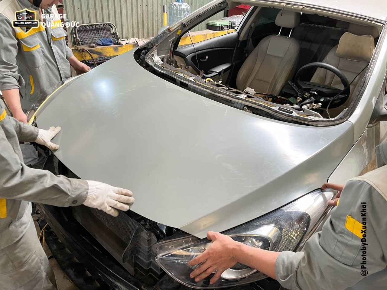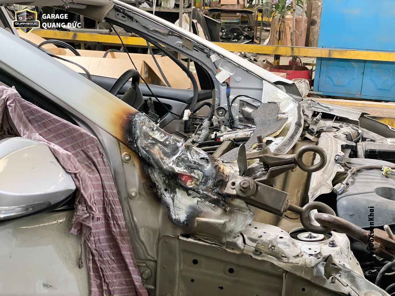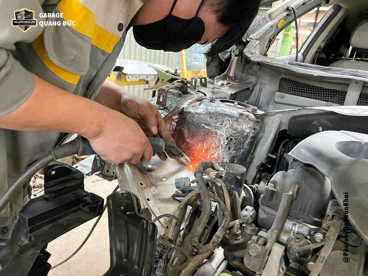 - Tháo nắp capo, cản trước phục vụ gò nắn hàn cột A, ụ giảm xóc: