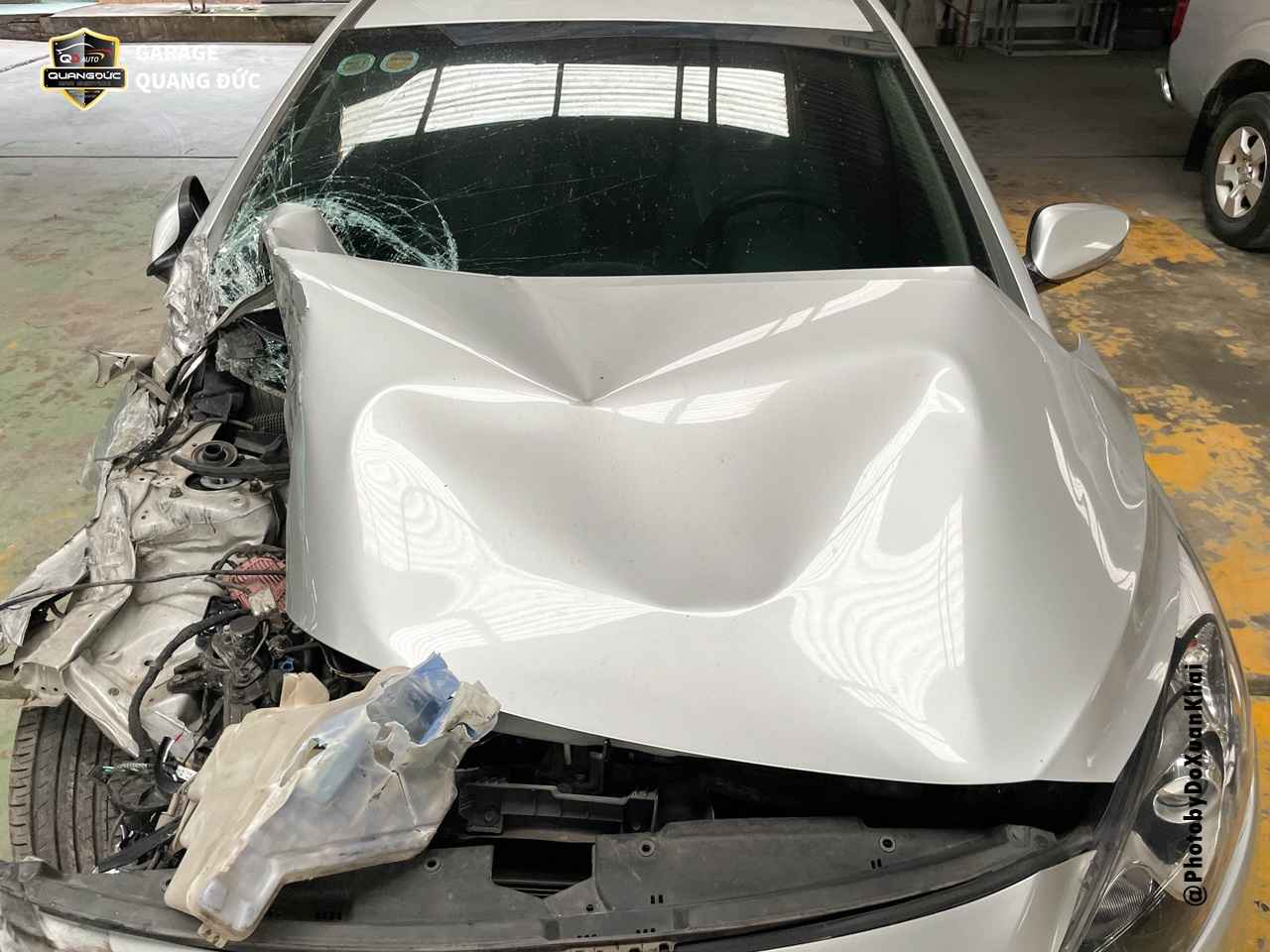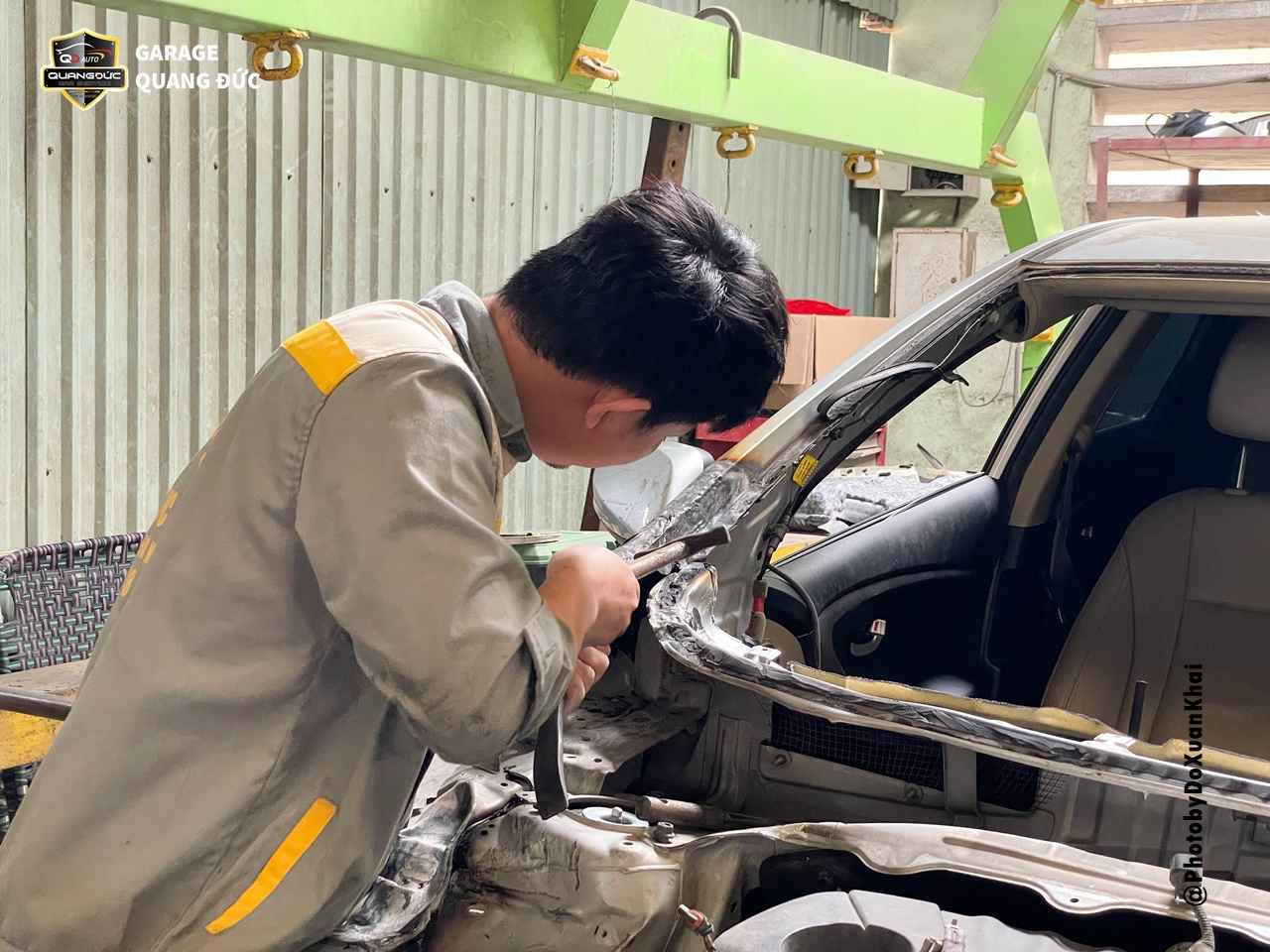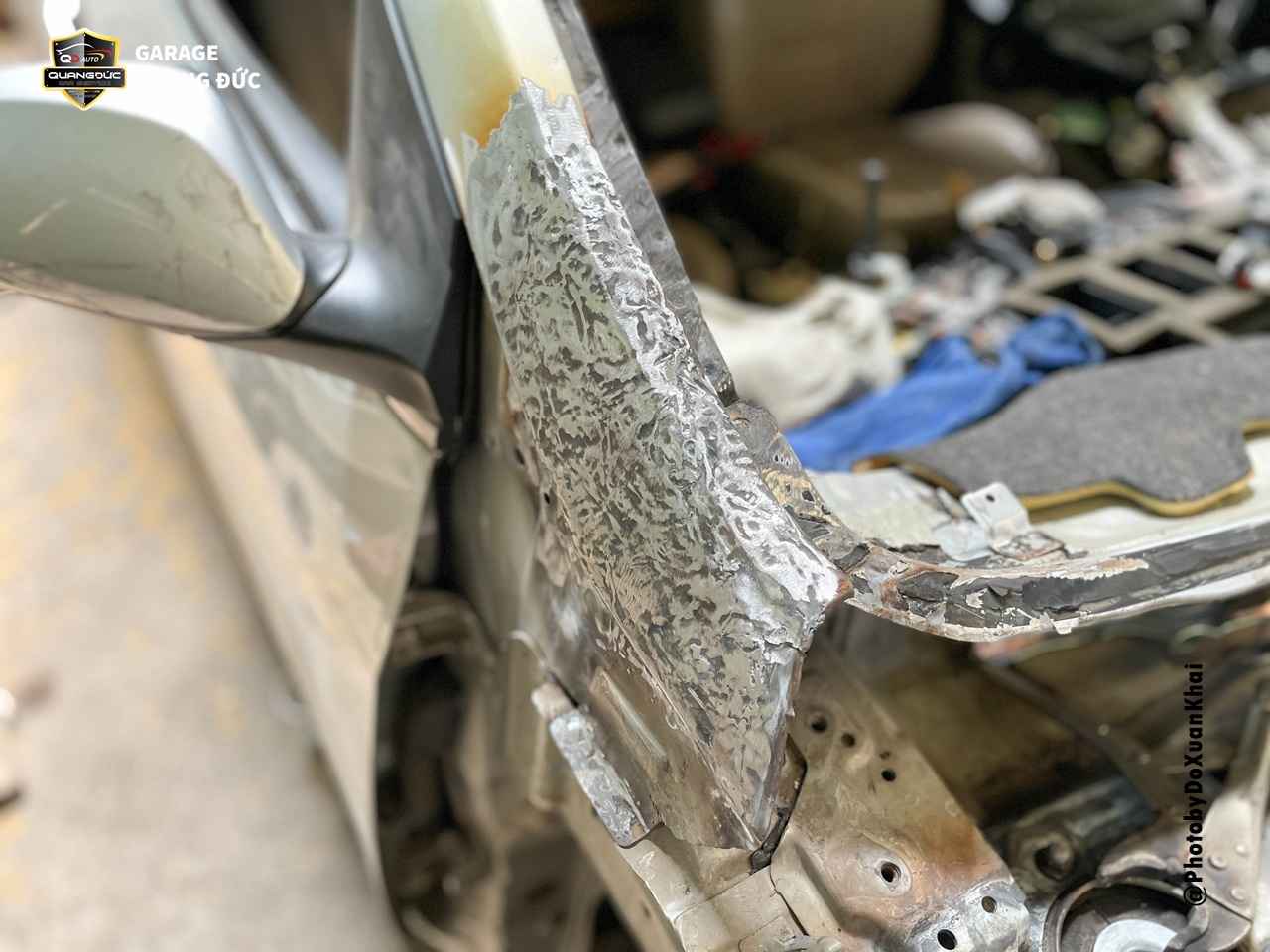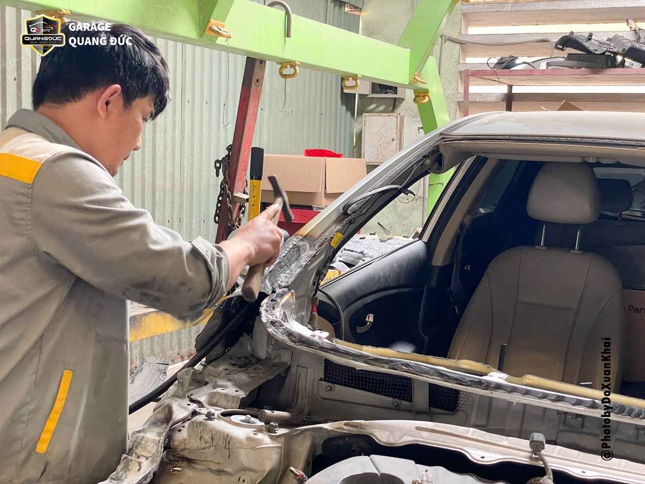 - Tháo nắp capo, cản trước phục vụ gò nắn hàn cột A, ụ giảm xóc: