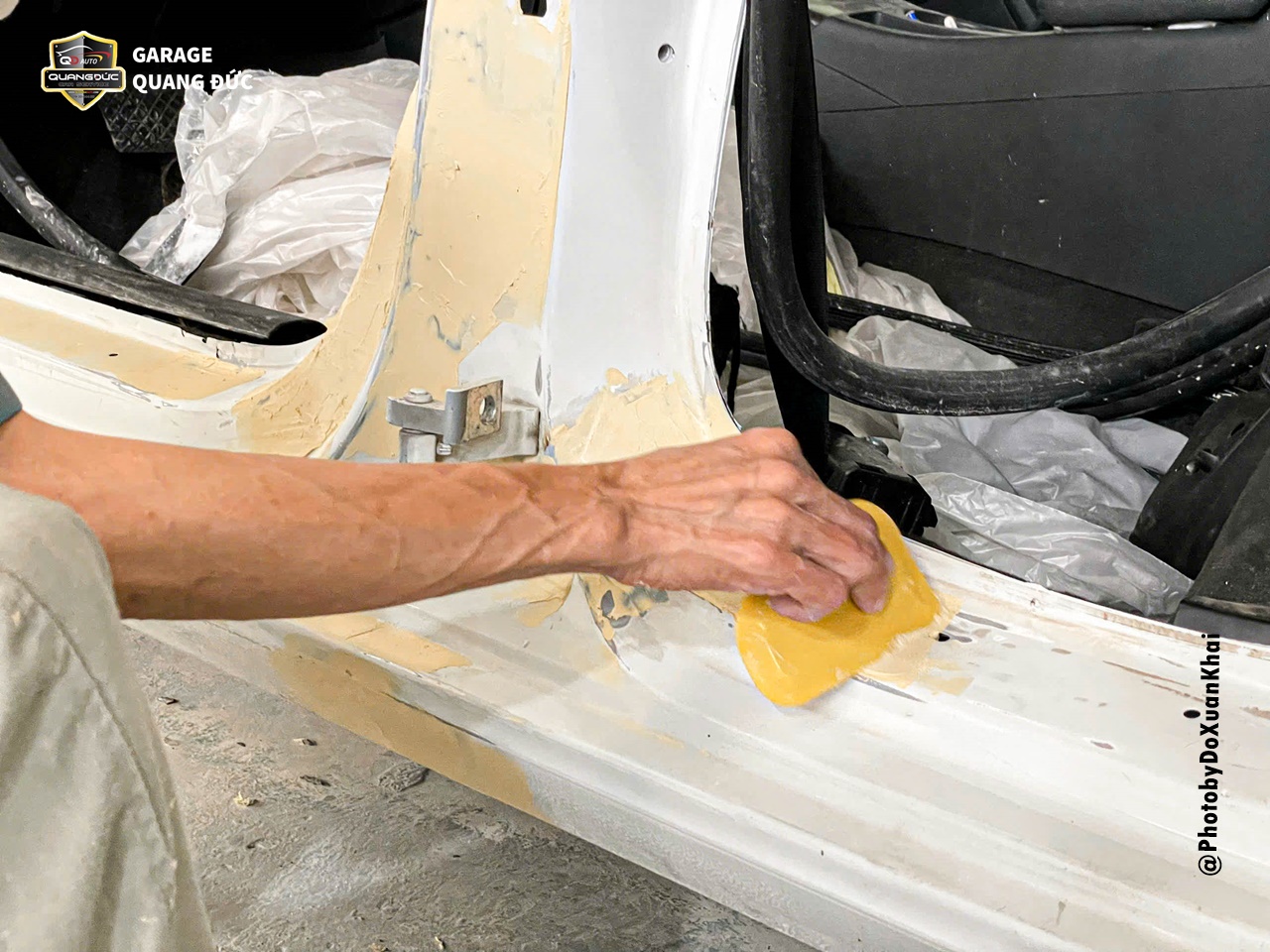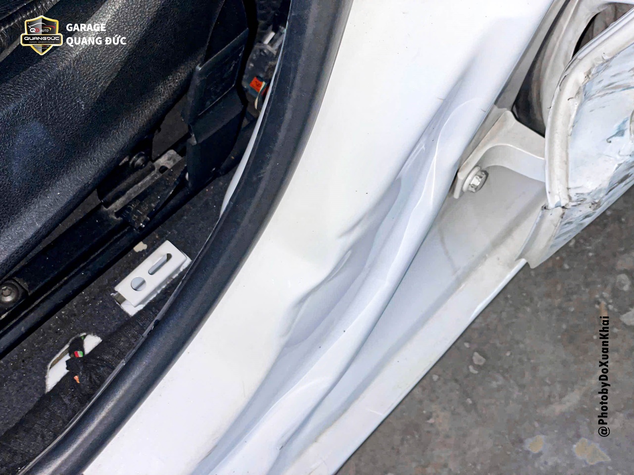 Tháo hai cửa phục hồi riêng kết hợp gò nắn cột B, khung cửa, babole...
