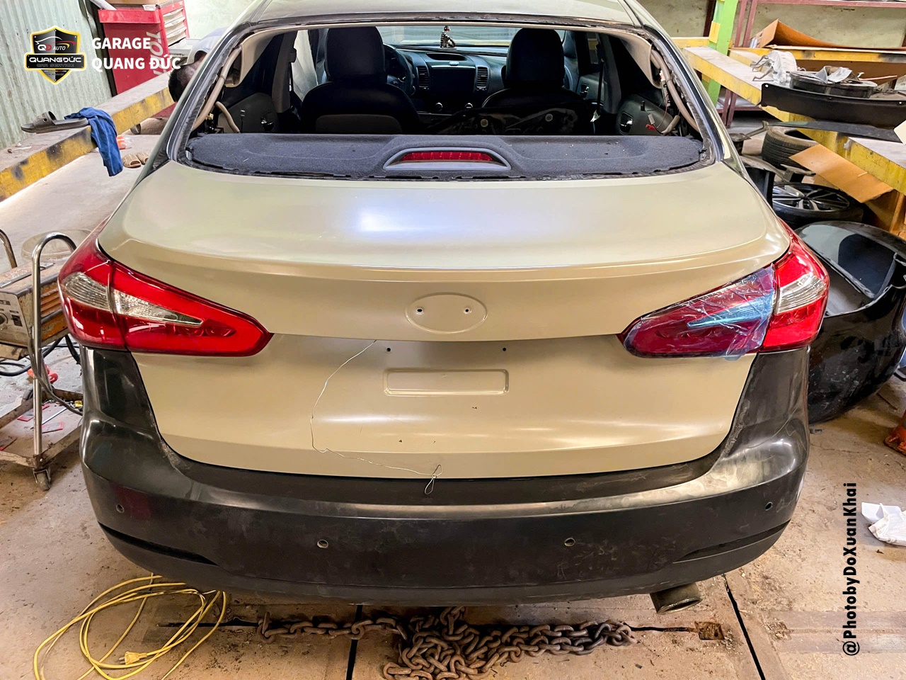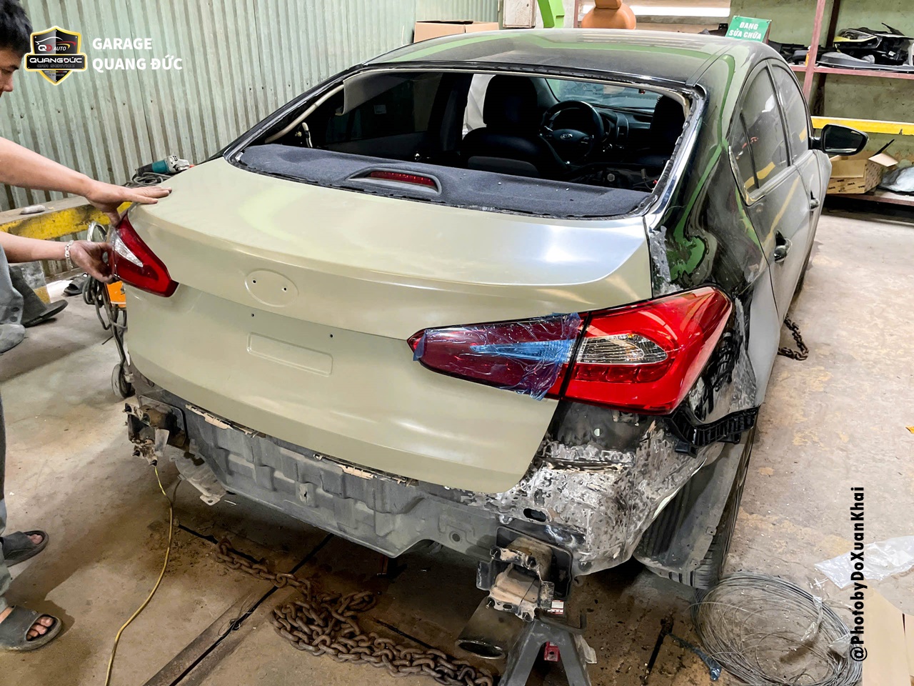 Trường hợp của chiếc xe KIA K3 thuộc đời 2016 sau khi gặp tai nạn bị móp xước Badershock (BDS) sau, vỡ đèn hậu sau bên phụ, móp xước thân vỏ sườn bên lái. Vì vậy, để tân trang lại diện mạo sang trọng vốn có, chủ xe đã lựa chọn Garage Quang Đức Auto để tiến hành phục hồi, sửa chữa.