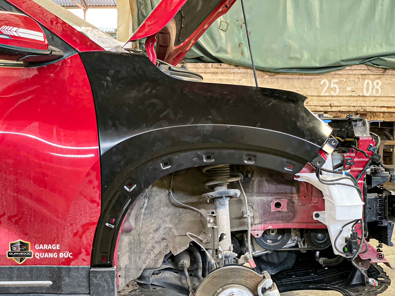 Phần tai xe, cản thay mới cùng với các vết xước cũ được phục hồi và phun sơn lại. Đảm bảo rằng đèn hoạt động bình thường và không có vấn đề gì khác về thân vỏ sau khi phục hồi, tất cả vật tư phụ tùng, kỹ thuật sơn đều được bảo hành cam kết bằng văn bản.