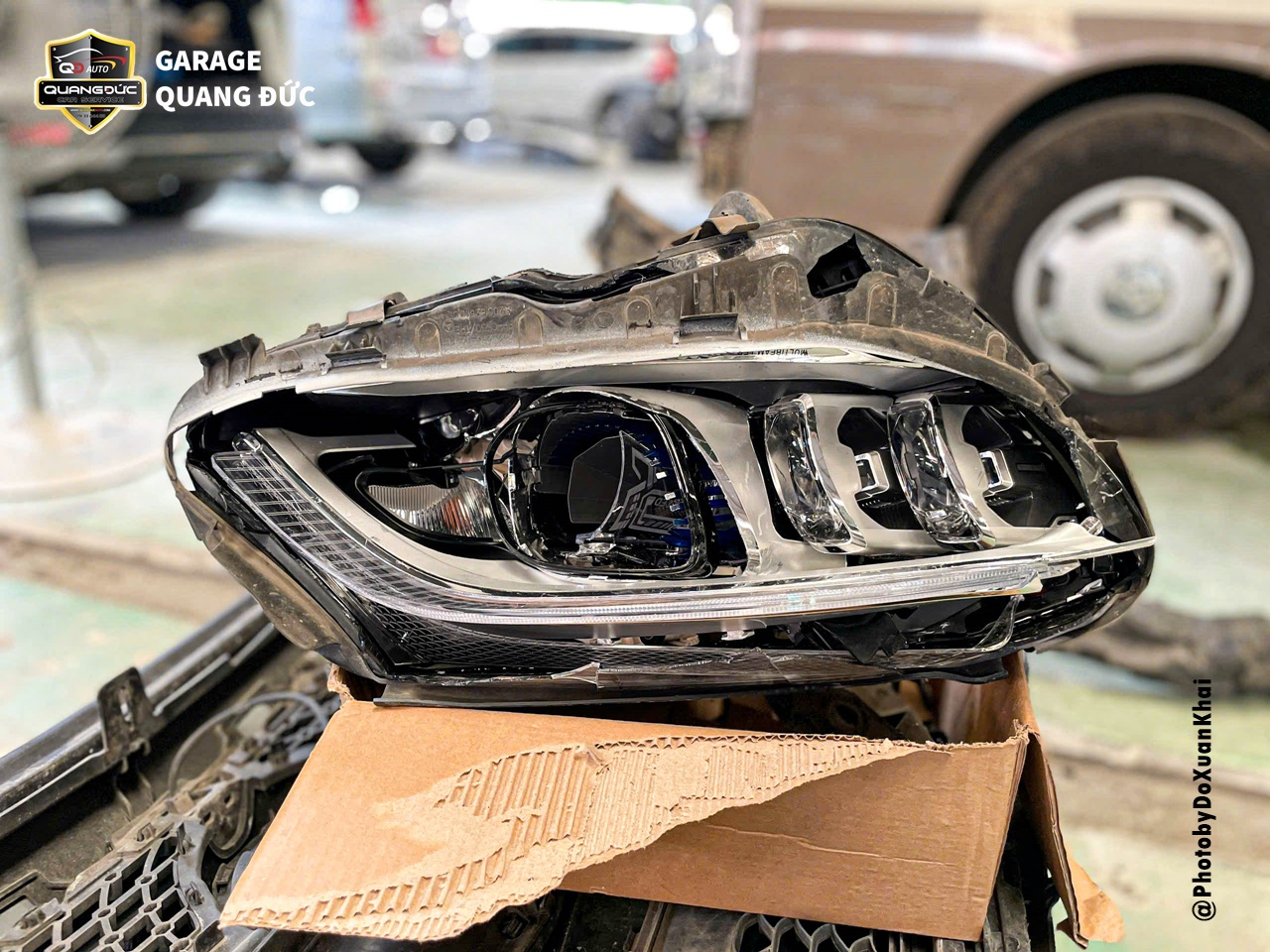 Phần đầu bị vỡ đèn chiếu sáng bên phụ được thay thế bằng một cụm đèn mới là hàng chuẩn mã theo xe