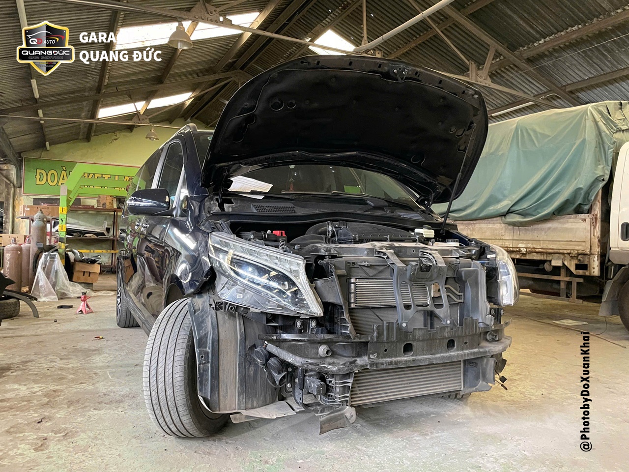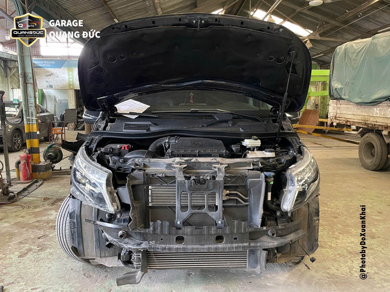 Phục hồi xe tai nạn là một quá trình quan trọng để đảm bảo an toàn và hiệu suất của phương tiện. Trong trường hợp của chiếc xe MERCEDES V250 thuộc đời 2021, sau khi gặp tai nạn, phần đầu bị vỡ đèn, móp xước rách Badershock (BDS), biến dạng xương đầu xe... Vì vậy, để tân trang lại diện mạo sang trọng vốn có, chủ xe đã lựa chọn Garage Quang Đức Auto để tiến hành phục hồi, sửa chữa.