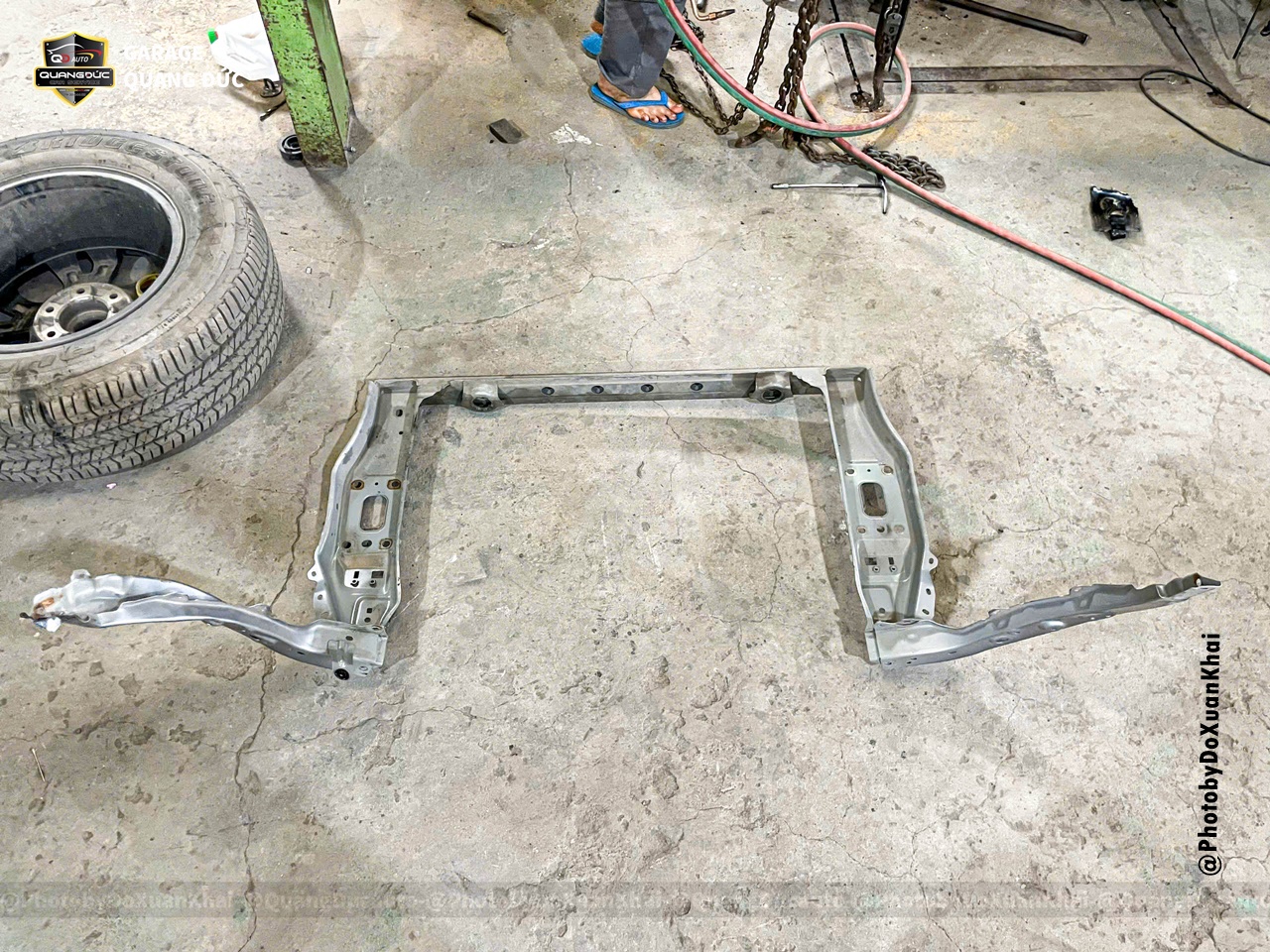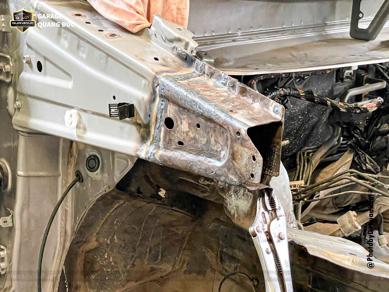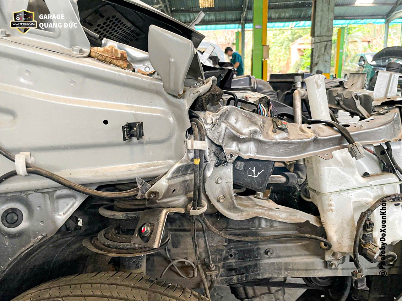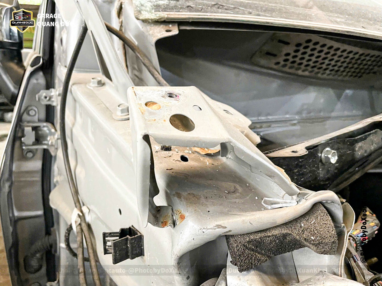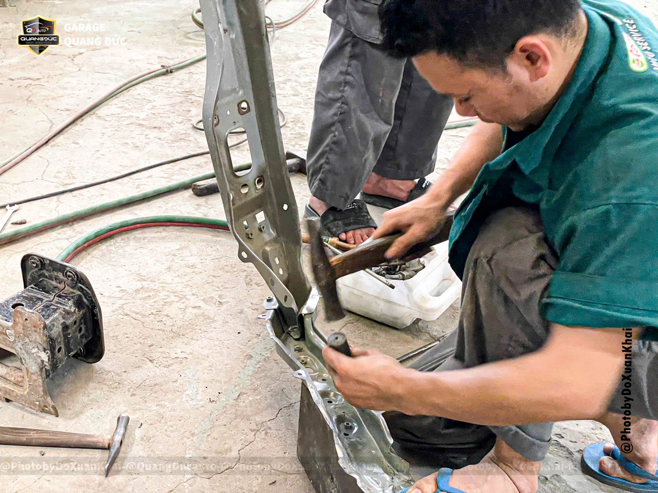 * Gò nắn khung xương đầu xe, xương đỡ dàn nóng két nước, xương trên đèn pha, xương tai xe, xương vòm lốp, xương trụ đứng cửa trước phụ...