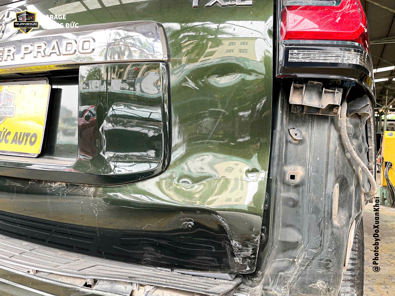 Phục hồi xe tai nạn là một quá trình quan trọng để đảm bảo an toàn và hiệu suất của phương tiện. Trong trường hợp của chiếc xe TOYOTA LANDCRUISER PRADO màu xanh lá thuộc đời 2016 một mẫu xe của các chủ tịch sau khi gặp tai nạn và phần đuôi xe bị hư hỏng các vị trí lớn như: cản sau, đèn hậu, nắp cốp... Vì vậy, để tân trang lại diện mạo sang trọng vốn có, chủ xe đã lựa chọn Garage Quang Đức Auto để tiến hành phục hồi, sửa chữa.