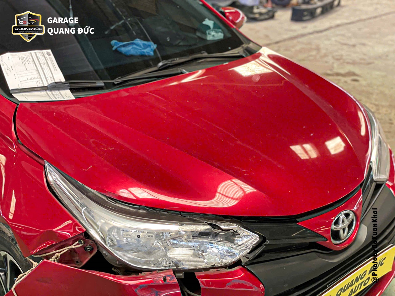 Phục hồi xe tai nạn là một quá trình quan trọng để đảm bảo an toàn và hiệu suất của phương tiện. Trong trường hợp của chiếc xe TOYOTA VIOS thuộc đời 2022, dòng xe phổ thông khi xảy ra va chạm hư hỏng phần đầu xe: vỡ đèn, móp xước Badershock (BDS) trước, biến dạng capo, tai xe... Vì vậy, để phục hồi diện mạo như mới & đảm bảo hiệu suất hoạt động, chủ xe đã lựa chọn Garage Quang Đức Auto để tiến hành phục hồi, sửa chữa.