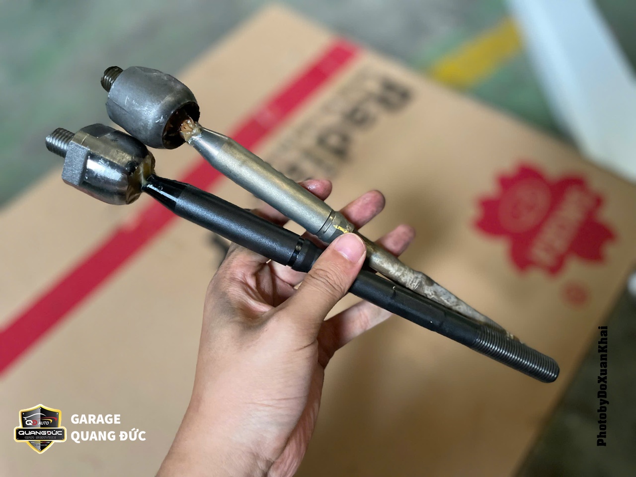 Sau khi kiểm tra, đội ngũ kỹ thuật của Quang Đức Auto đã nhận thấy Rotuyn cân bằng bị bụi bẩn bám vào sâu bên trong gây bó kẹt do đó cần thay thế các chi tiết này.