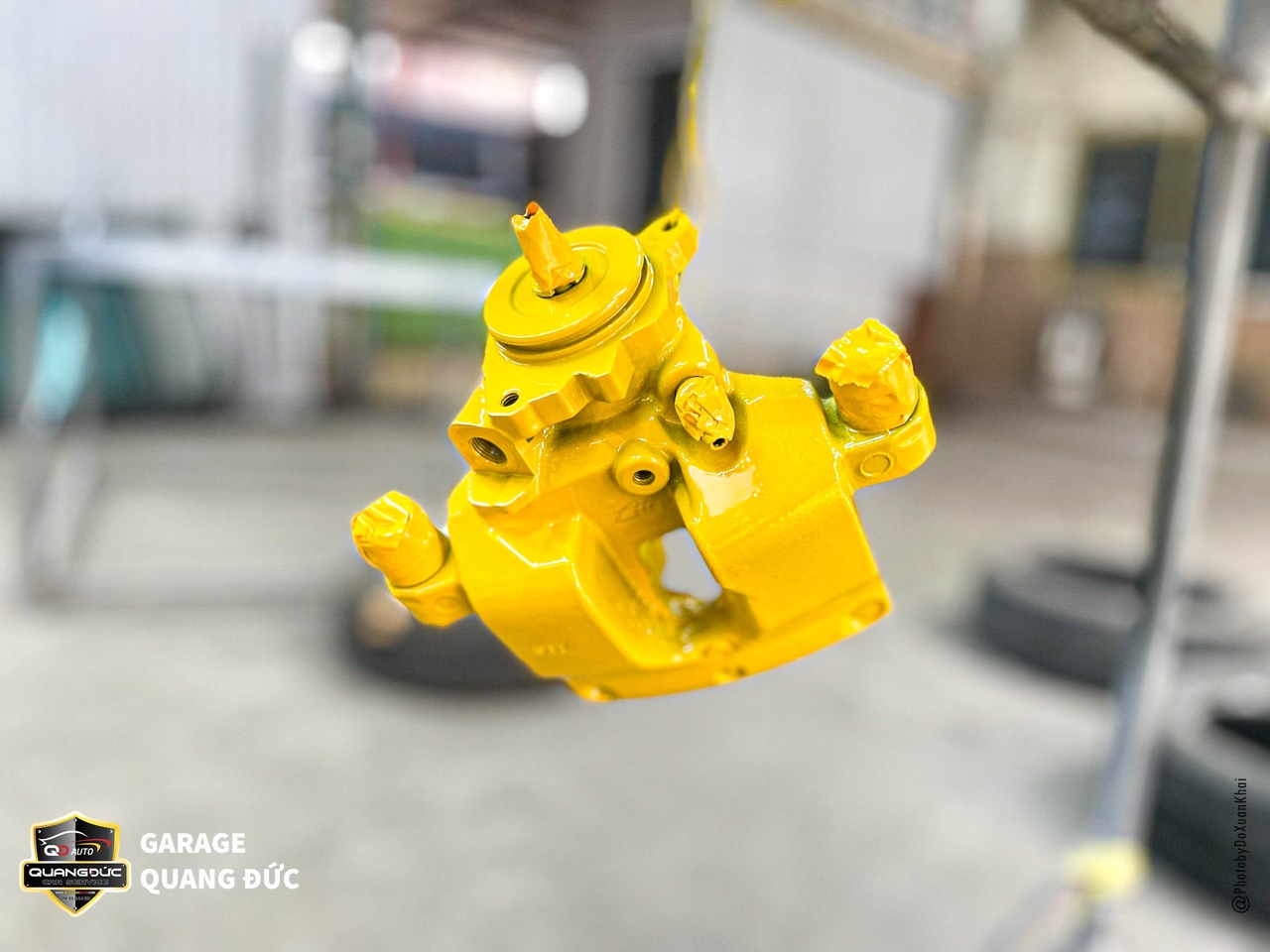 Bước 2: Loại bỏ sơn cũ và xử lý gỉ sét (nếu có) Tiếp theo, loại bỏ lớp sơn cũ và xử lý gỉ sét (nếu có). Sử dụng máy mài lắp giấy nhám để loại bỏ sơn cũ và làm sạch gỉ sét trên bề mặt. Nếu cùm phanh bị biến dạng, thực hiện kỹ thuật làm đồng cùm phanh để phục hồi bề mặt.