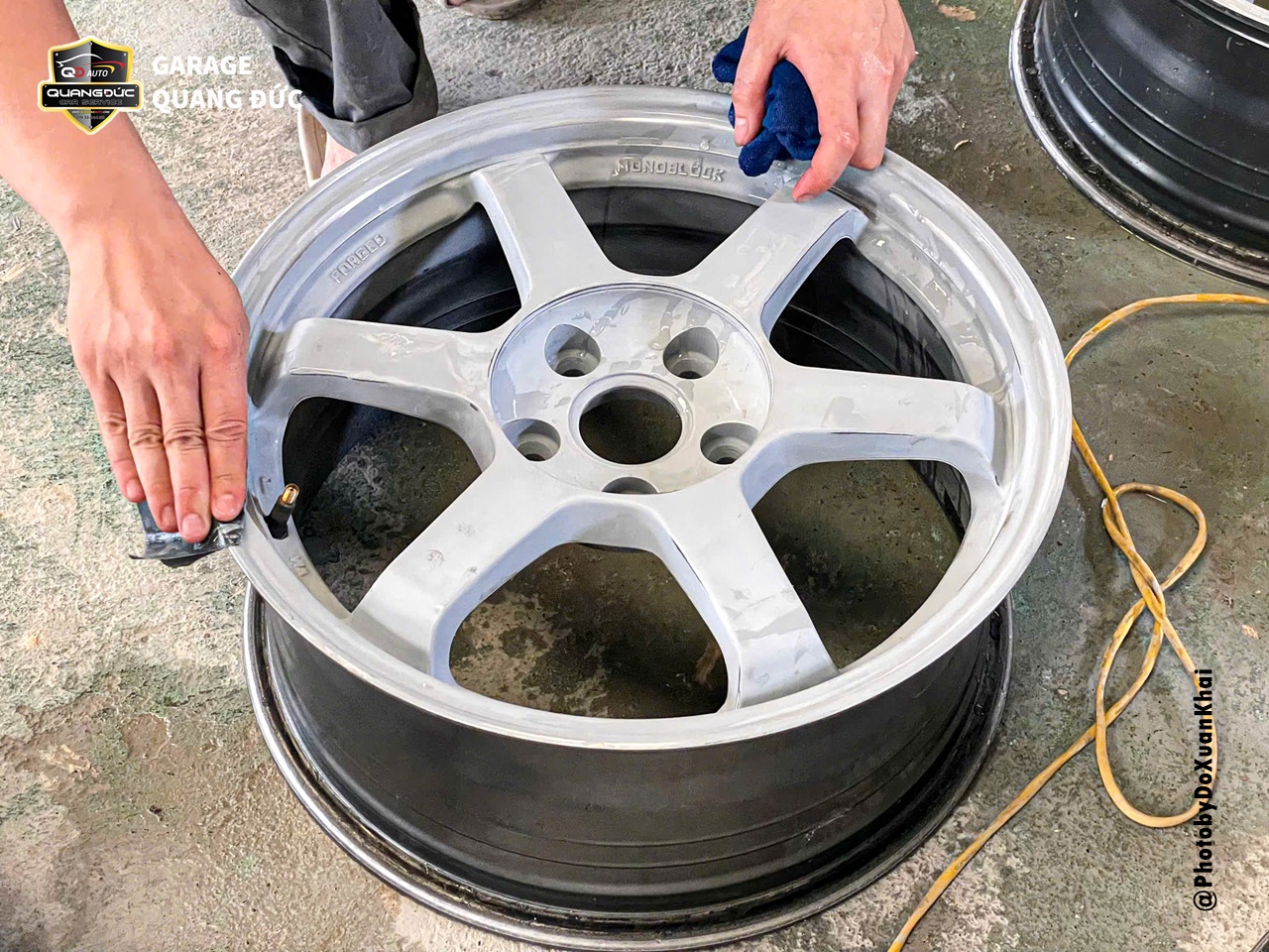 Bước 2: Ra lốp, rửa sạch và lau chùi mâm cho hết bụi bẩn, mảng bám ở các khe kẽ nhỏ.