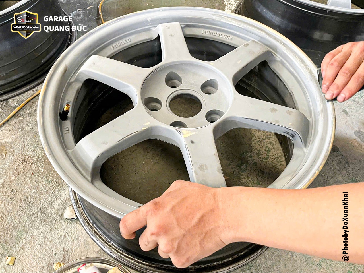 Bước 5: Làm khô bề mặt và tiến hành sơn màu cho lazang: Sơn 2 lớp đến 3 lớp và phải đảm bảo phun tơi và đồng đều.
