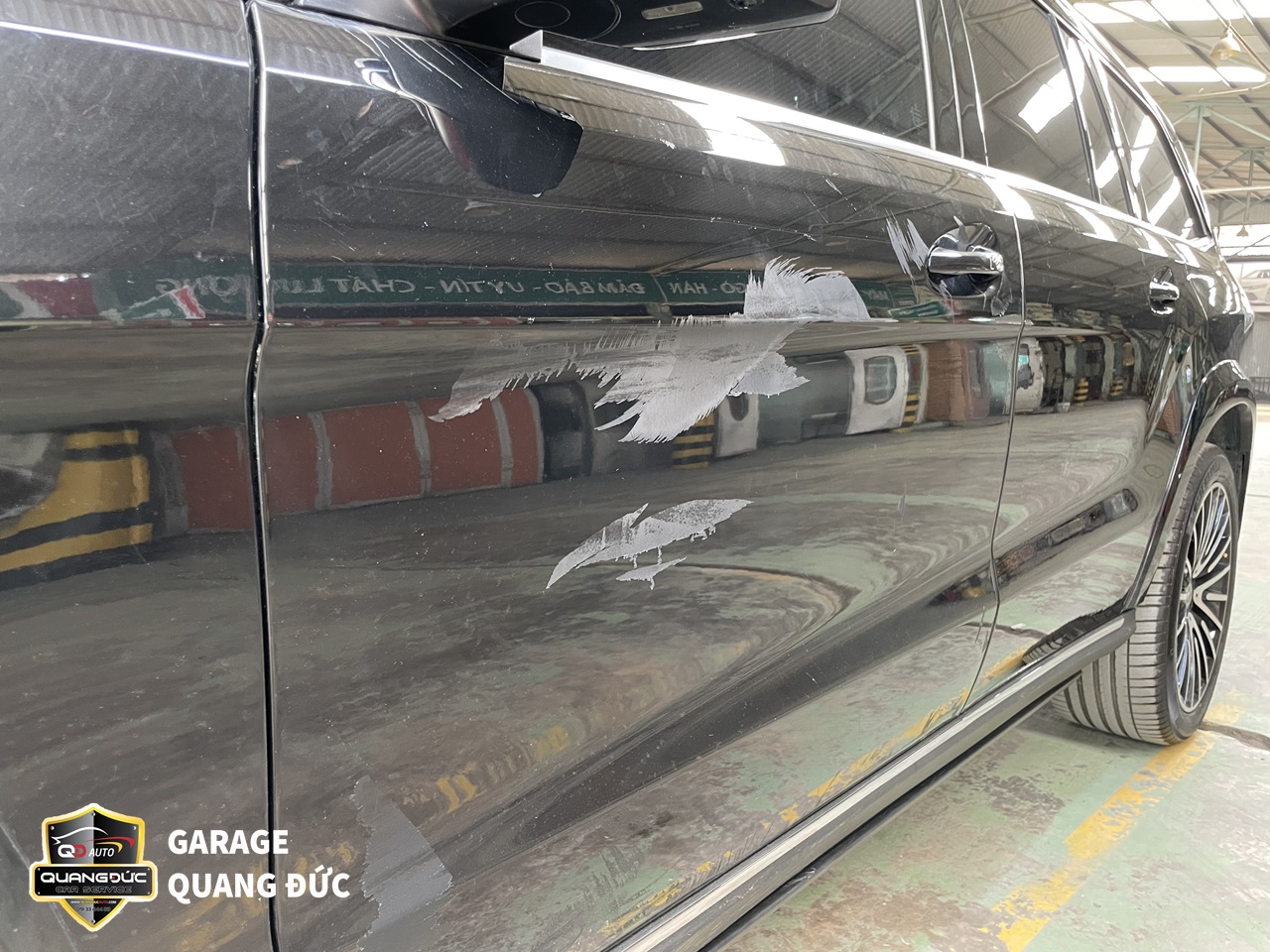 Chiếc Mercedes GLS350 bị bong tróc sơn xung quanh xe do tác động của ngoại cảnh, sơn lại toàn bộ xe Mercedes GLS350 mang lại nhiều lợi ích. Đầu tiên, nó giúp cải thiện vẻ ngoài của xe, làm cho nó trở nên mới mẻ và hấp dẫn hơn như thuở ban đầu. Thứ hai, việc này cũng giúp bảo vệ bề mặt xe khỏi các yếu tố môi trường như nắng, mưa, và hóa chất đường phố.