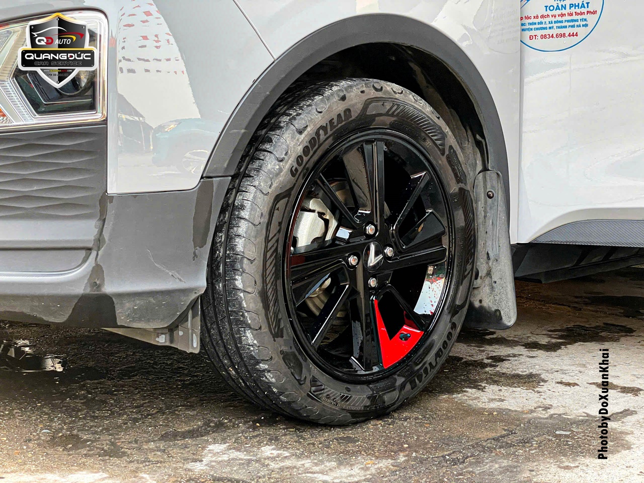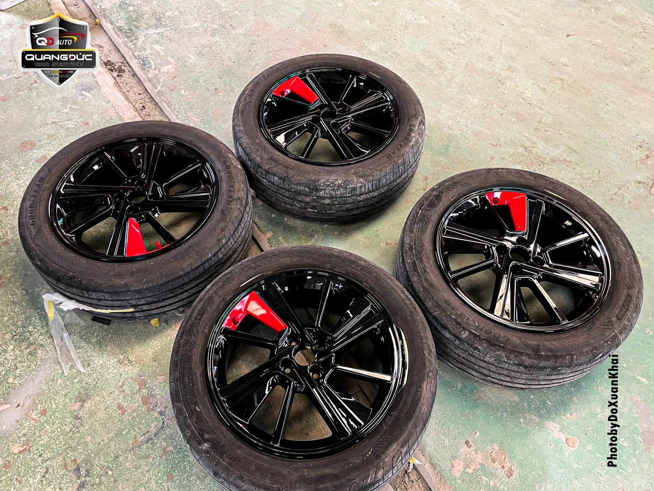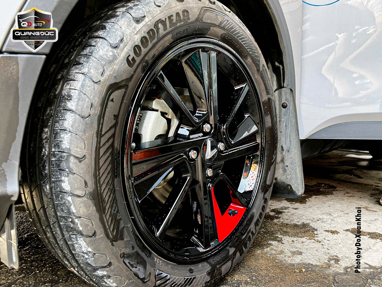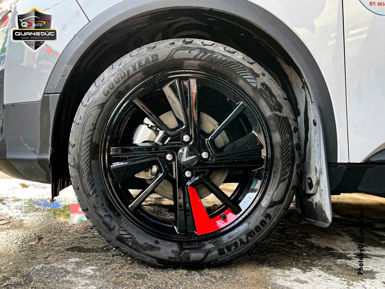 Chủ xe đã quá nhàm chán với chiếc vành lazang của xe ô tô truyền thống khi mua xe ô tô vậy nên đã thay đổi phong cách bằng việc sơn đổi màu lazang tại Garage Quang Đức Auto. Với rất nhiều màu đen mang đến cá tính thể thao, khỏe khoắn, làm chiếc xe thanh thoát hơn, ngoài ra còn có điểm nhấn màu đỏ làm thêm phần nổi bật ở cả 4 bánh.