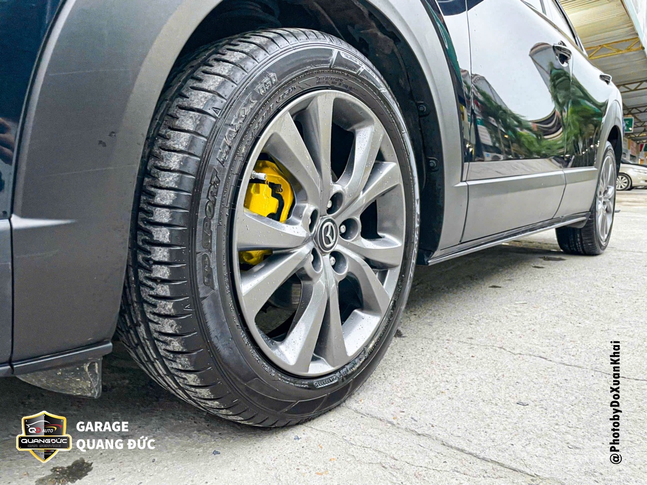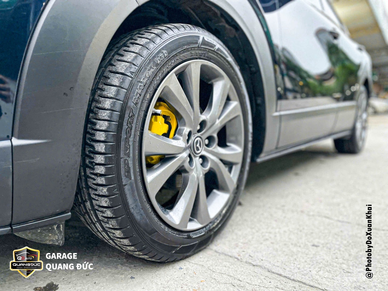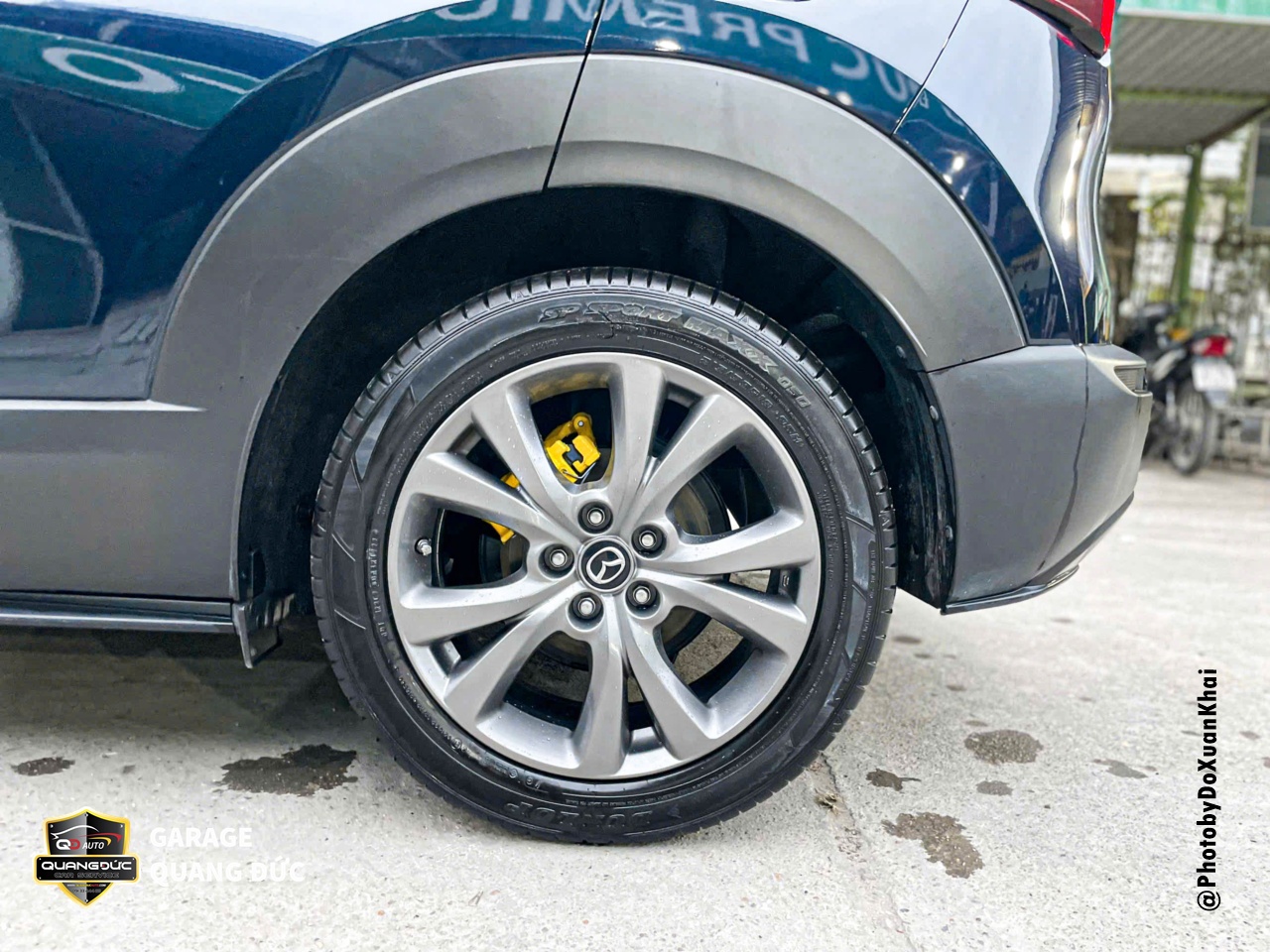 Chủ xe MAZDA CX-30 đã lựa chọn màu vàng và sơn Dupont để sơn cho cùm phanh 4 bánh trên xe.