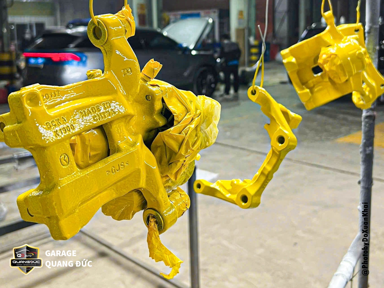Bước 6: Trước khi phun lớp sơn màu, che phủ cẩn thận các vùng không cần sơn. Pha màu sơn theo công thức để đảm bảo màu sắc chính xác. Sử dụng thiết bị pha màu sơn vi tính để đạt sự tương tự tốt nhất với màu gốc của cùm phanh.