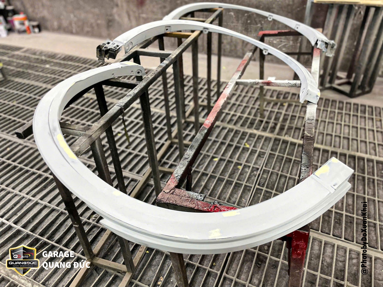 Bước 5: Chuẩn bị bề mặt và che phủ các vùng không cần sơn, sau đó sơn lớp sơn lót. Lớp sơn lót này che phủ bả matit và sơn chống gỉ, cũng như làm cho lớp sơn chính đạt màu sắc và bóng đẹp hơn. Sau khi sơn lót, thực hiện việc sấy khô và đánh nhám lớp sơn lót để tăng độ bám dính cho lớp sơn chính.