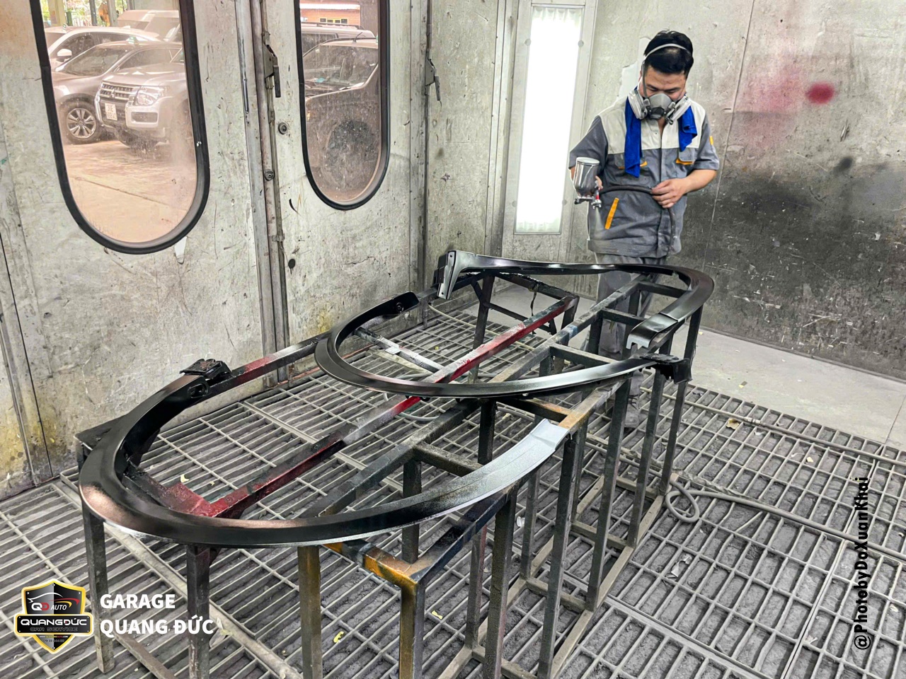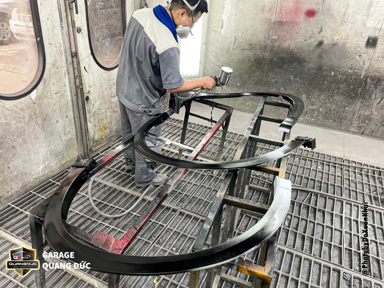Bước 4: Phun sơn và sấy khô lần lượt với các lớp như bả matit, lớp sơn lót, sơn màu. Cuối cùng là phun sơn bóng và đánh bóng hoàn thiện, để tạo nên màu đen bóng cho các chi tiết ốp.