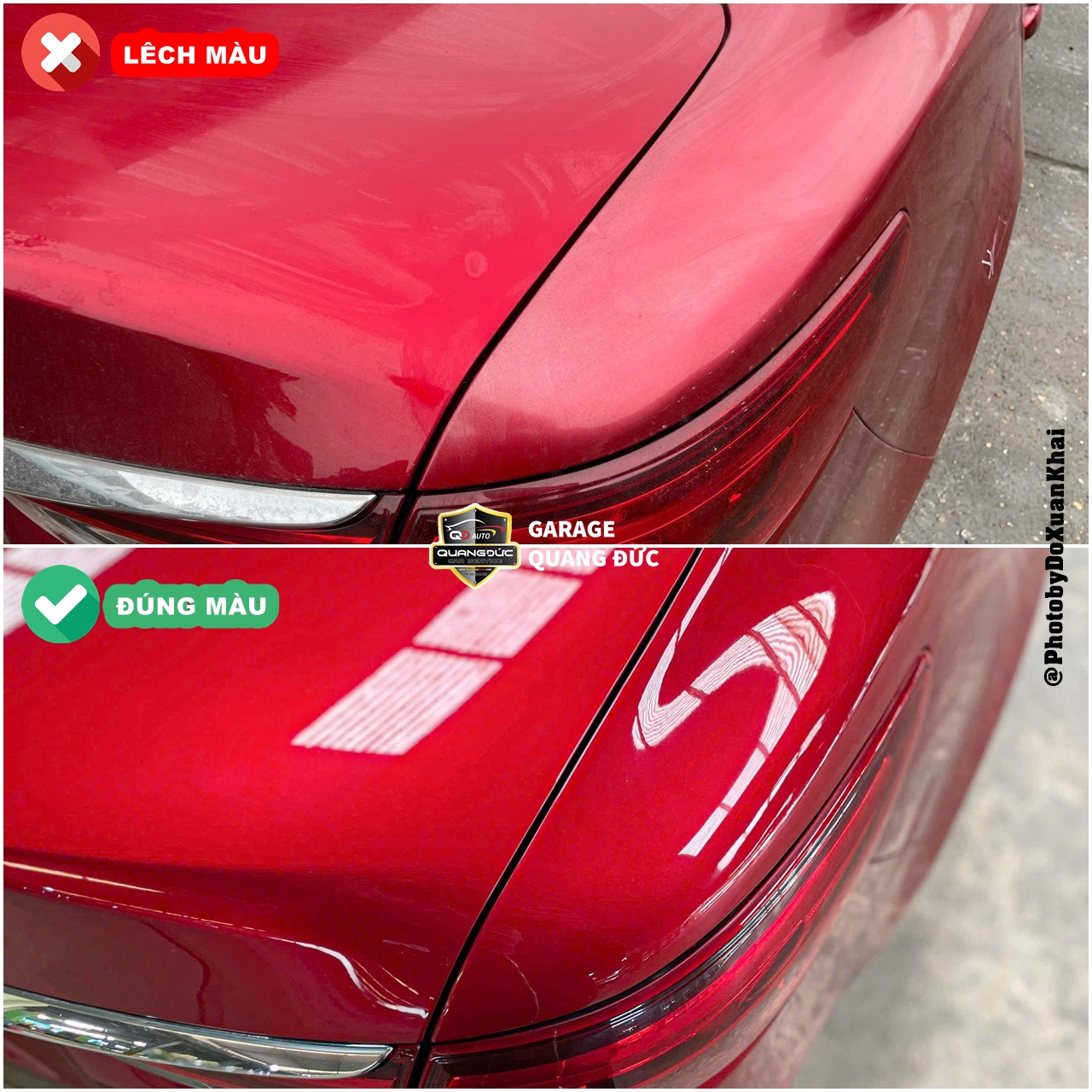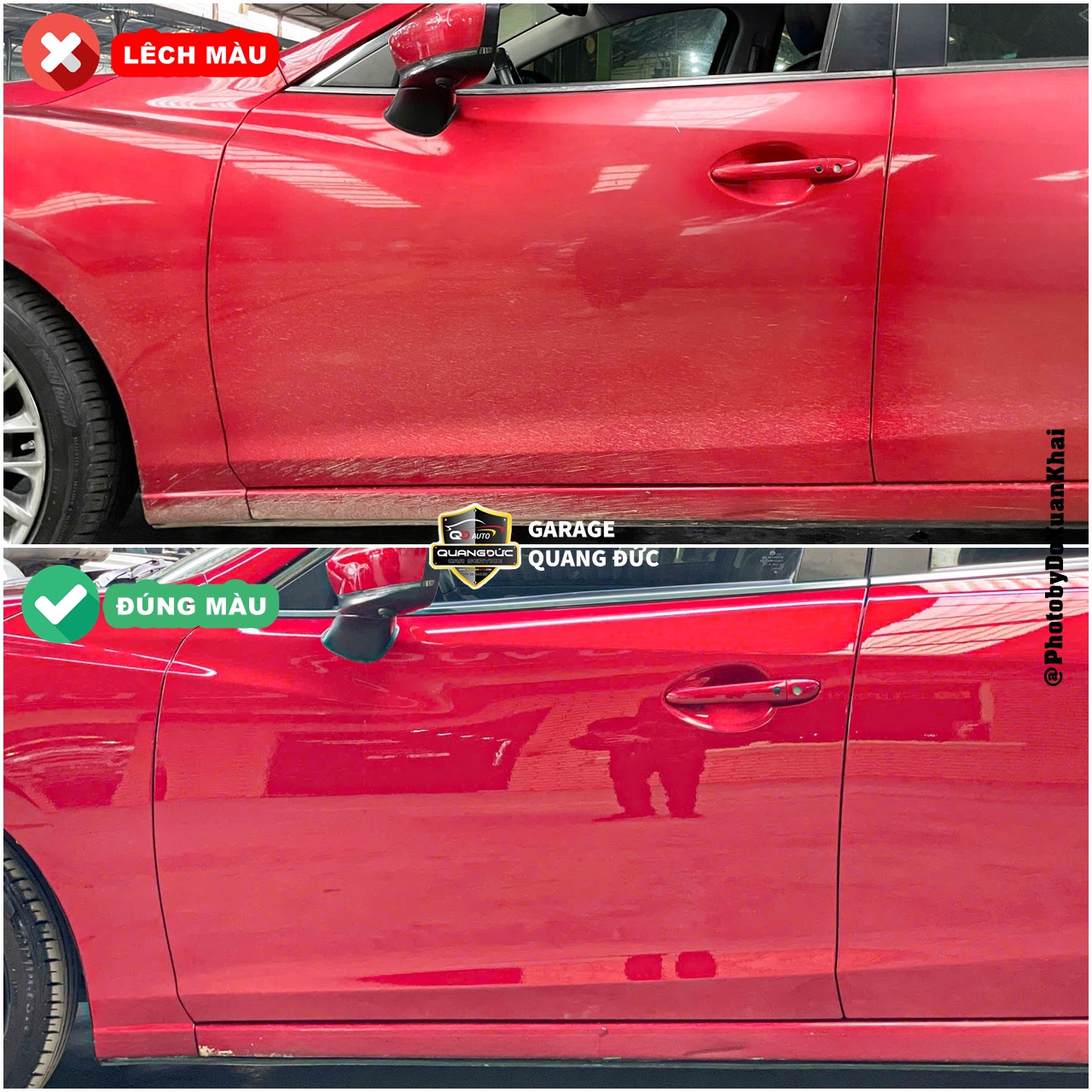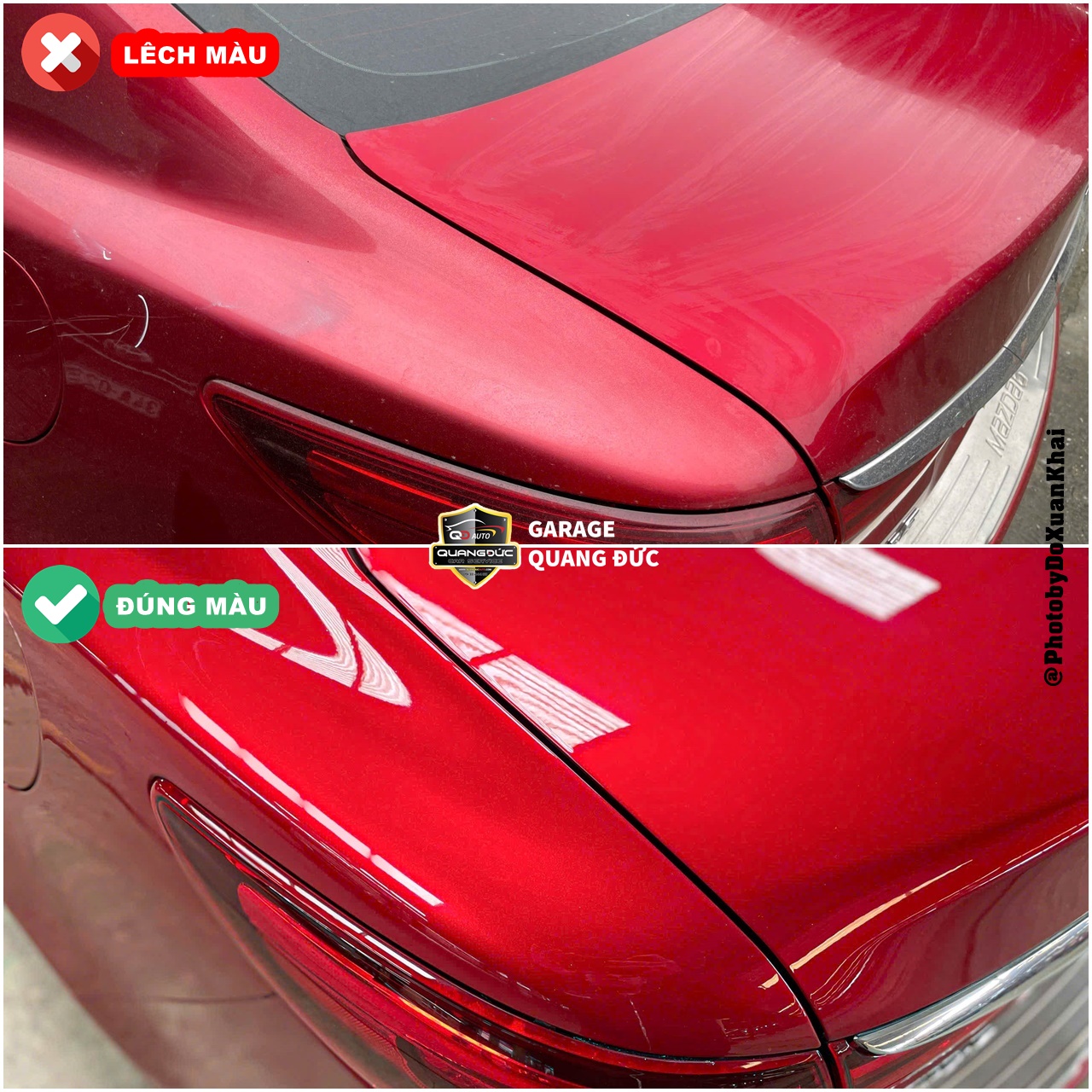 Lỗi lệch màu sơn xe ô tô là hiện tượng một hay một vài bộ phận thân vỏ xe có màu sơn khác với phần còn lại, thậm chí khác với màu nguyên bản của xe. Điều này xảy ra bởi nhiều nguyên nhân khác nhau và đây là một lỗi thường gặp khi chúng ta sơn lại xe ở các đơn vị thiếu uy tín, trình độ kém. Tình trạng sơn xe ô tô lệch màu là một vấn đề rất thường gặp và ảnh hưởng đến tính thẩm mỹ cũng như giá trị của cả chiếc xe. Khi đó, sơn lại toàn bộ xe không chỉ giúp làm mới vẻ ngoài, mà còn giúp bề mặt thân vỏ lấy lại màu sắc chuẩn theo code màu nguyên bản, cụ thể đối với trường hợp của chiếc Mazda6 màu đỏ 46V đời 2019 dưới đây: