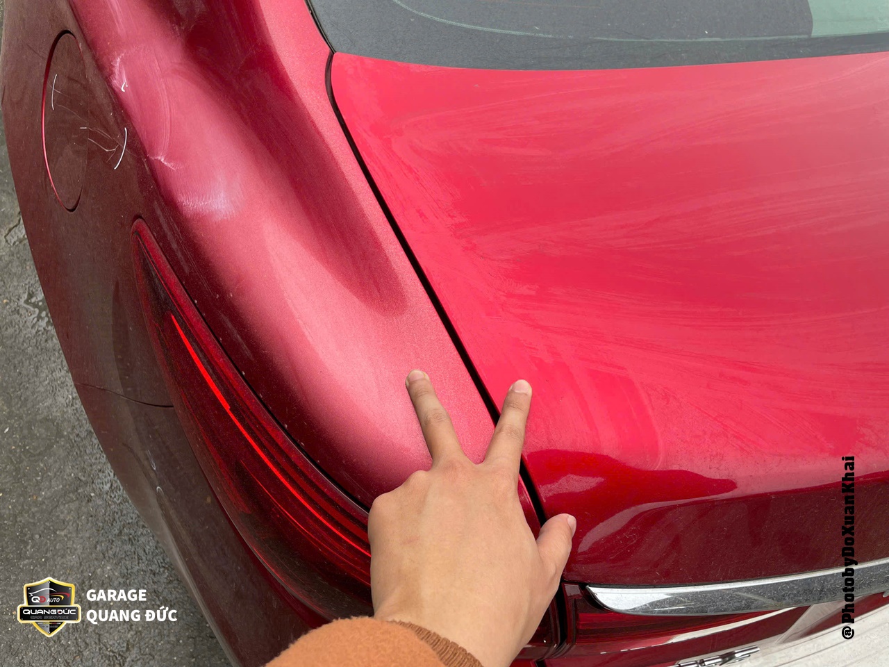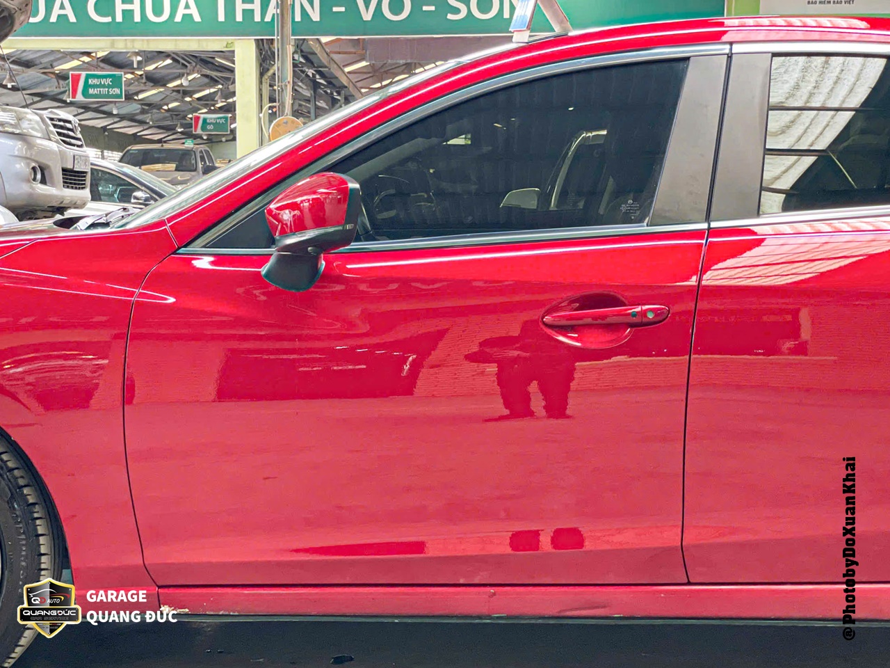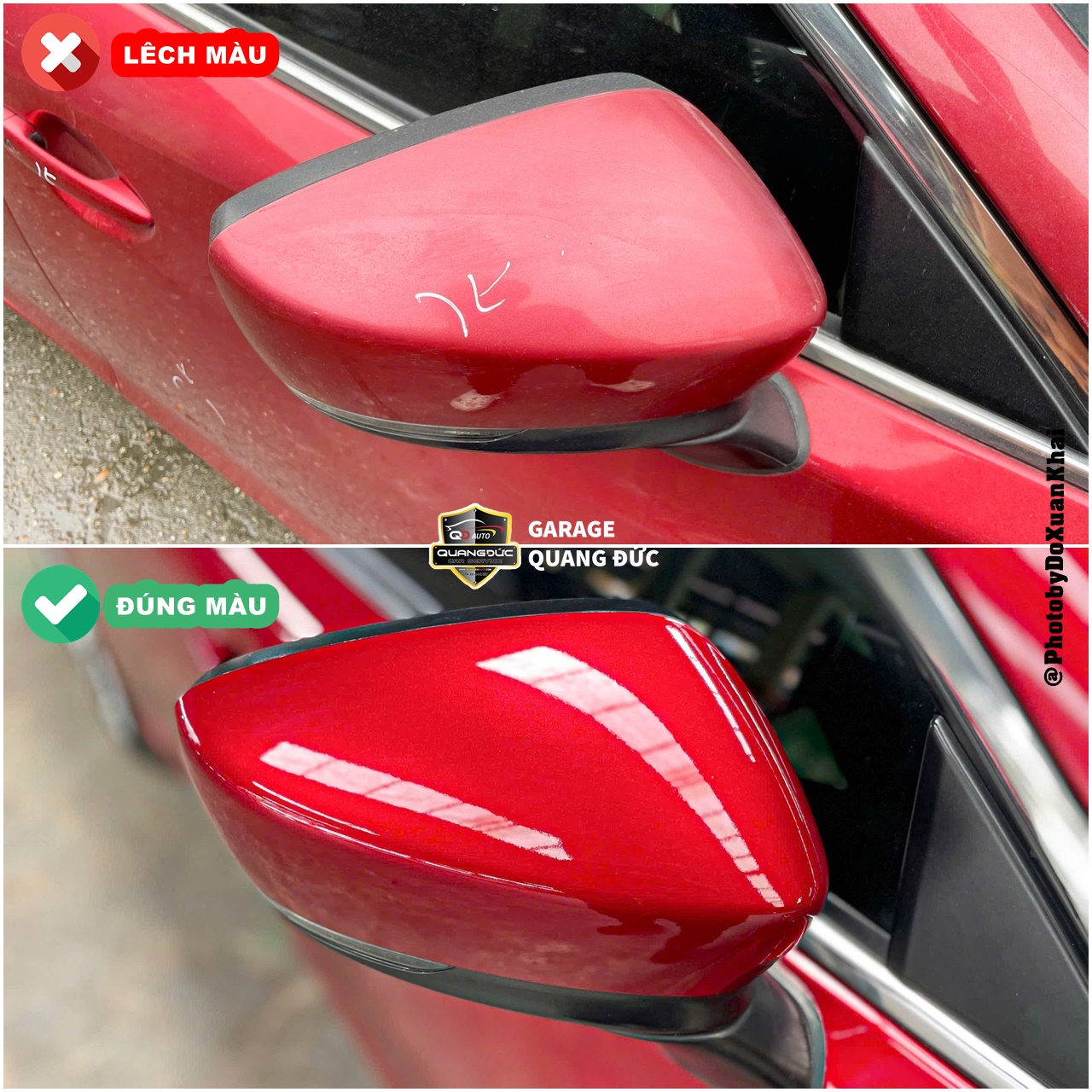 Lỗi lệch màu sơn xe ô tô là hiện tượng một hay một vài bộ phận thân vỏ xe có màu sơn khác với phần còn lại, thậm chí khác với màu nguyên bản của xe. Điều này xảy ra bởi nhiều nguyên nhân khác nhau và đây là một lỗi thường gặp khi chúng ta sơn lại xe ở các đơn vị thiếu uy tín, trình độ kém. Tình trạng sơn xe ô tô lệch màu là một vấn đề rất thường gặp và ảnh hưởng đến tính thẩm mỹ cũng như giá trị của cả chiếc xe. Khi đó, sơn lại toàn bộ xe không chỉ giúp làm mới vẻ ngoài, mà còn giúp bề mặt thân vỏ lấy lại màu sắc chuẩn theo code màu nguyên bản, cụ thể đối với trường hợp của chiếc Mazda6 màu đỏ 46V đời 2019 dưới đây: