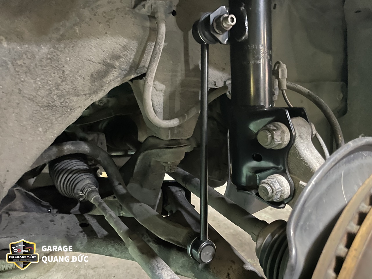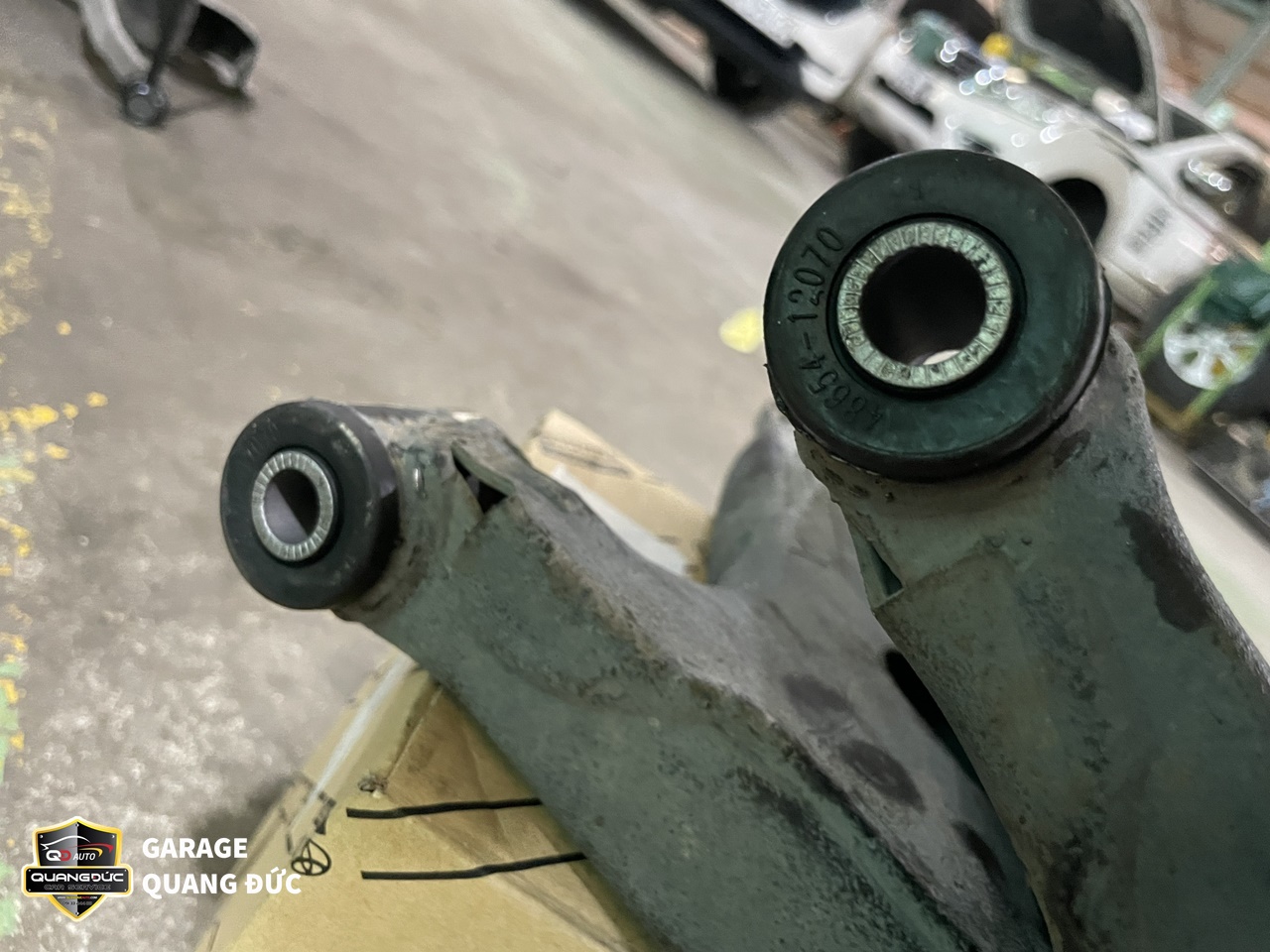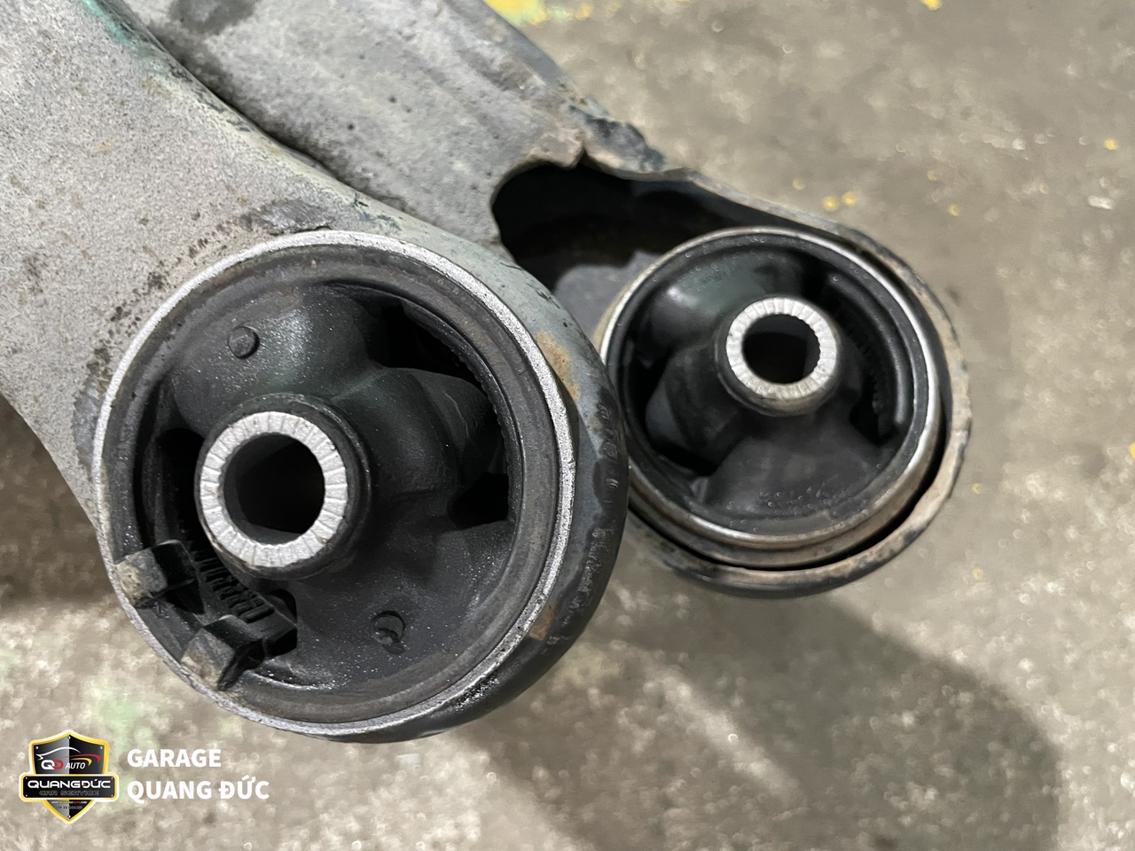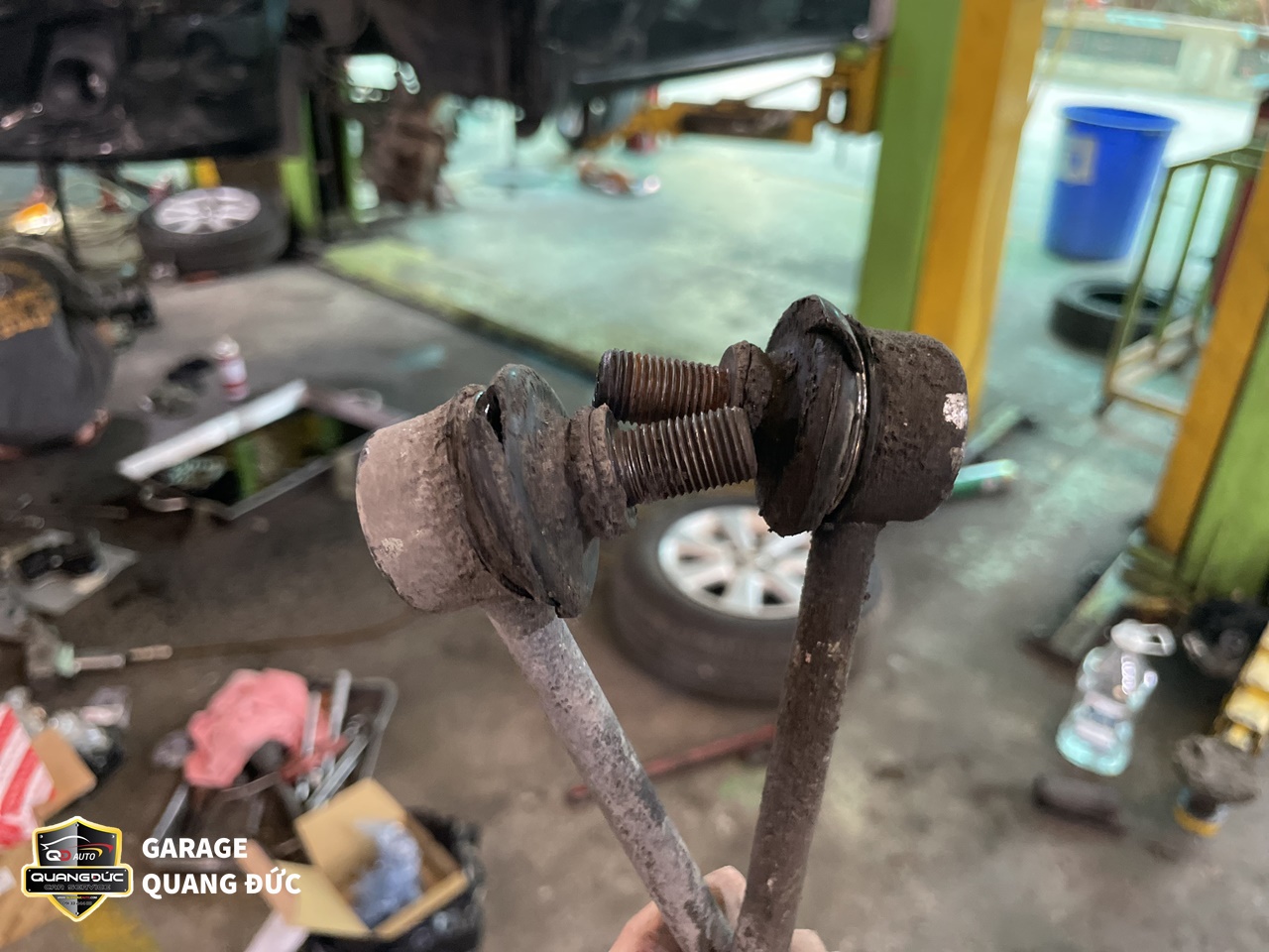 Sau khi kiểm tra, đội ngũ kỹ thuật của Quang Đức Auto đã nhận thấy Cao su càng A dưới ( To, nhỏ) bị nứt, mòn do oxi hóa, Rotuyn cân bằng bị bụi bẩn bám vào sâu bên trong gây bó kẹt do đó cần thay thế các chi tiết này.