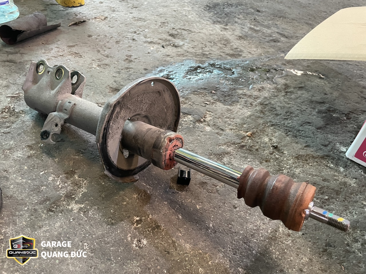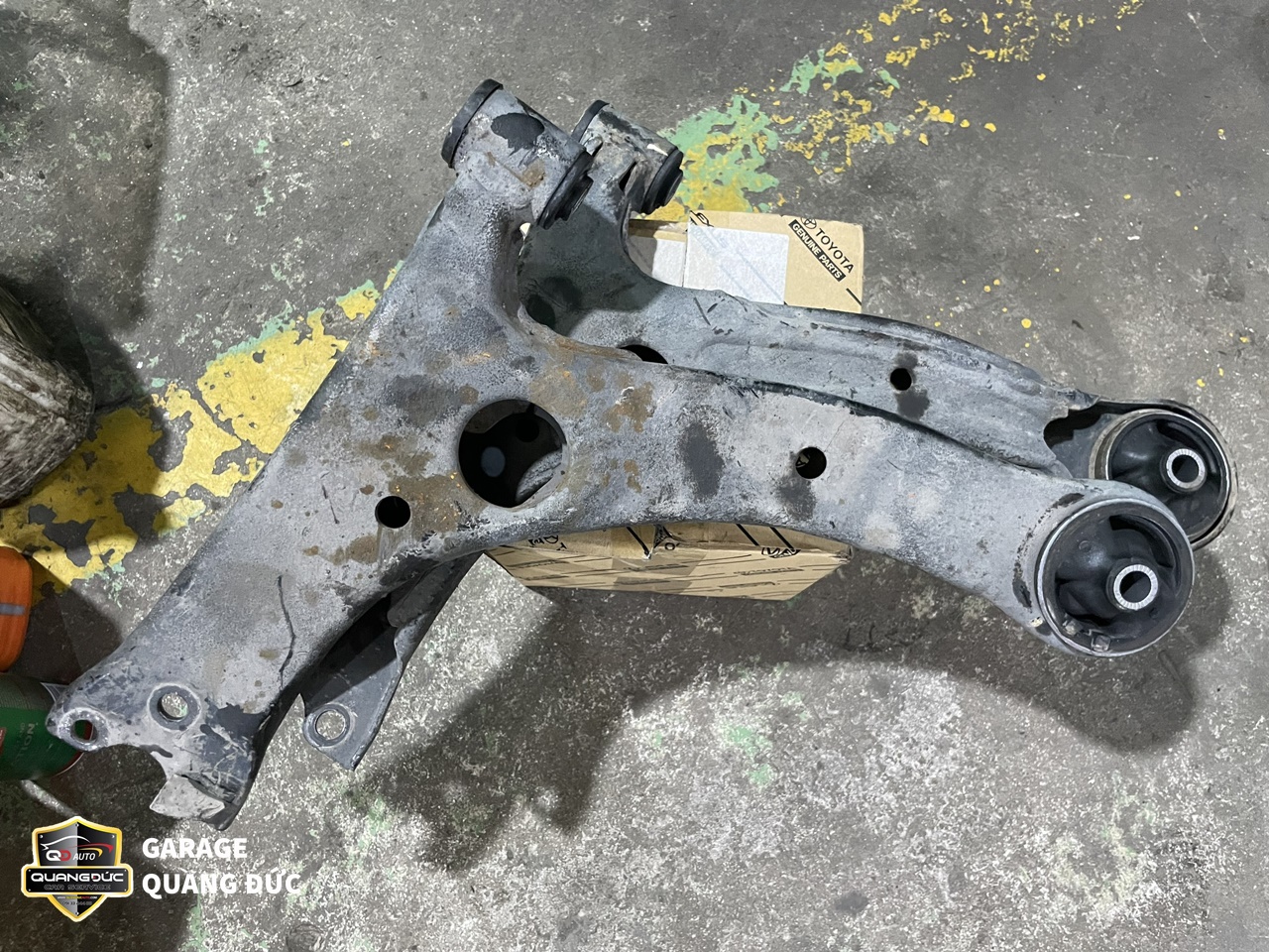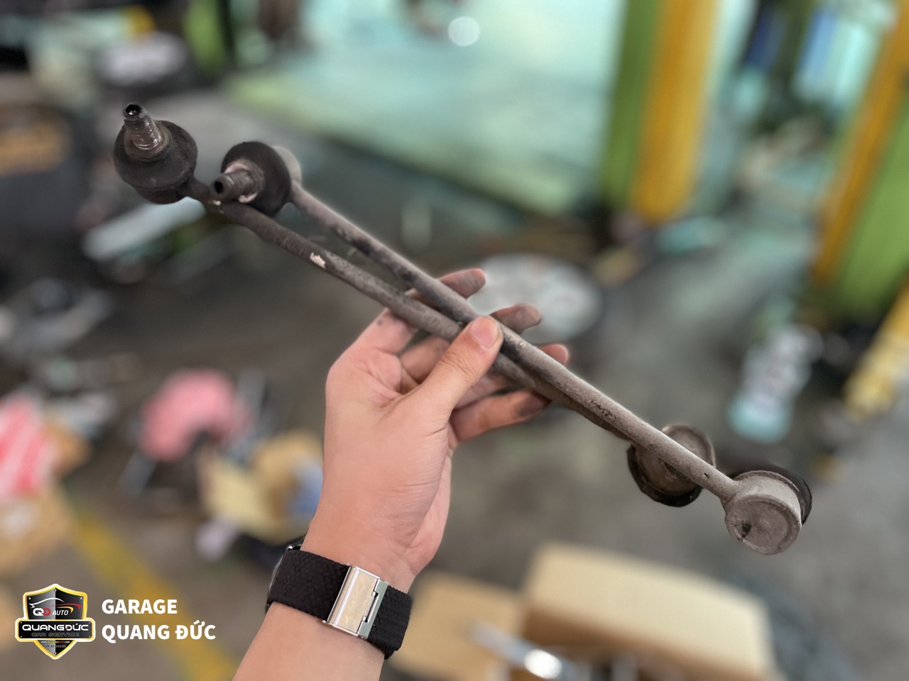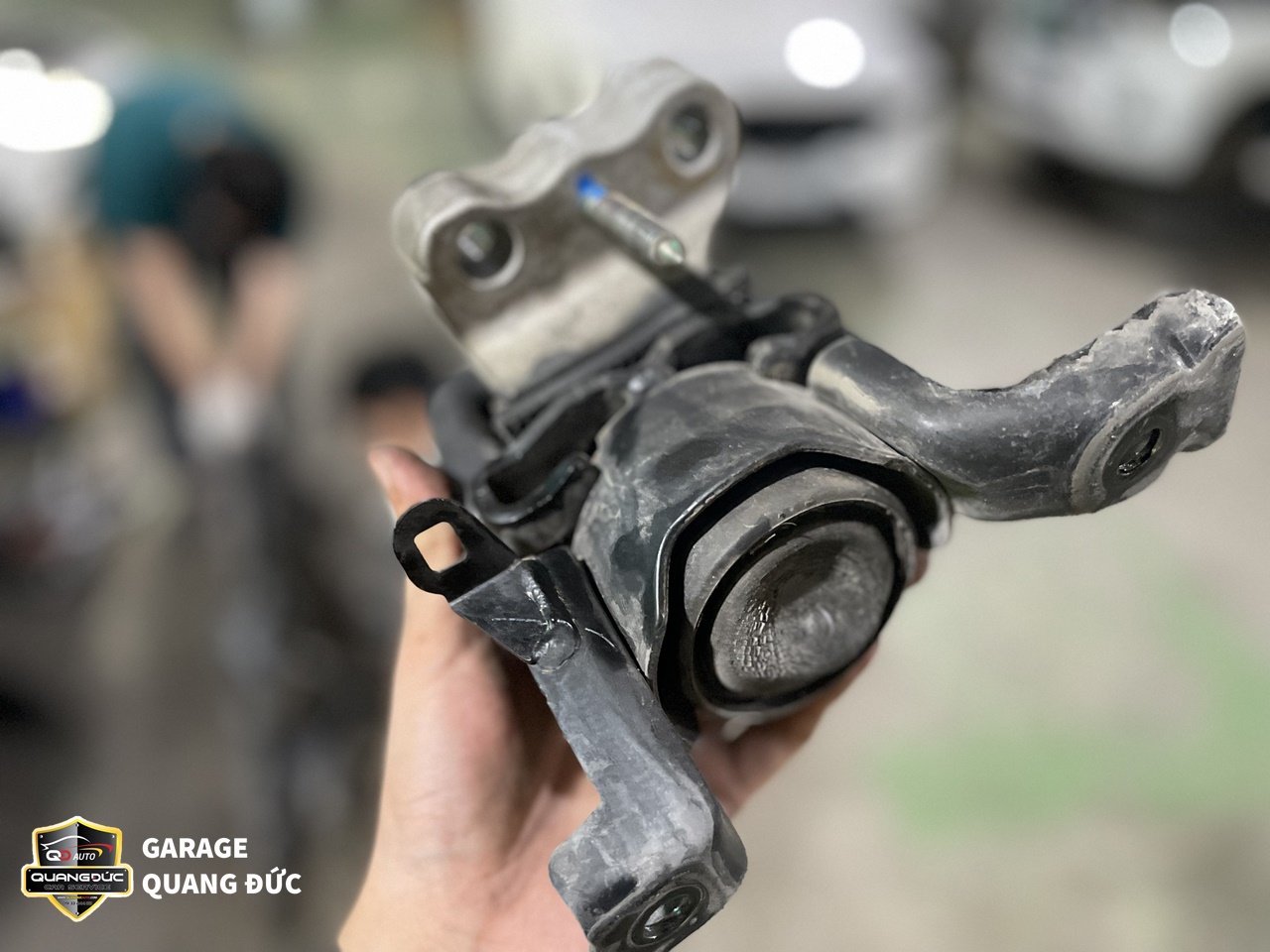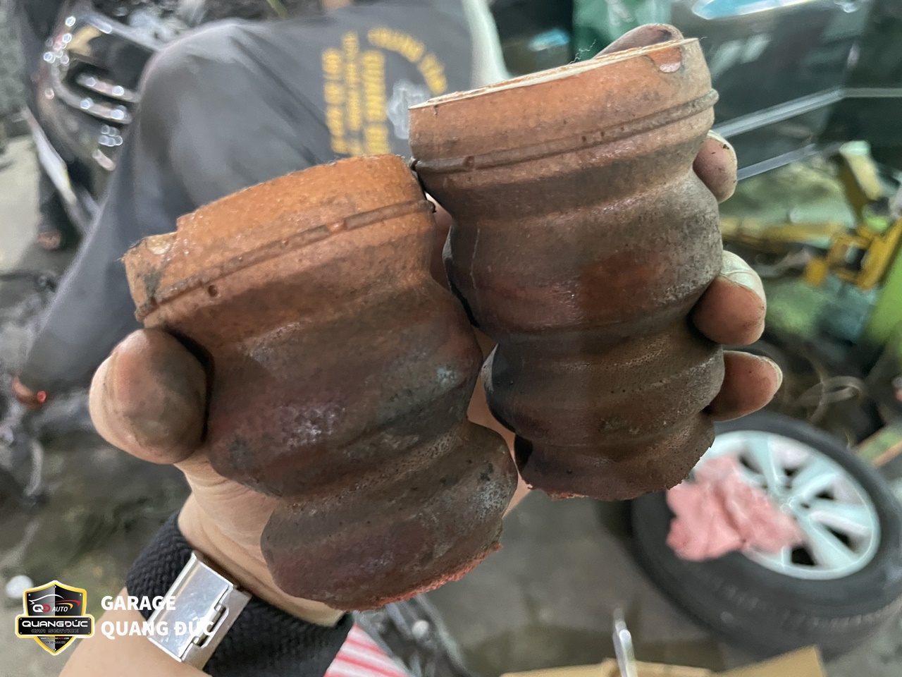 Sau khi kiểm tra, đội ngũ kỹ thuật của Quang Đức Auto đã nhận thấy Cao su càng A dưới ( To, nhỏ) bị nứt, mòn do oxi hóa, Rotuyn cân bằng bị bụi bẩn bám vào sâu bên trong gây bó kẹt do đó cần thay thế các chi tiết này.