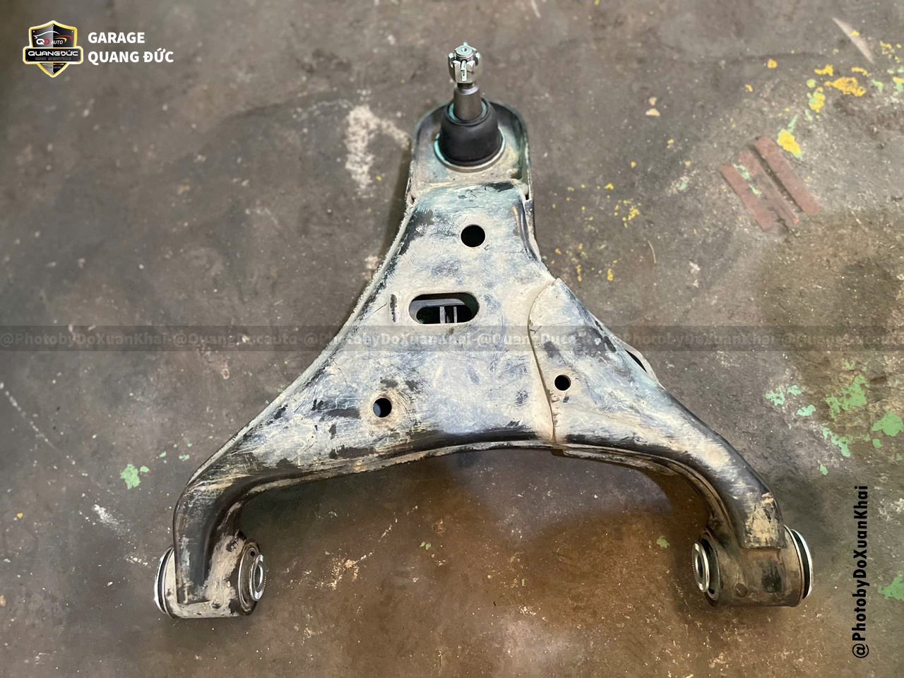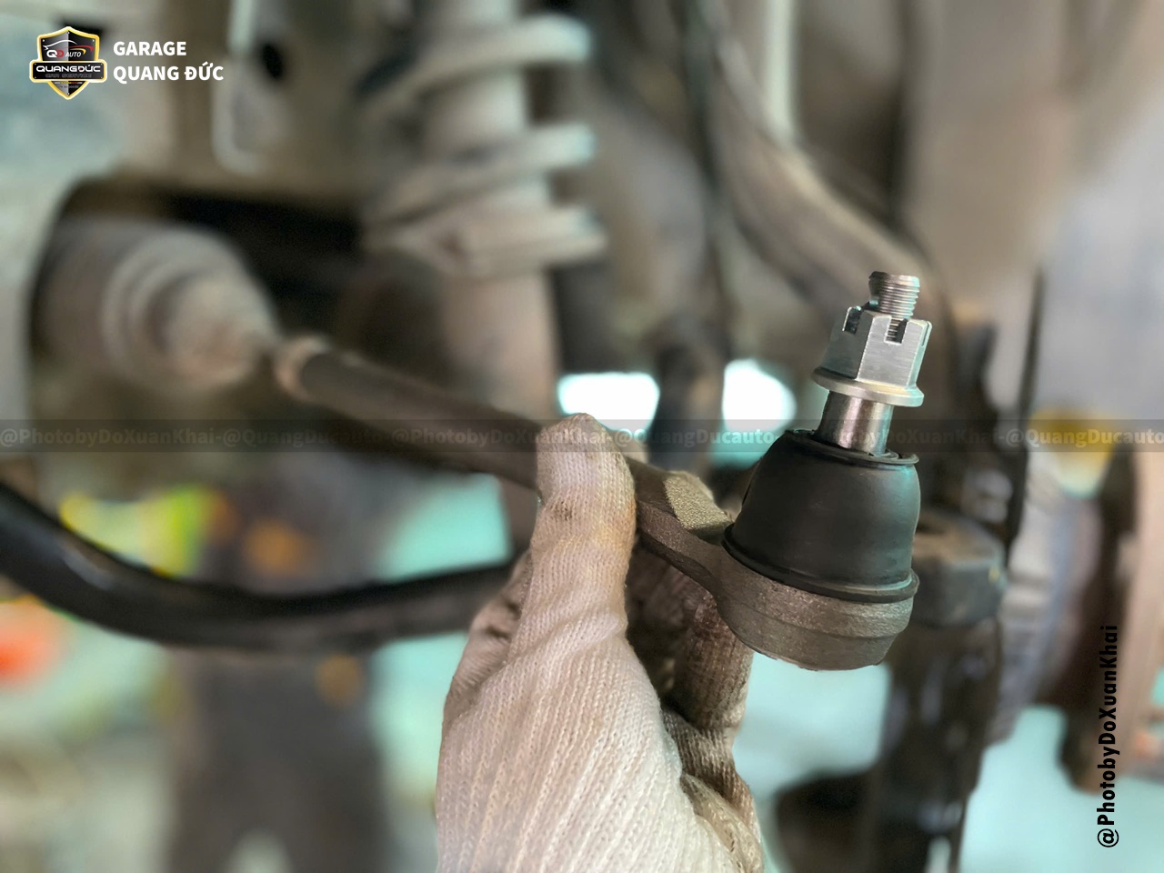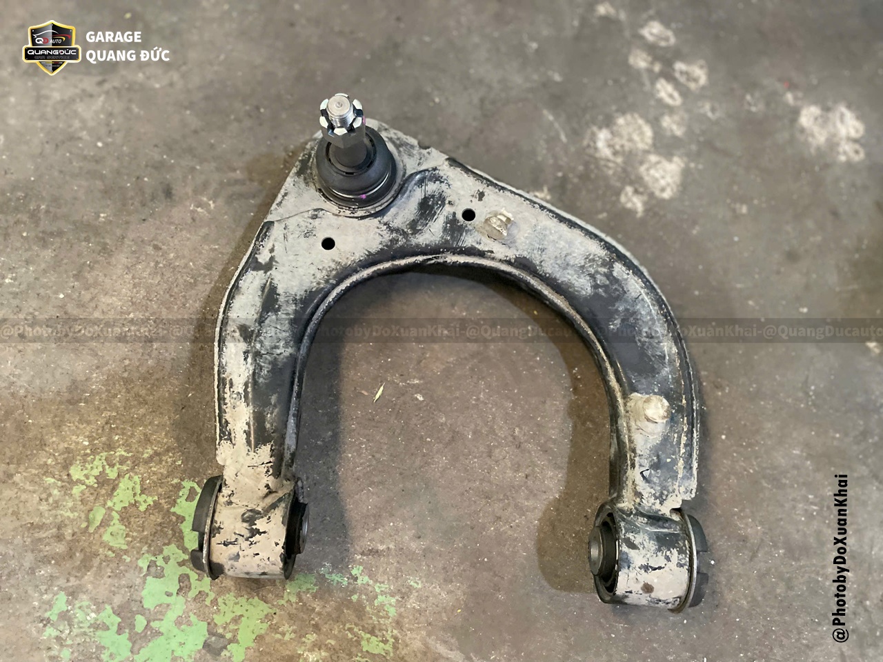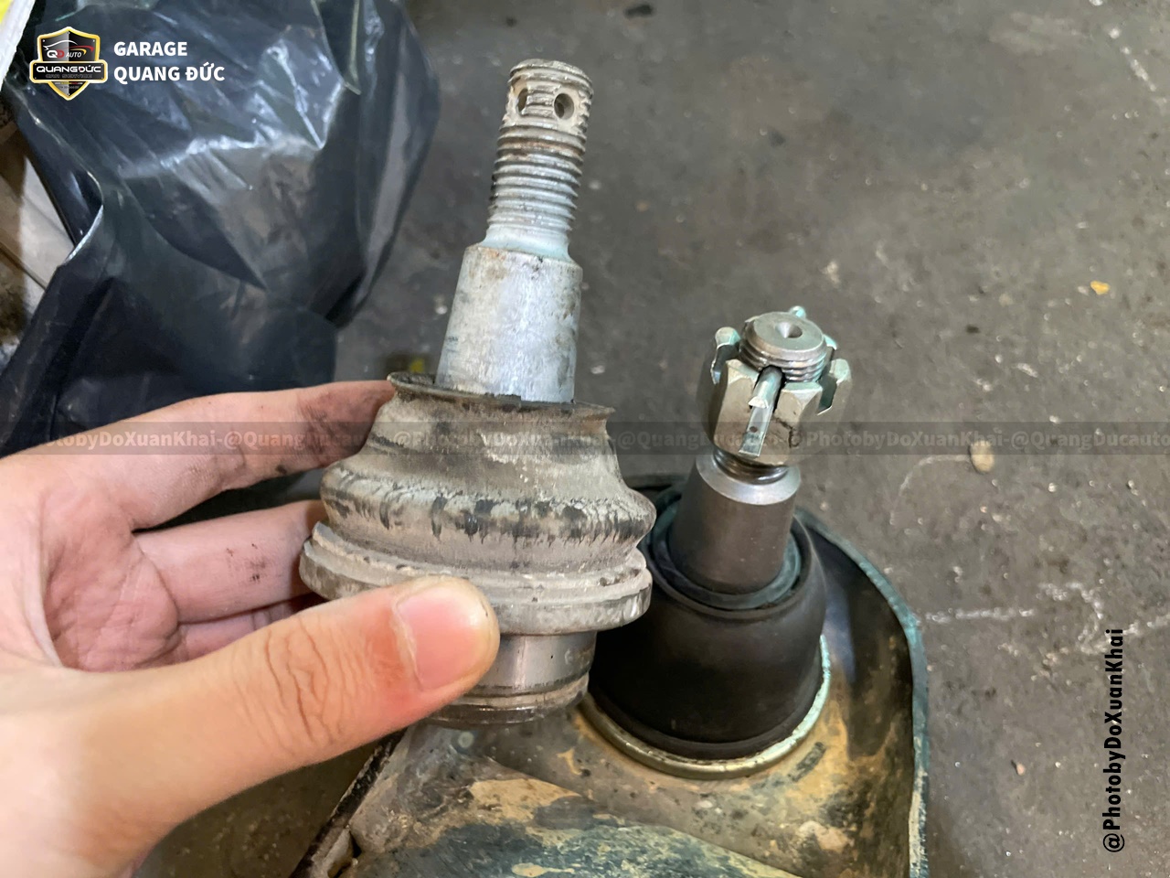 Sau khi kiểm tra, đội ngũ kỹ thuật của Quang Đức Auto đã nhận thấy Cao su càng A dưới ( To, nhỏ) bị nứt, mòn do oxi hóa, đó cũng là tình trạng của càng A trên, Rotuyn trụ đứng nơi các khớp nối bị bụi bẩn bám vào sâu bên trong gây bó kẹt do đó cần thay thế các chi tiết này.