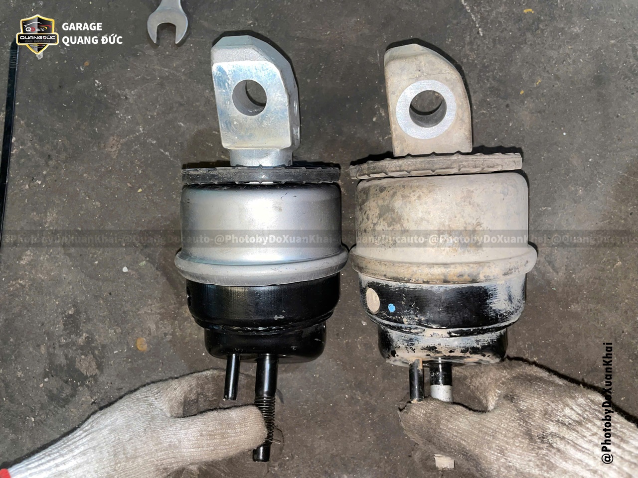 Trên thực tế, chiếc RANGER xuất hiện vấn đề rung lắc trong khoang máy, động cơ bị dịch chuyển rõ rệt và có tiếng ồn. Qua kiểm tra nhận thay cao su chân máy đã bị mòn gãy nứt, phần kim loại có dấu hiệu cong vênh cần phải thay thế.