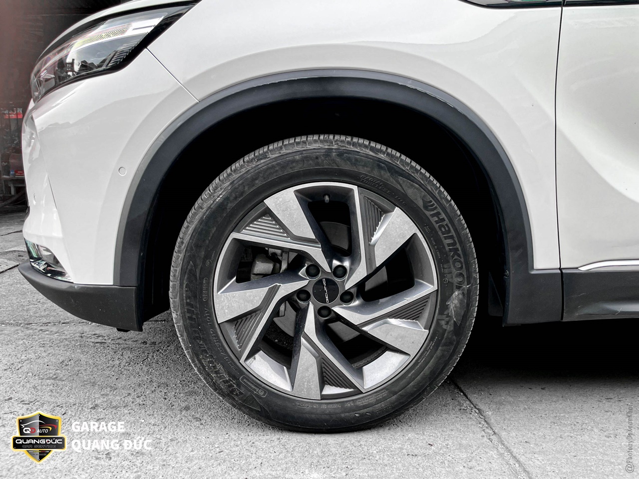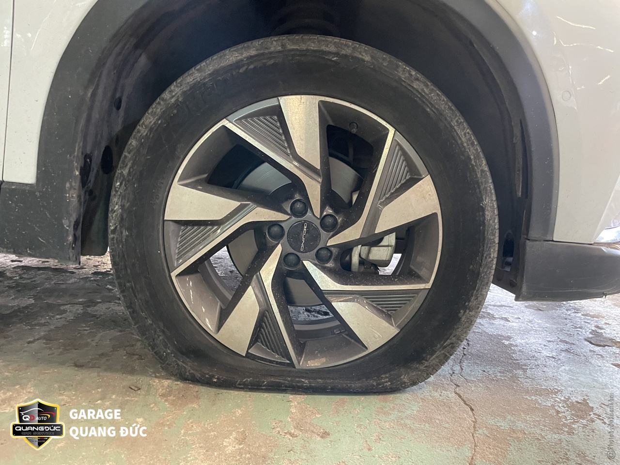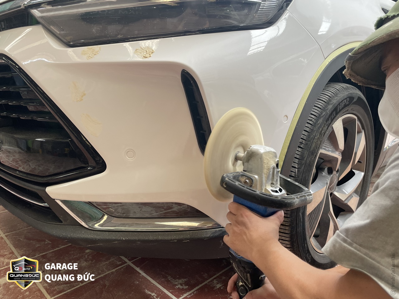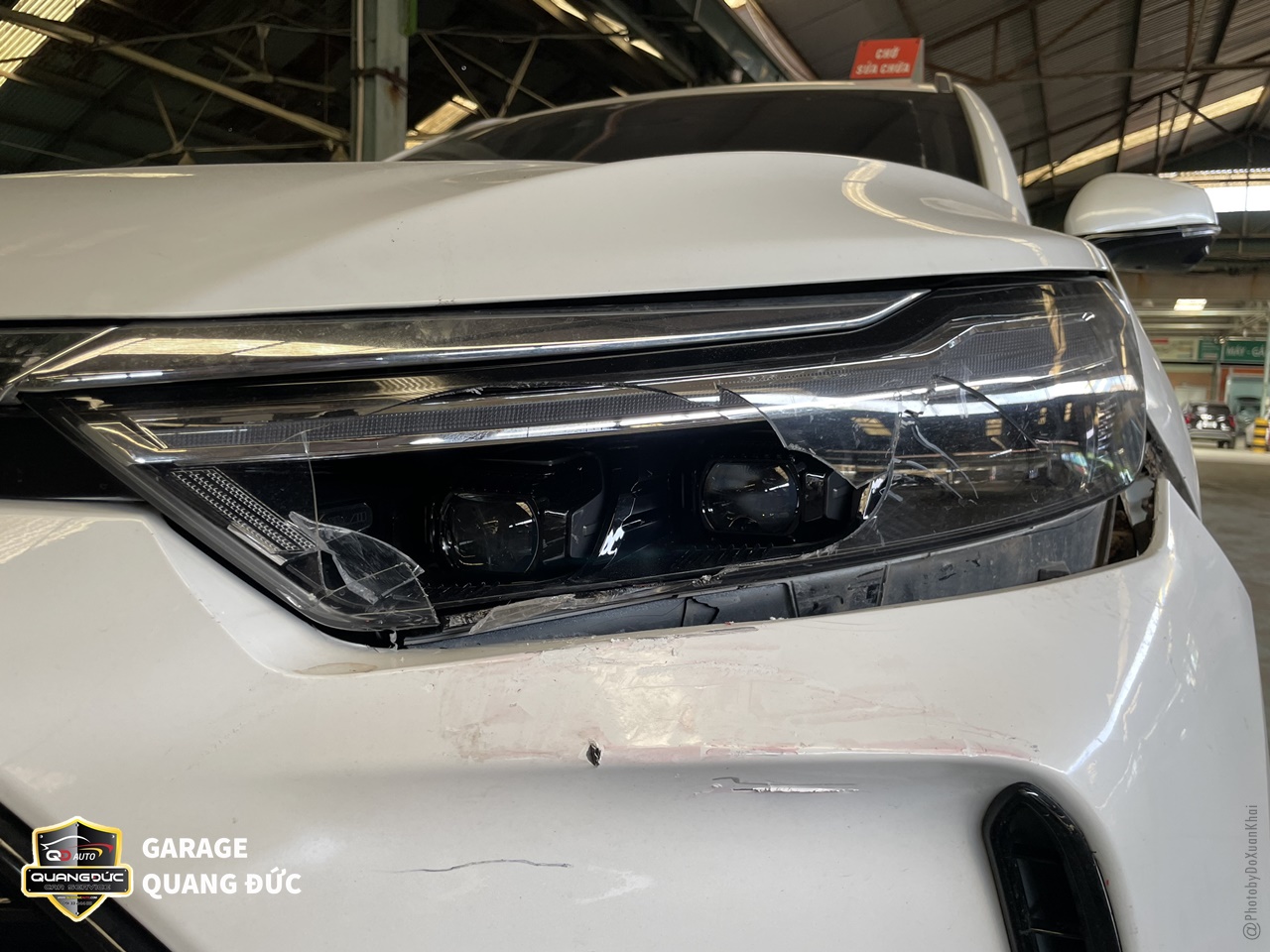 Phần đầu bị vỡ đèn được thay thế bằng một cụm đèn mới. CÙng với đó vị trí lazang xước cũng được phục hồi, thay lốp mới, kết hợp cân bằng động và cân chỉnh độ chụm bánh xe.
