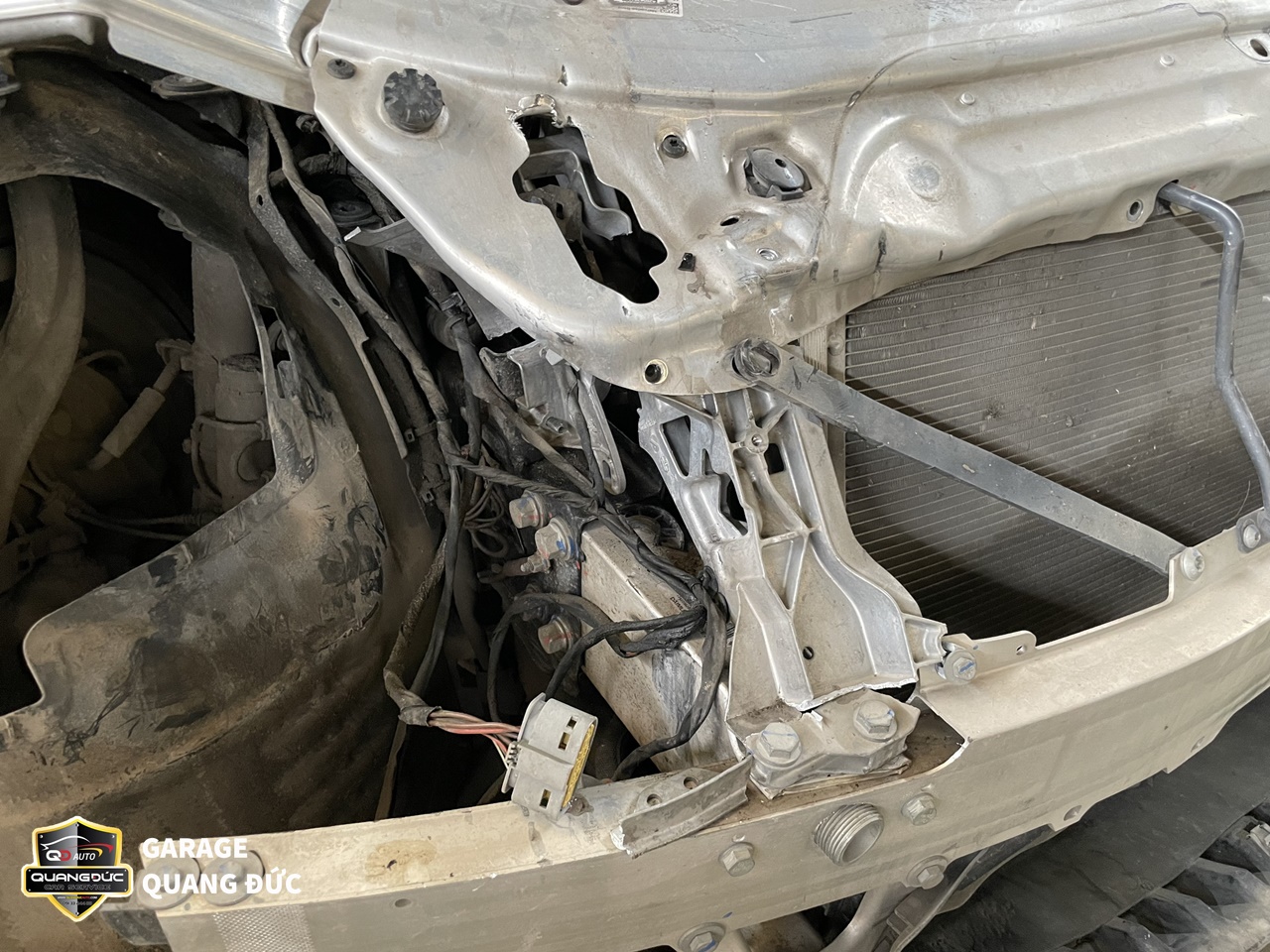 Chiếc xe được xác định hư hỏng phần đèn chiếu sáng, vỡ phần BDS trước, biến dạng khung xương đầu xe.