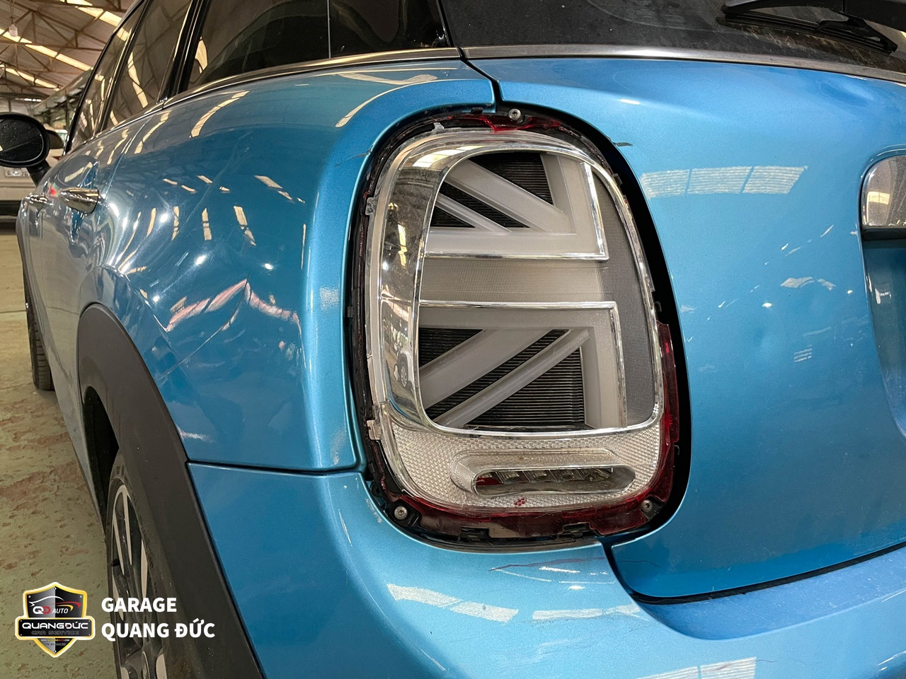 Phần đèn hậu Mini cooper hình cờ nước Anh bị vỡ được thay thế bằng một cụm đèn mới.