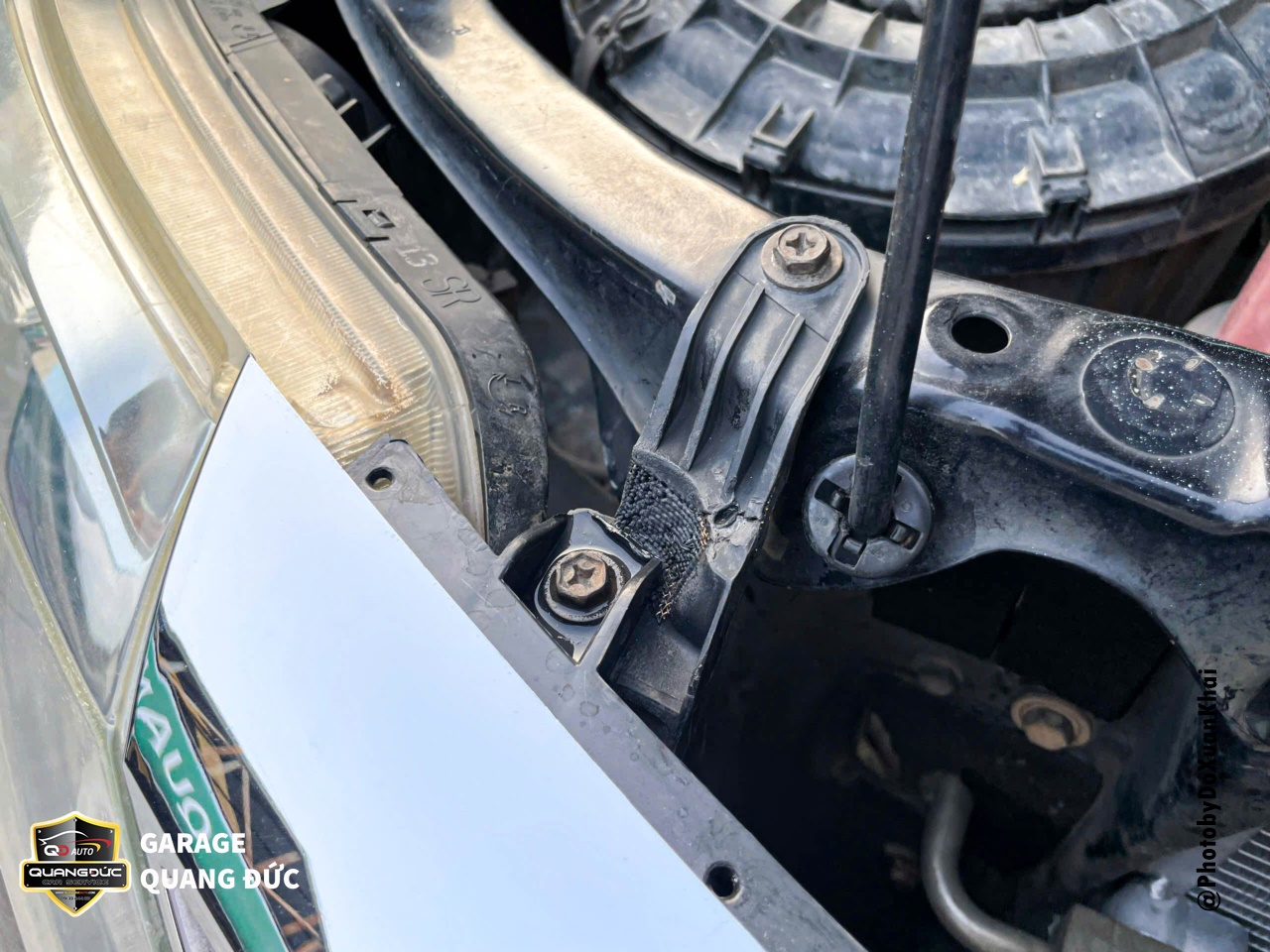 - Xương ụ giảm xóc sập, Khung xương giàn nóng két nước biến dạng, gập khóa capo