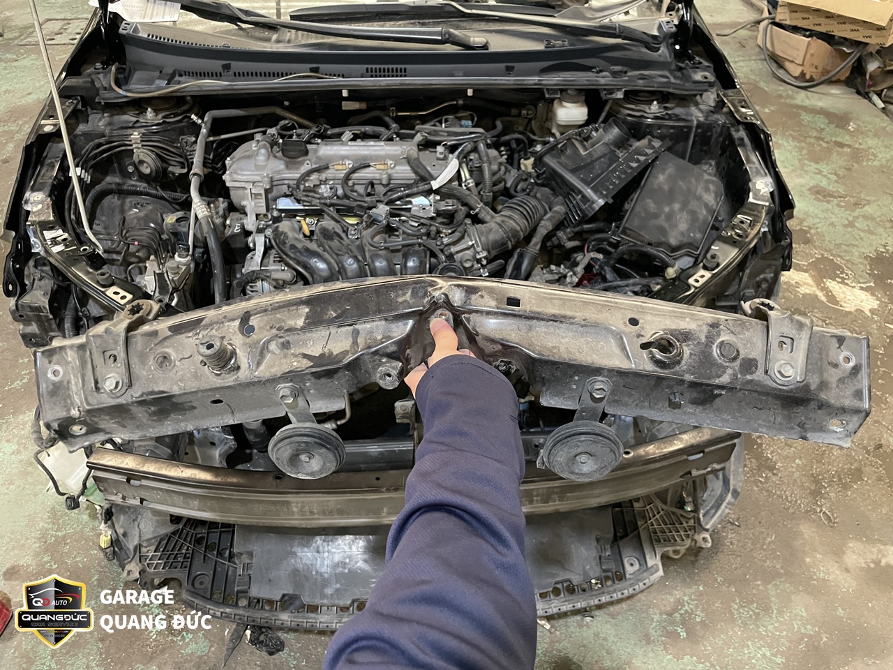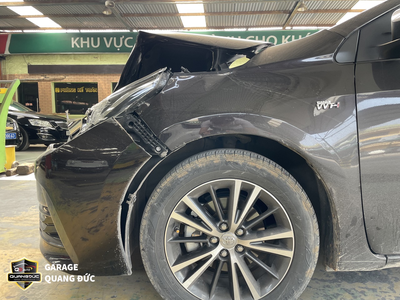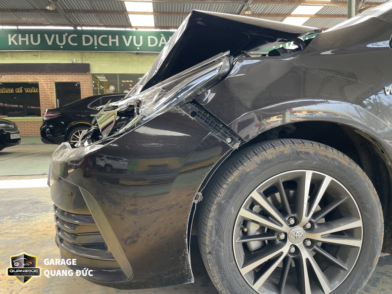 Việc phục hồi xe sau tai nạn là một quá trình quan trọng để đảm bảo an toàn và hiệu suất của phương tiện. Trong trường hợp của chiếc xe TOYOTA COROLLA ALTIS 2018, sau khi gặp tai nạn và phần đầu bị vỡ đèn chiếu sáng hai bên, móp xước Badershock (BDS), tai xe, biến dạng khung xương đầu xe... Vì vậy, để tân trang lại diện mạo sang trọng vốn có, chủ xe đã lựa chọn Garage Quang Đức Auto để tiến hành phục hồi, sửa chữa.