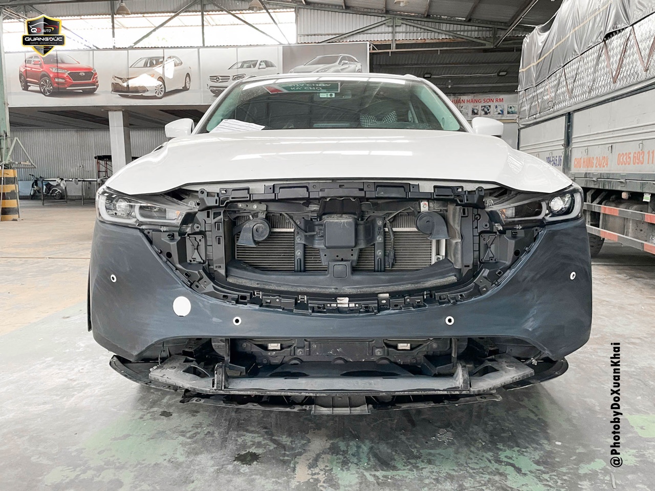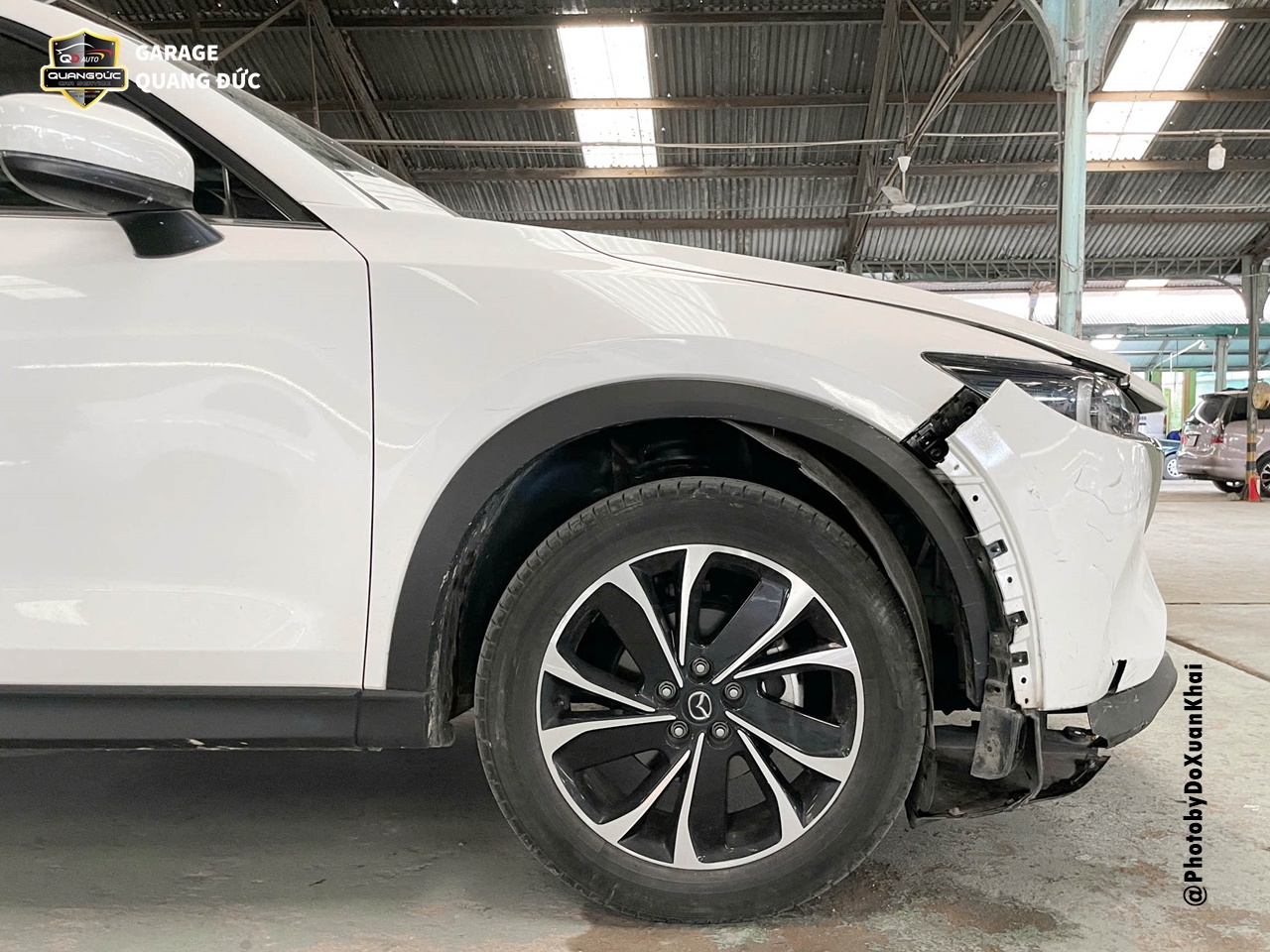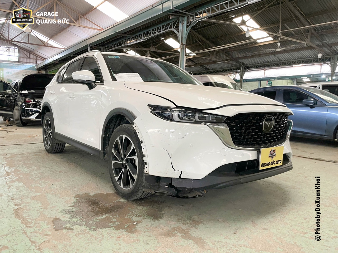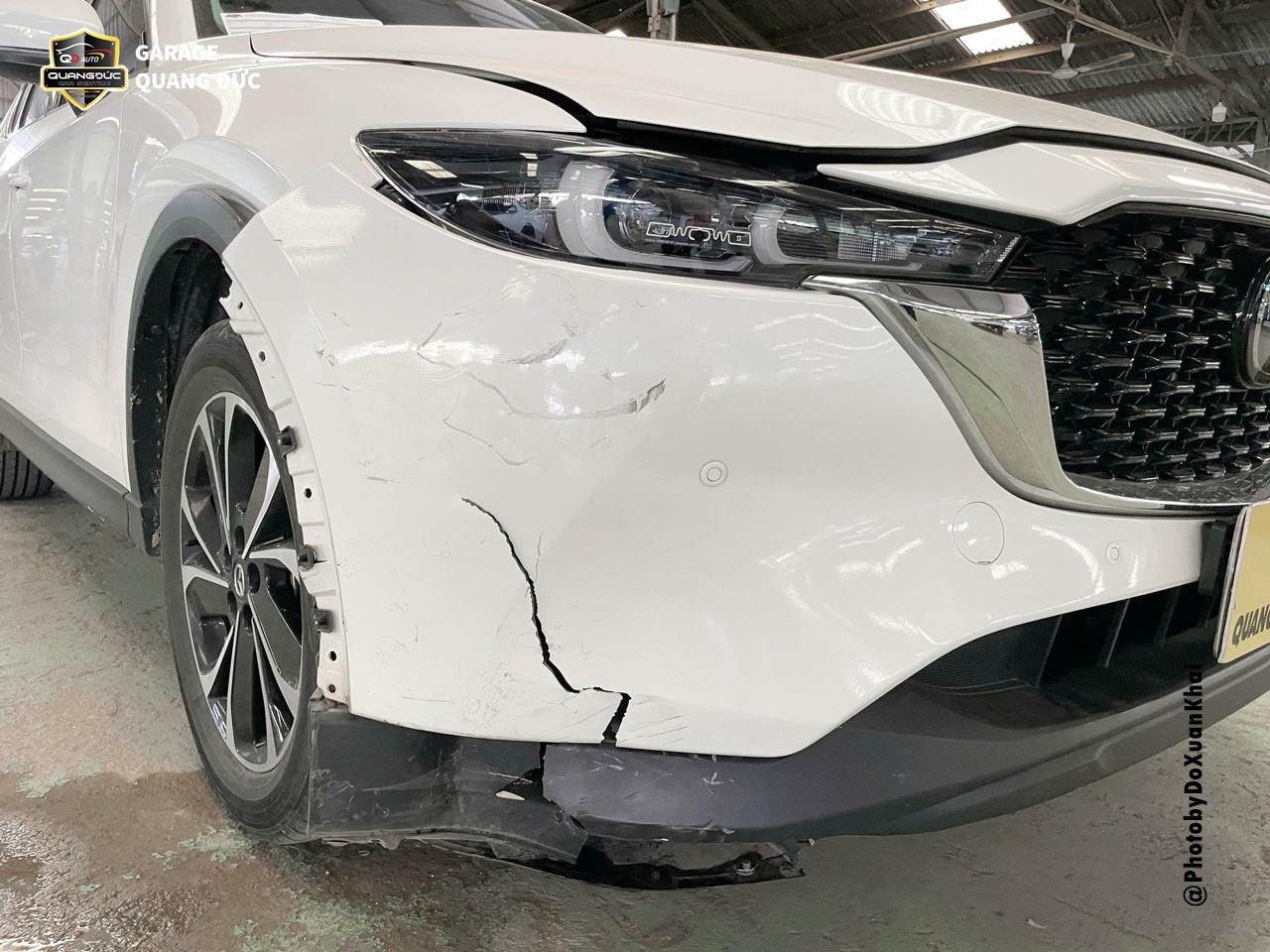 Trường hợp của chiếc xe MAZDA CX5 2023, sau khi gặp tai nạn và phần đầu bị xước nhẹ đèn pha, rách lớn Badershock (BDS) trước phụ. Vì vậy, để tân trang lại diện mạo mới mẻ vốn có, chủ xe đã lựa chọn Garage Quang Đức Auto để tiến hành thay thế phụ tùng chuẩn theo xe.