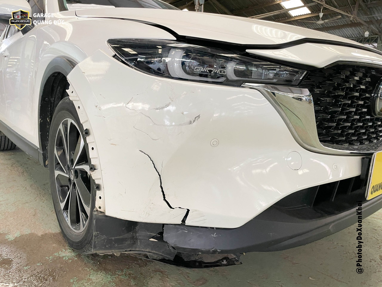 Phục hồi xe tai nạn là một quá trình quan trọng để đảm bảo an toàn và hiệu suất của phương tiện. Trong trường hợp của chiếc xe MAZDA CX5 thuộc đời 2023, chủ xe có nhu cầu thay thế mới phần cản trước và phục hồi những phần thân vỏ còn lại. Vì vậy, để tân trang lại diện mạo sang trọng vốn có, chủ xe đã lựa chọn Garage Quang Đức Auto để tiến hành phục hồi, thay thế, sửa chữa.