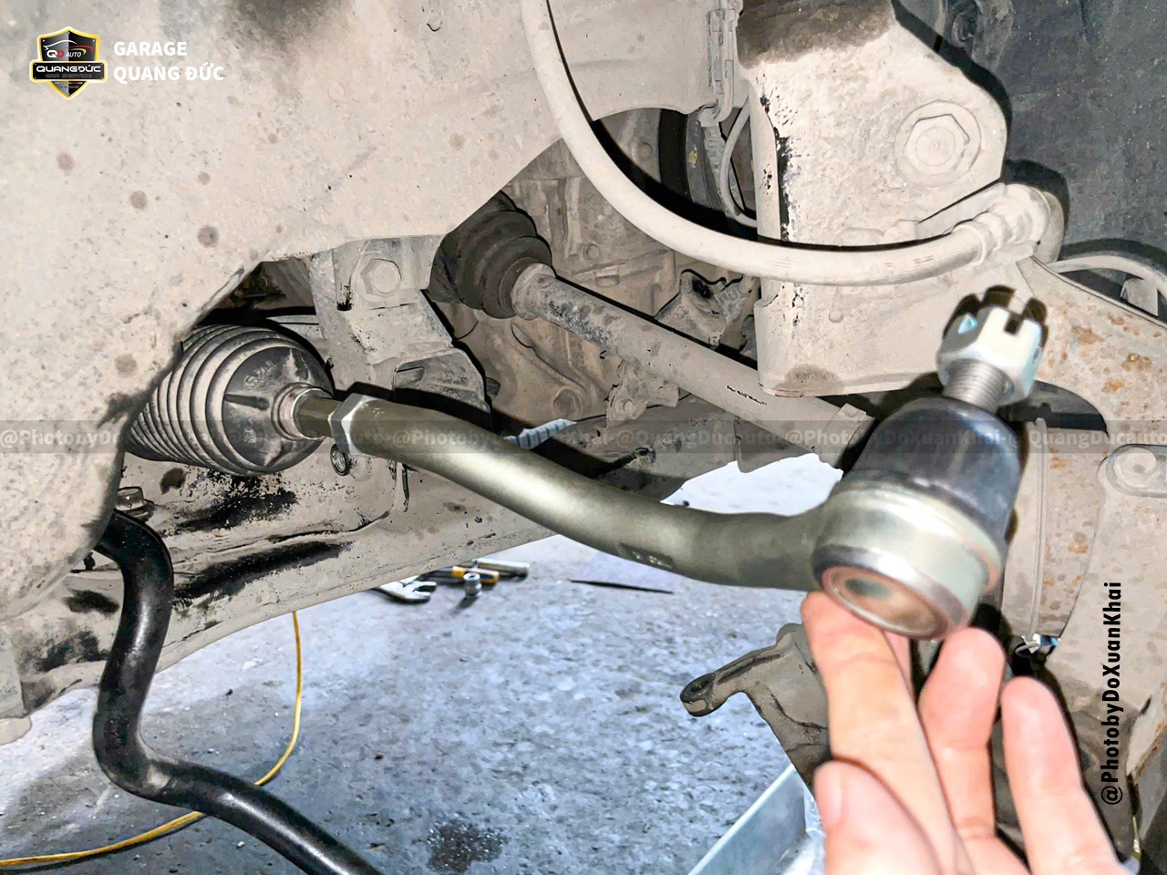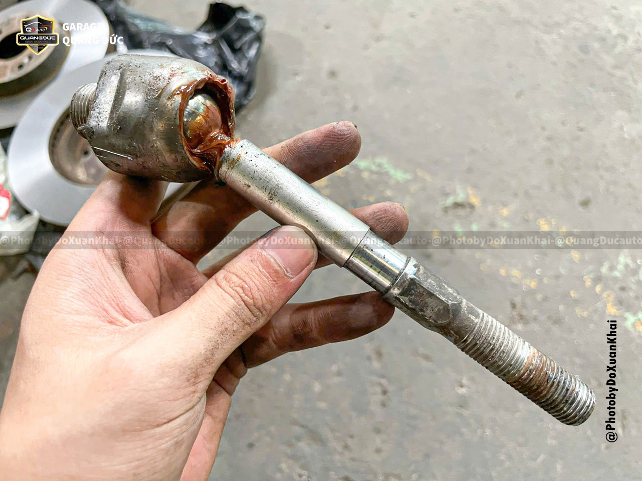 Sau khi kiểm tra, đội ngũ kỹ thuật của Quang Đức Auto đã nhận thấy Rotuyn cân bằng bị bụi bẩn bám vào sâu bên trong gây bó kẹt, cao su ốp cân bằng khô cứng do đó cần thay thế các bộ phận này.