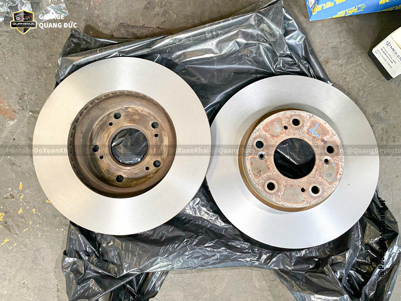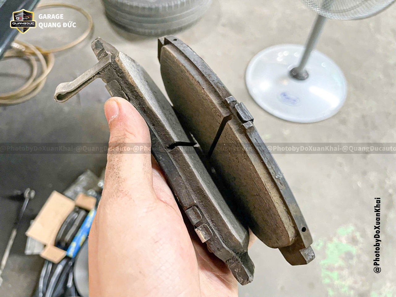 Vệ sinh má, láng đĩa phanh: Loại bỏ các bụi bẩn, tăng hiệu quả ma sát giữa má phanh và đĩa phanh, Trên chiếc xe này má phanh đã mòn một nửa ( vẫn có thể tiếp tục sử dụng) nhưng bác chủ xe đã quyết định thay thế đúng kỳ bảo dưỡng.
