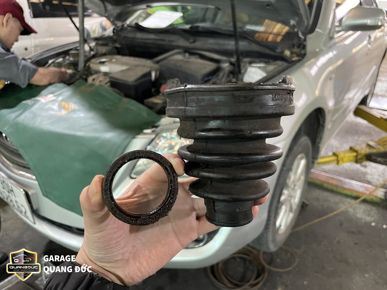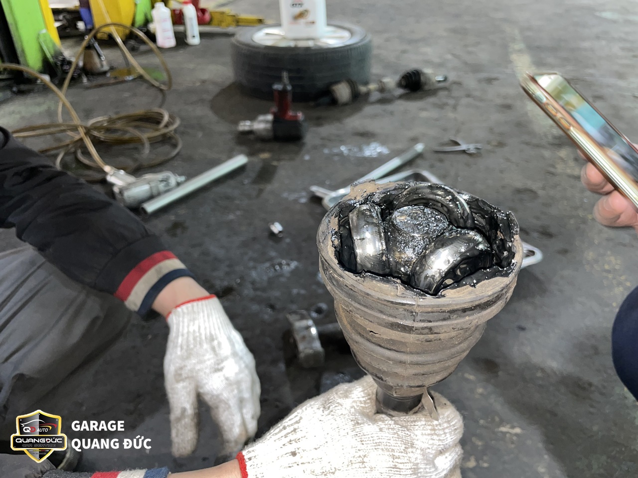 Sau khi được sự đồng ý của chủ xe, đội ngũ kỹ thuật của Quang Đức Auto đã tiến hành thay thế phớt đầu trục cơ, tháo cây láp để thay cao su chụp bụi, việc thay thế rất nhanh chóng chỉ mất khoảng 1 tiếng rưỡi, tiết kiệm được rất nhiều chi phí và đặc biệt vẫn đảm bảo hệ thống hoạt động tốt, an toàn.