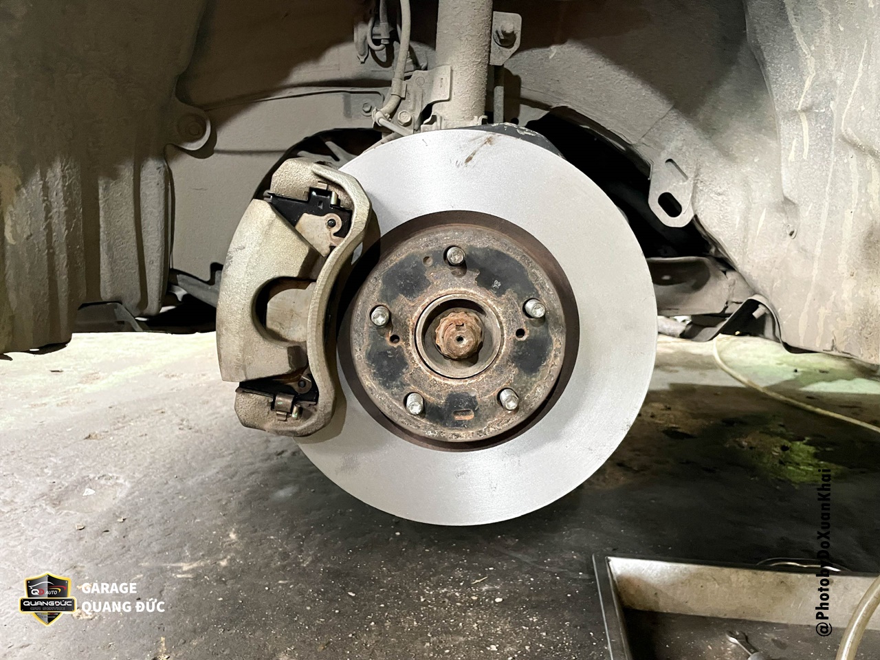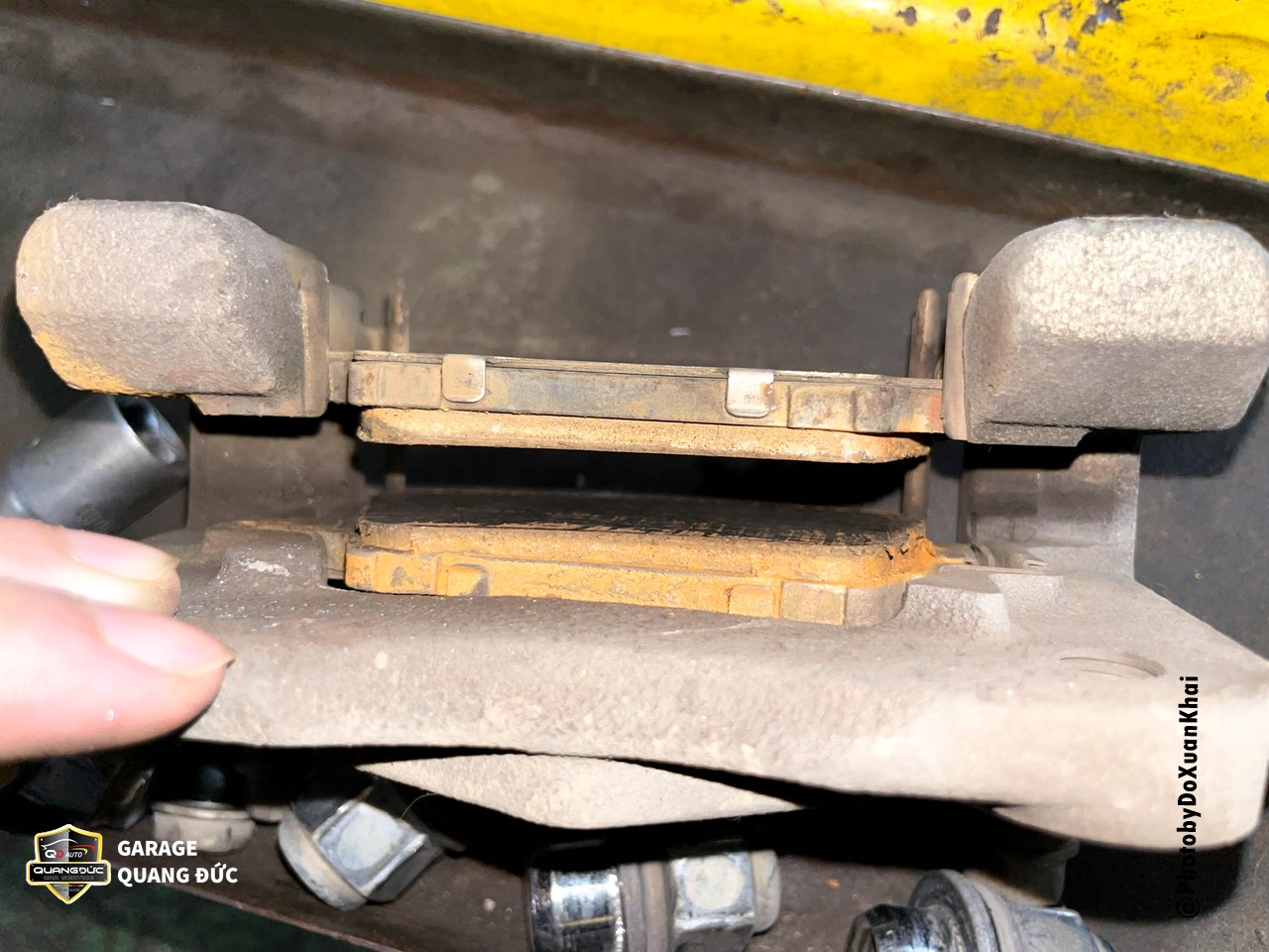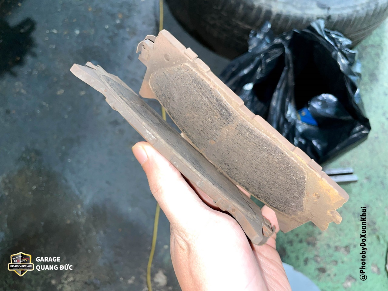 Vệ sinh má, đĩa phanh: Loại bỏ các bụi bẩn, tăng hiệu quả mát giữa má phanh và đĩa phanh, Tuy nhiên trên chiếc xe này má phanh đã mòn hết nên cần phải thay thế mới hàng xịn chuẩn mã theo xe.