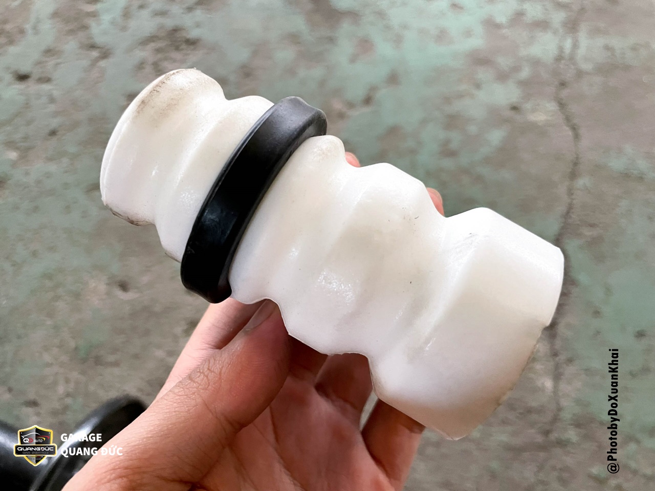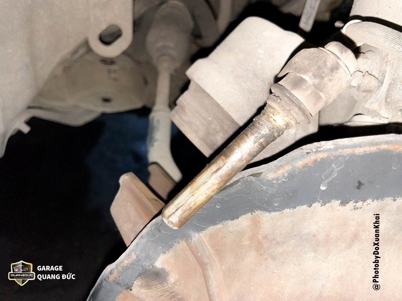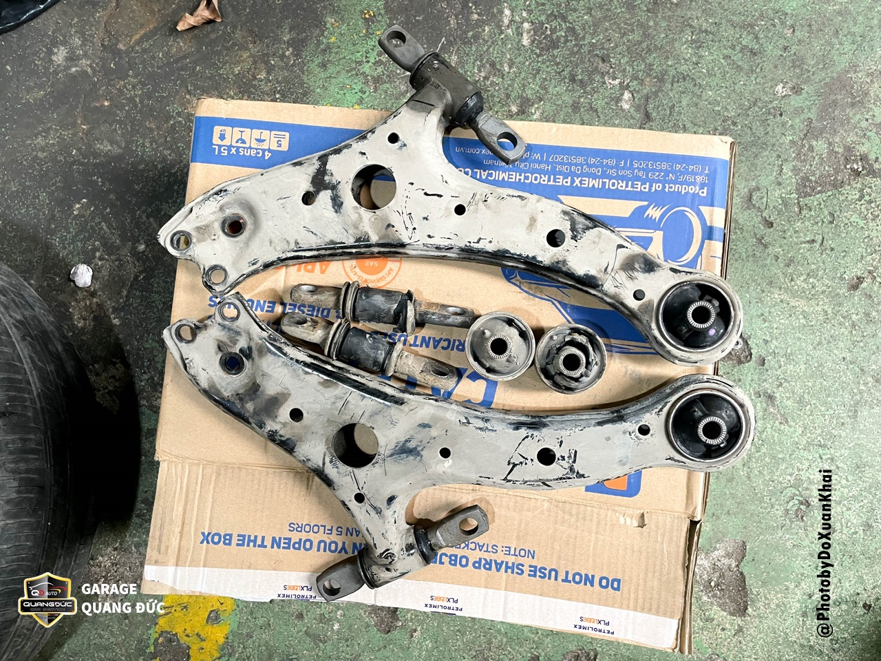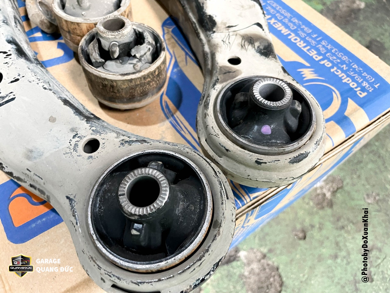 Sau khi kiểm tra, đội ngũ kỹ thuật của Quang Đức Auto đã nhận thấy Cao su càng A dưới ( To, nhỏ) bị nứt, mòn do oxi hóa, thậm chí rách lớn cần thay thế các chi tiết này.