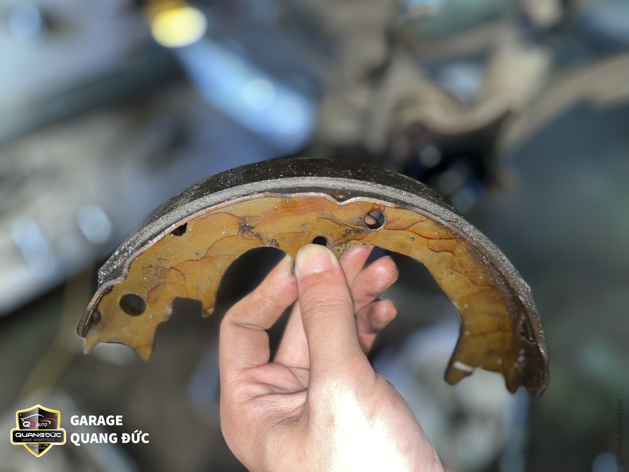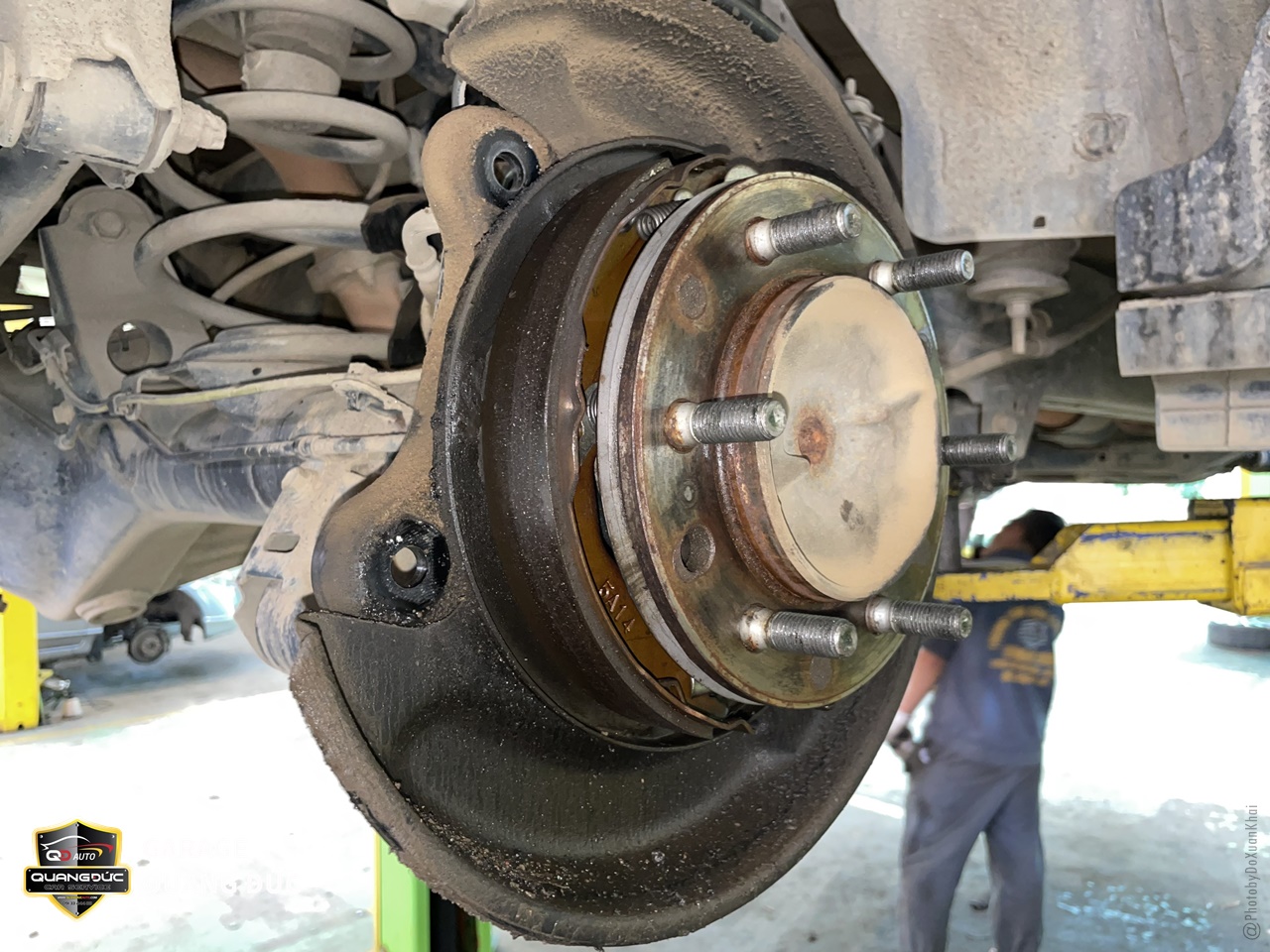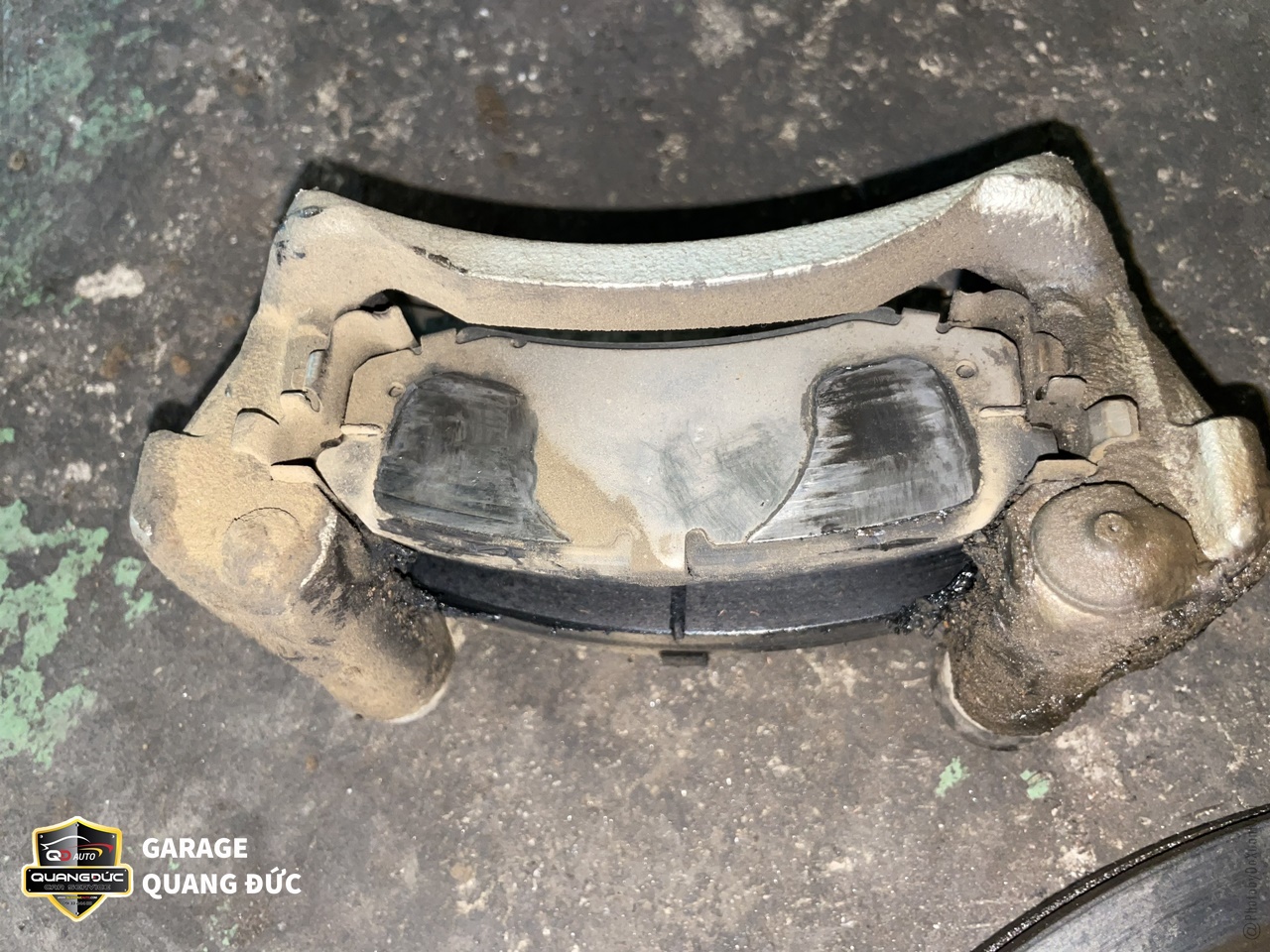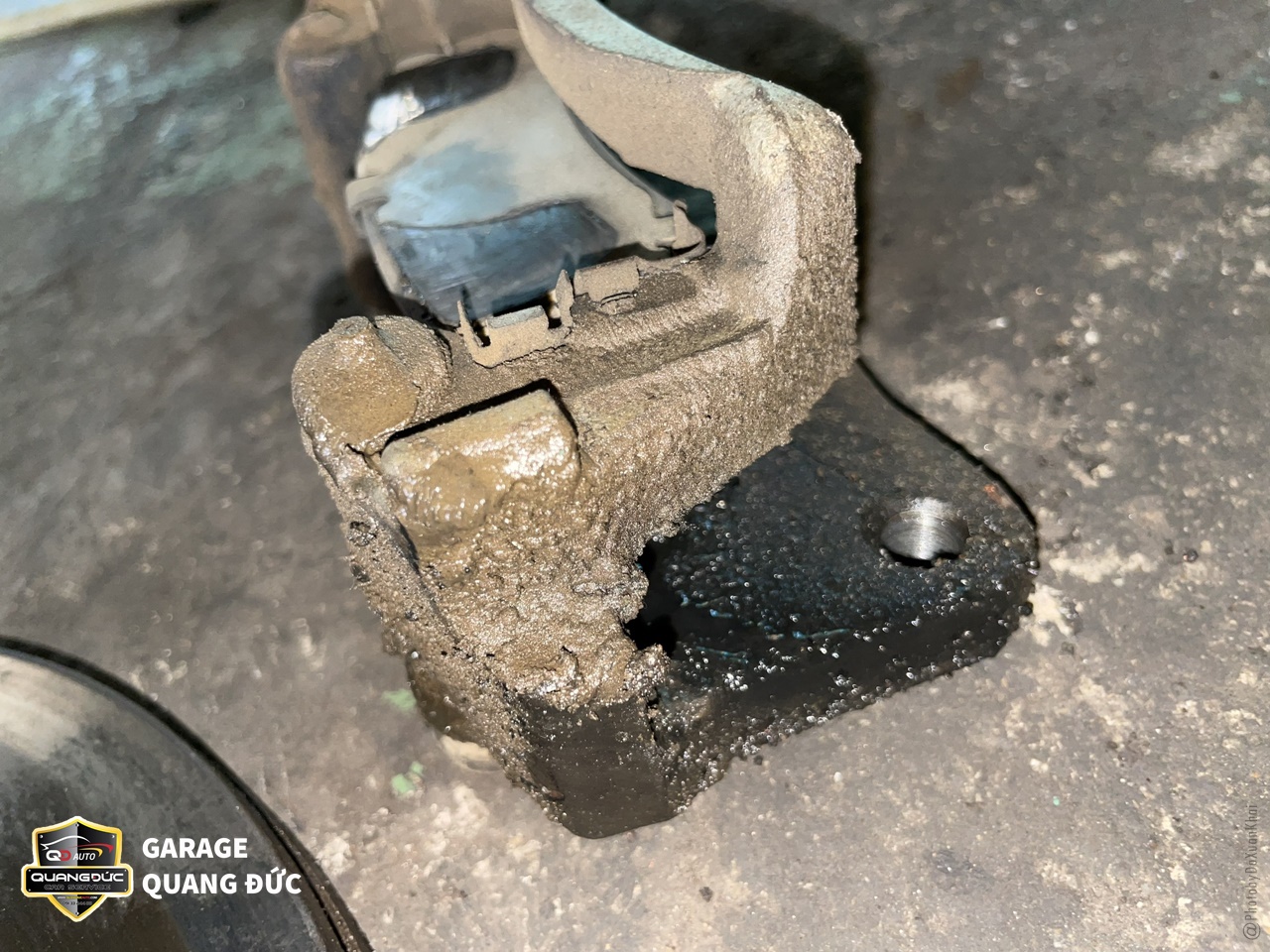 Bên cạnh đó khi phát hiện phanh không ăn, không có hiệu quả tốt khi đạp phanh, kỹ thuật viên tiến hành kiểm tra hệ thống phanh trước và sau phát hiện chảy dầu, làm cho đĩa phanh, má phanh dính dầu khiến hiệu quả phanh kém đi rất nhiều.