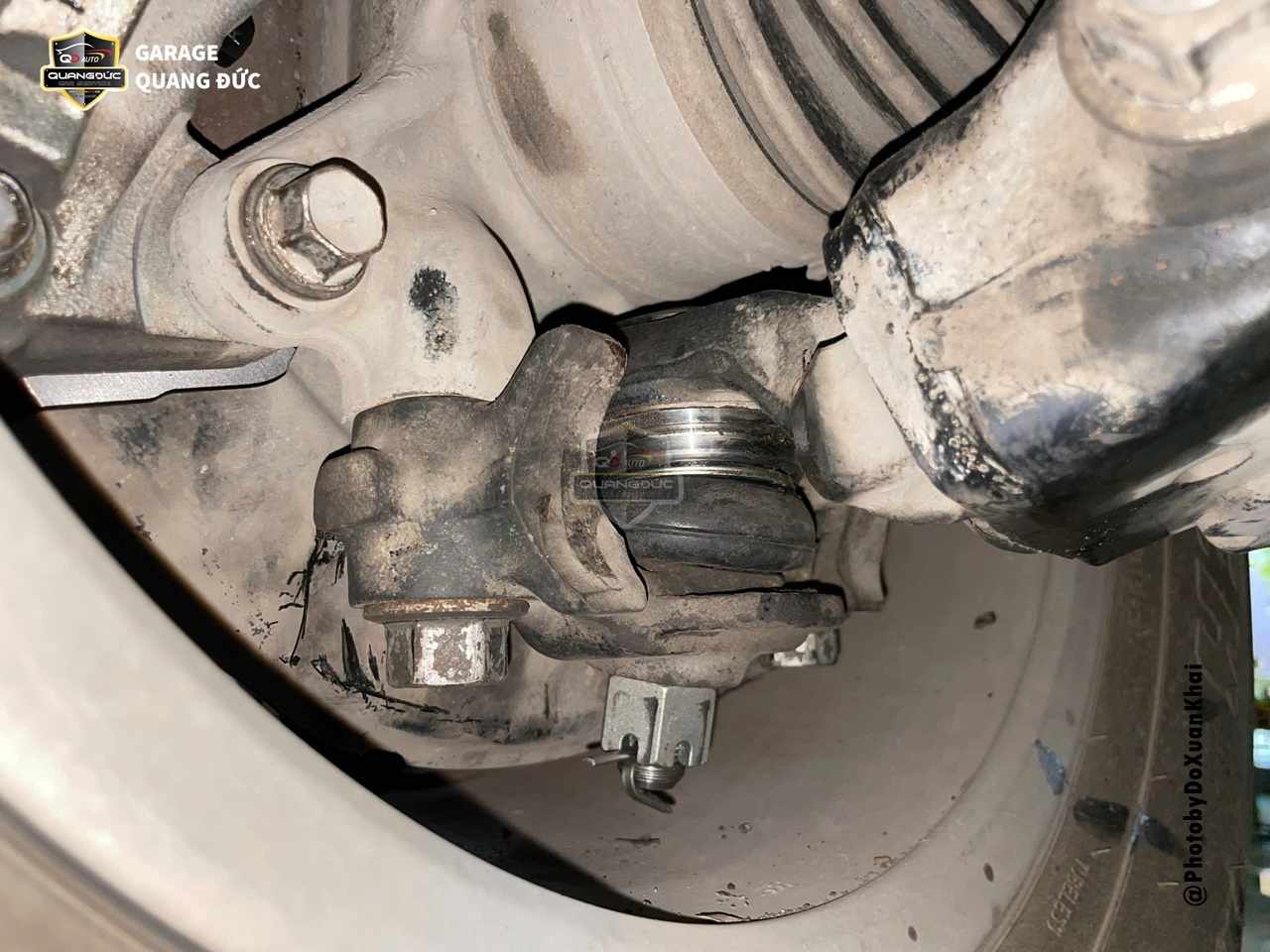 Sau khi kiểm tra, đội ngũ kỹ thuật của Quang Đức Auto đã nhận thấy Cao su càng A dưới ( To, nhỏ) vẫn hoạt động bình thường tuy nhieenuj vị trí rotuyn trụ đứng đã bị rơ lỏng cần phải thay thế, Rotuyn cân bằng bị bụi bẩn bám vào sâu bên trong gây bó kẹt do đó cần thay thế các chi tiết này.