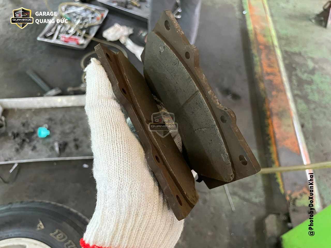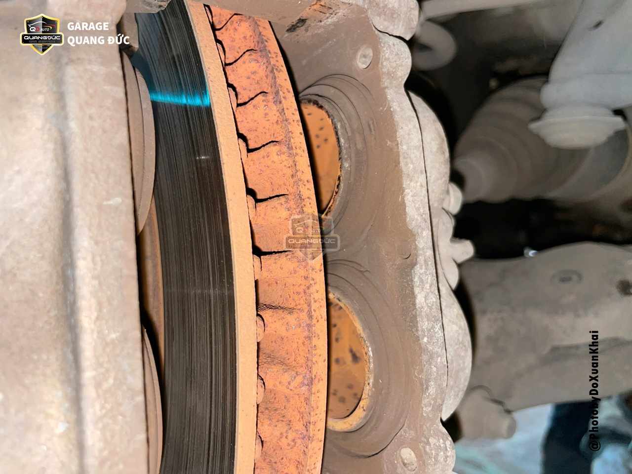 Vệ sinh má, đĩa phanh: Loại bỏ các bụi bẩn, tăng hiệu quả mát giữa má phanh và đĩa phanh, Tuy nhiên trên chiếc xe này má phanh đã mòn hết nên cần phải thay thế mới hàng xịn chuẩn mã theo xe, bên cạnh đó đĩa phanh bị xước lớn cần láng lại để tạo bề mặt phẳng.